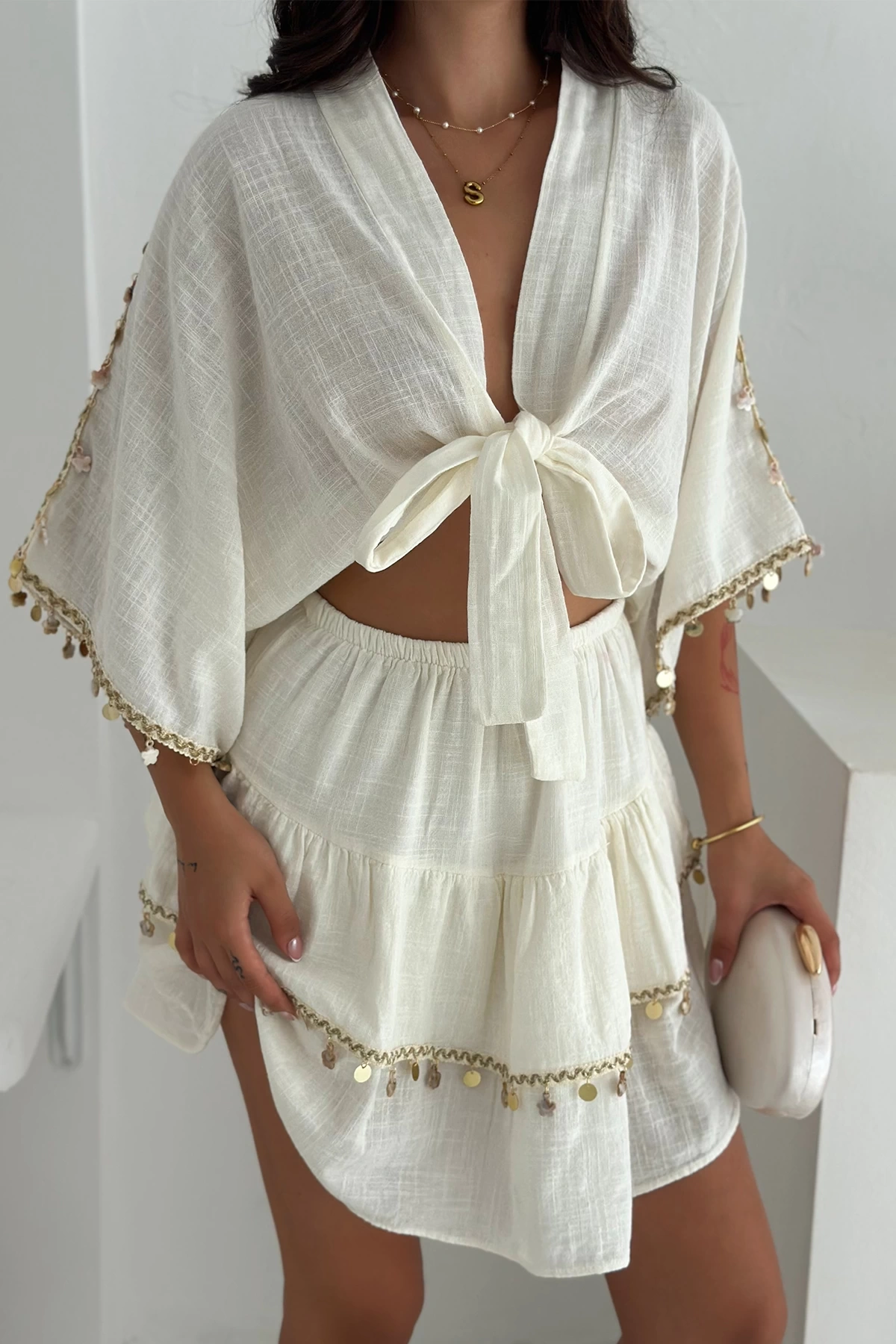 Deniz Kabuğu Aksesuarlı Takım Beyaz