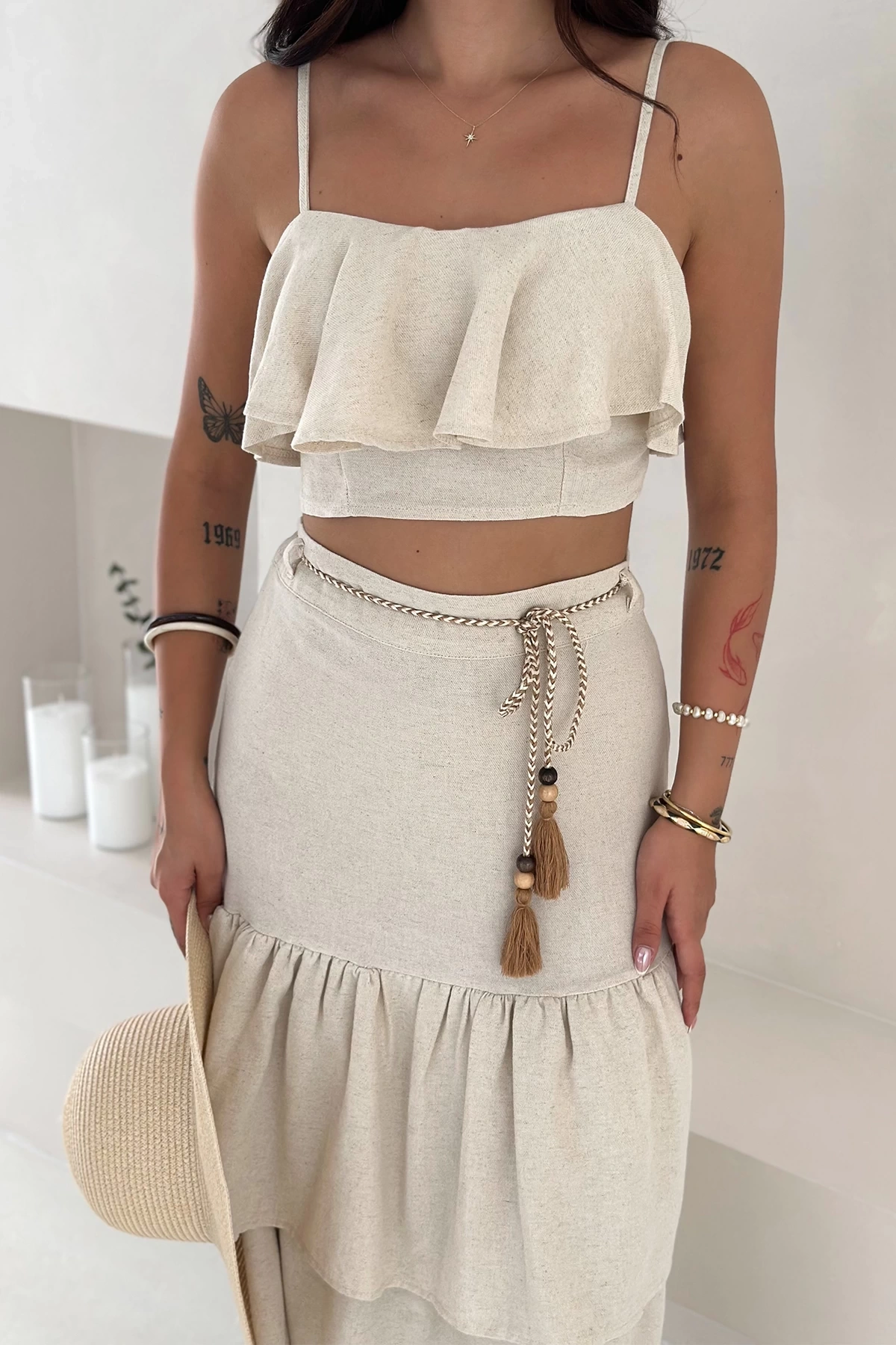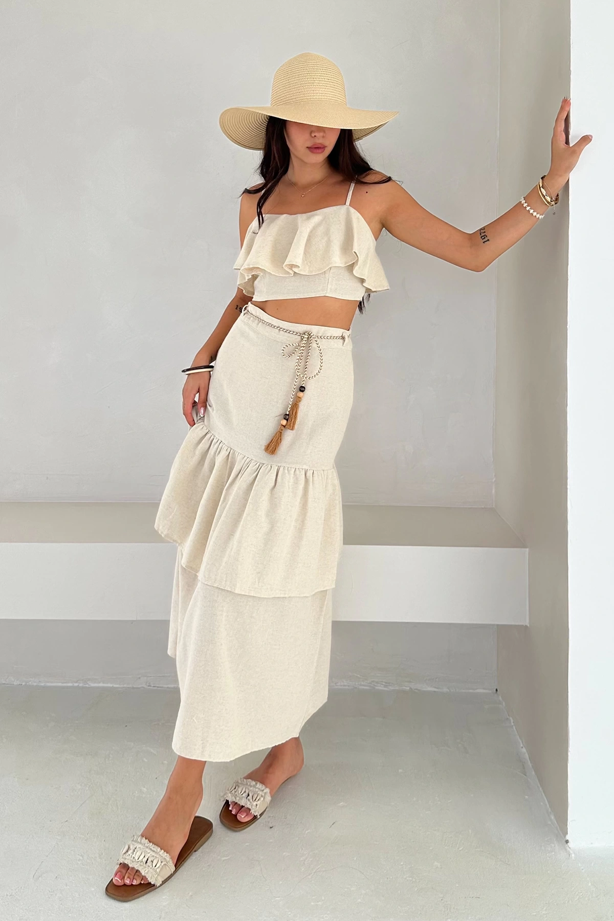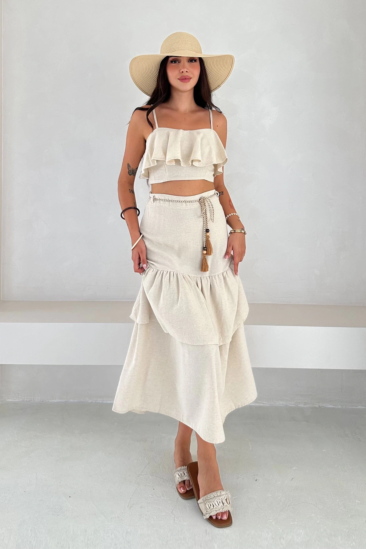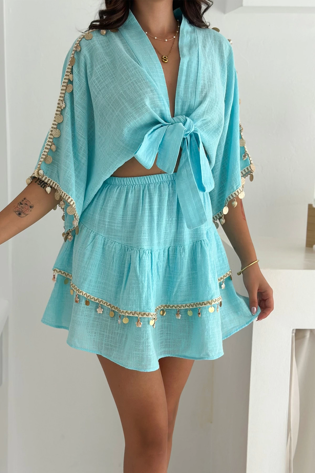 Varak Baskılı Crop&Etek Takım Papertouch Kumaş