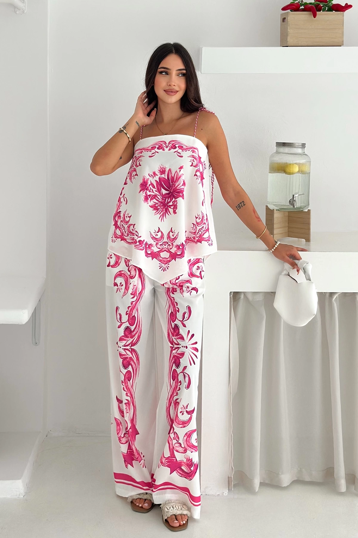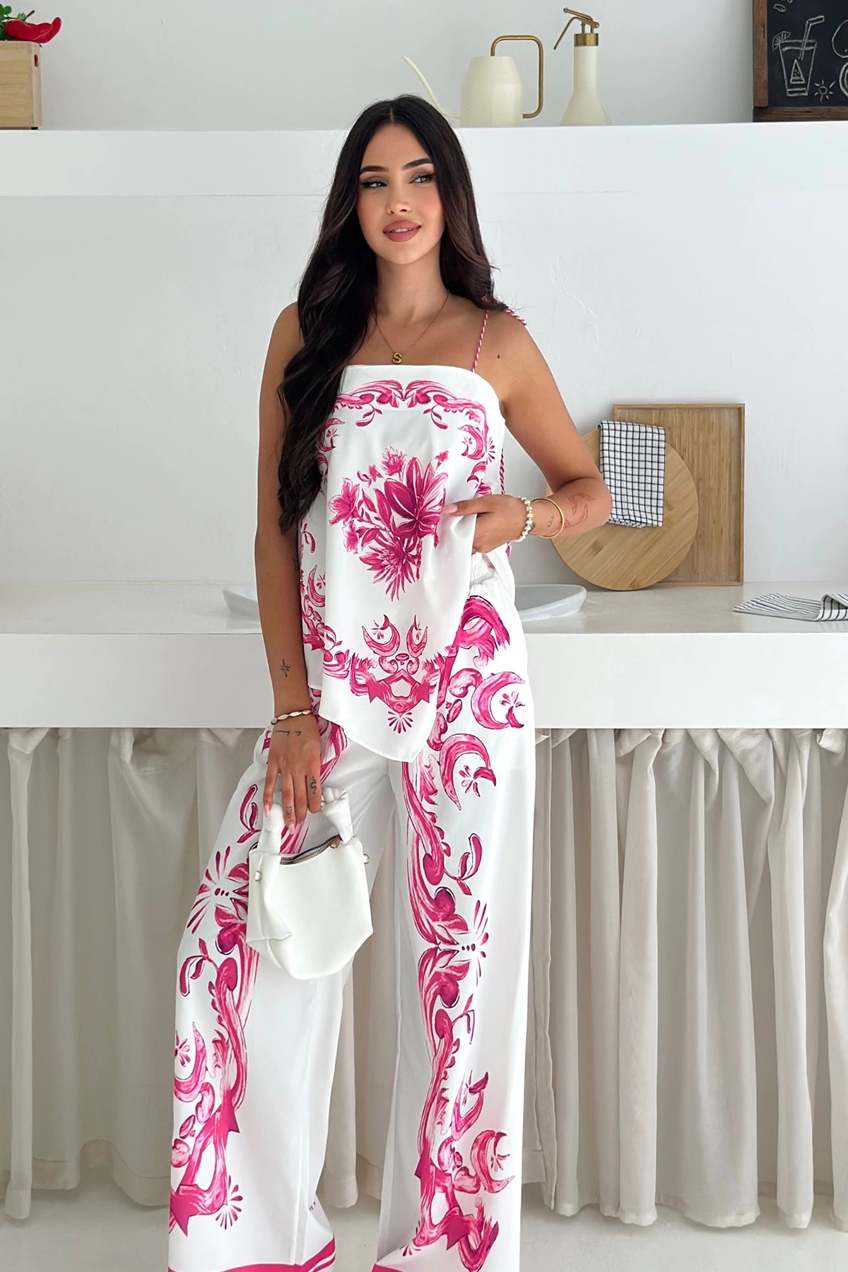 İthal Jessica Kumaş Desenli İkili Takım Pembe