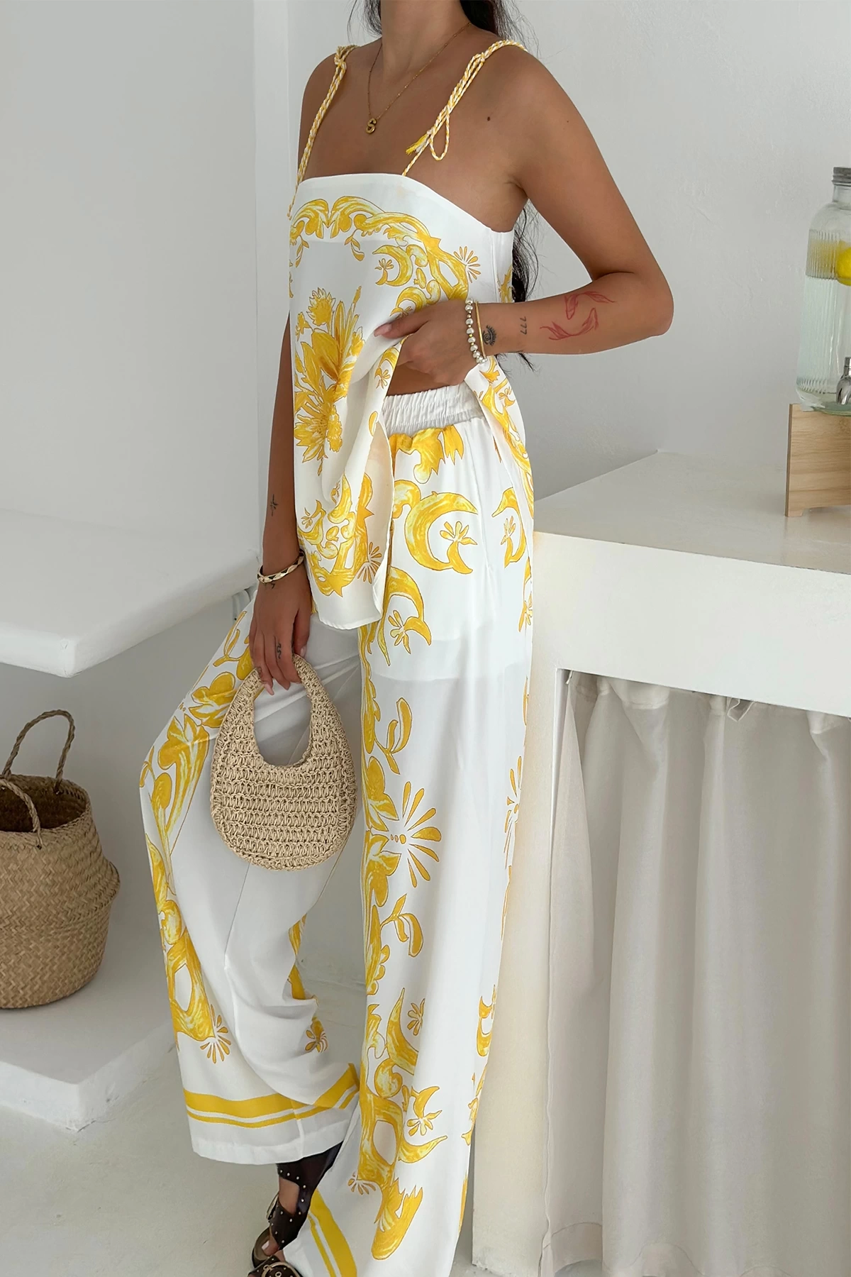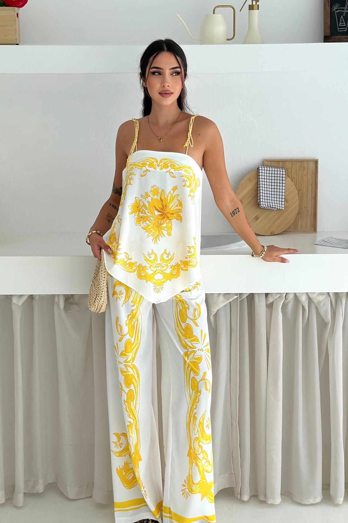 İthal Jessica Kumaş Desenli İkili Takım Sarı