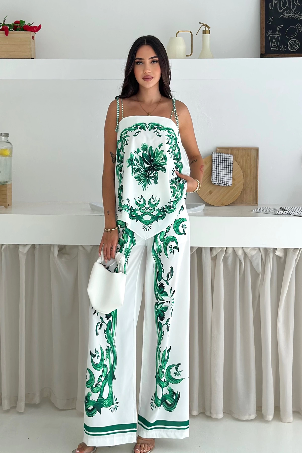 İthal Jessica Kumaş Desenli İkili Takım Yeşil