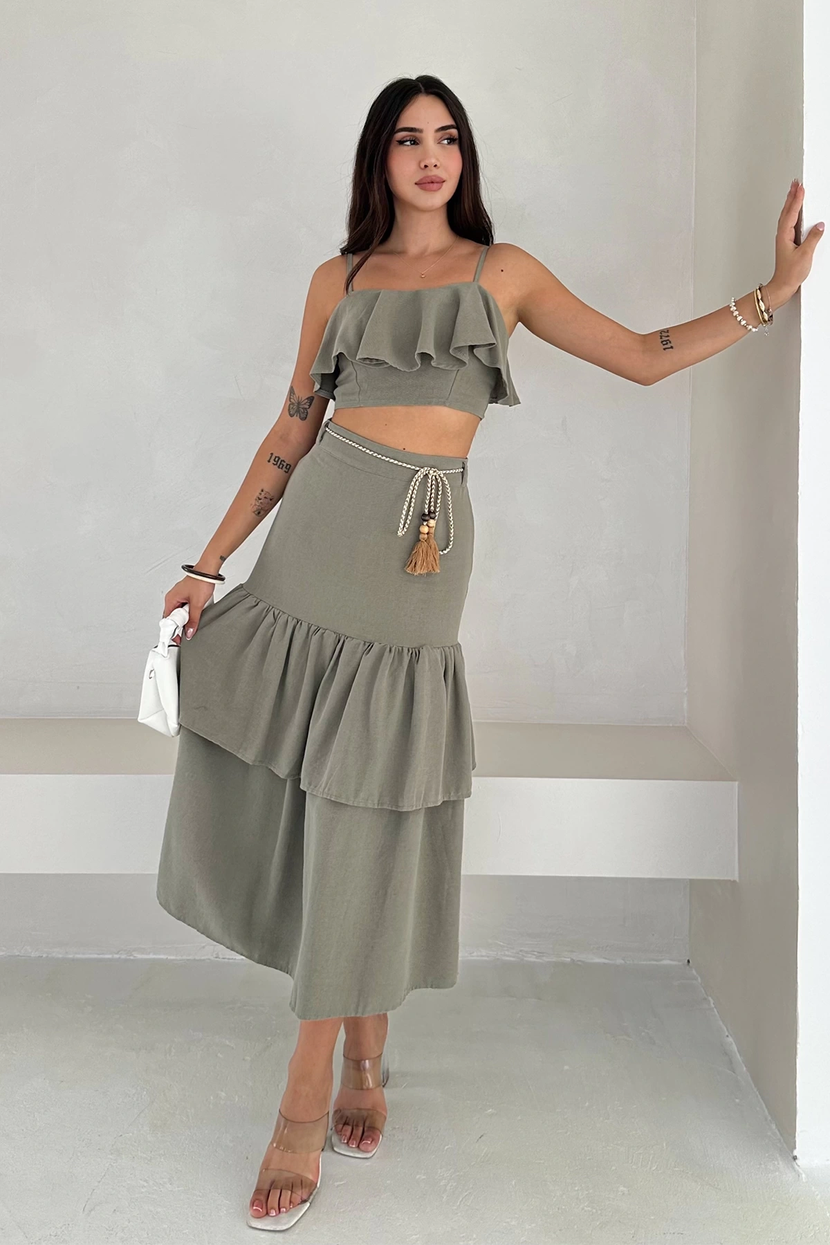 Deniz Kabuğu Aksesuarlı Takım Haki
