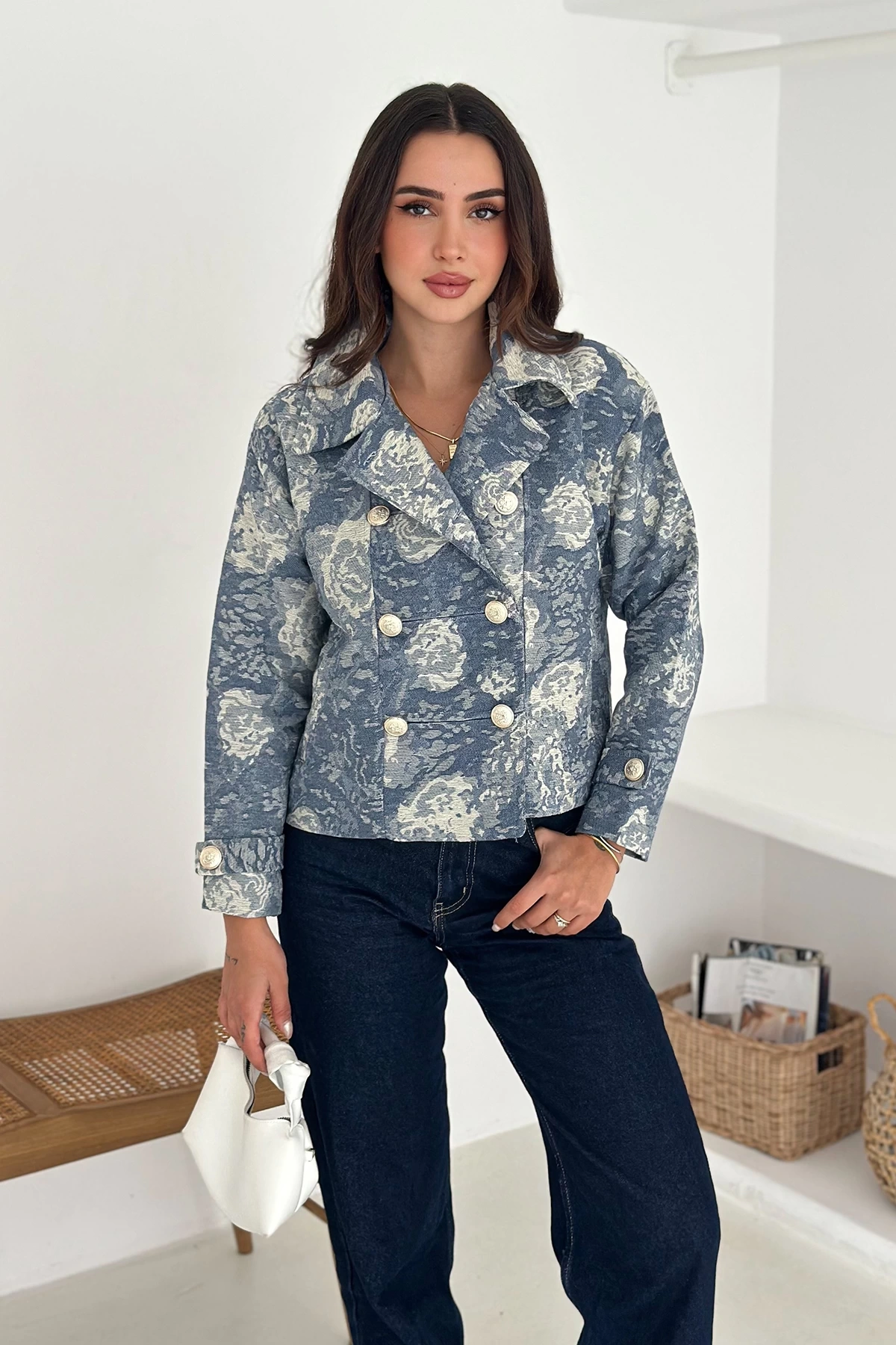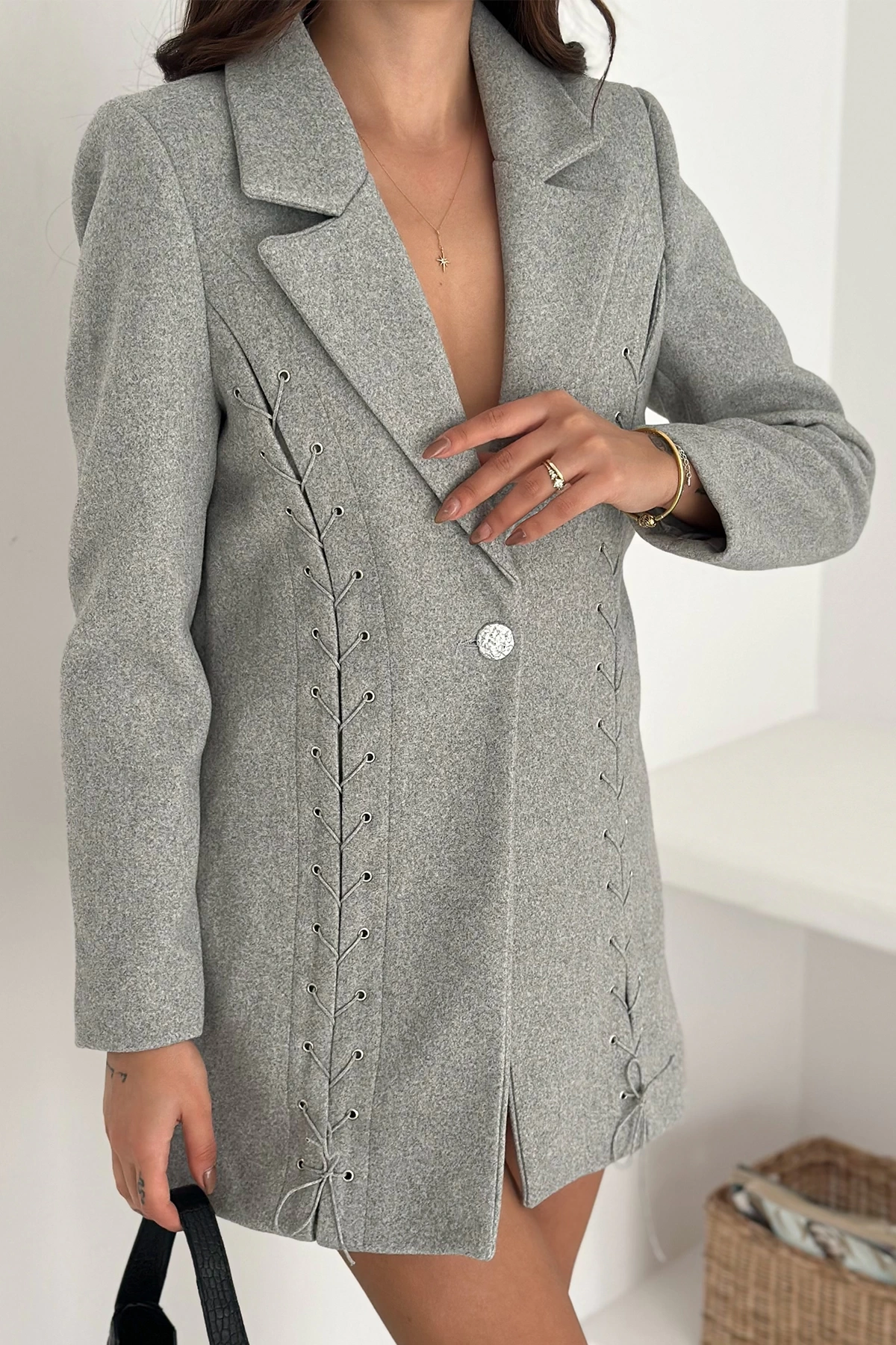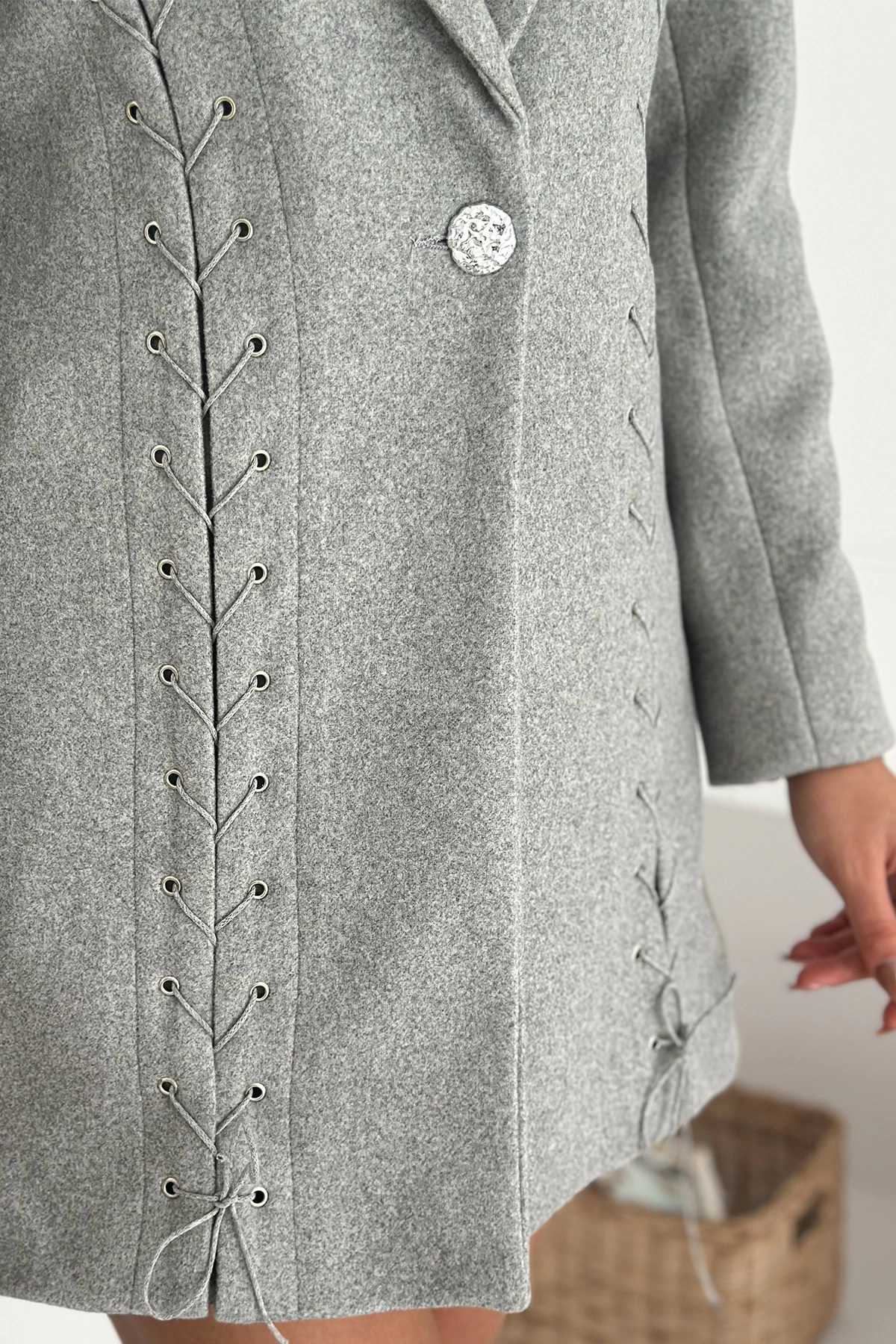 Kuşgözü Detaylı Kaşe Ceket Gri