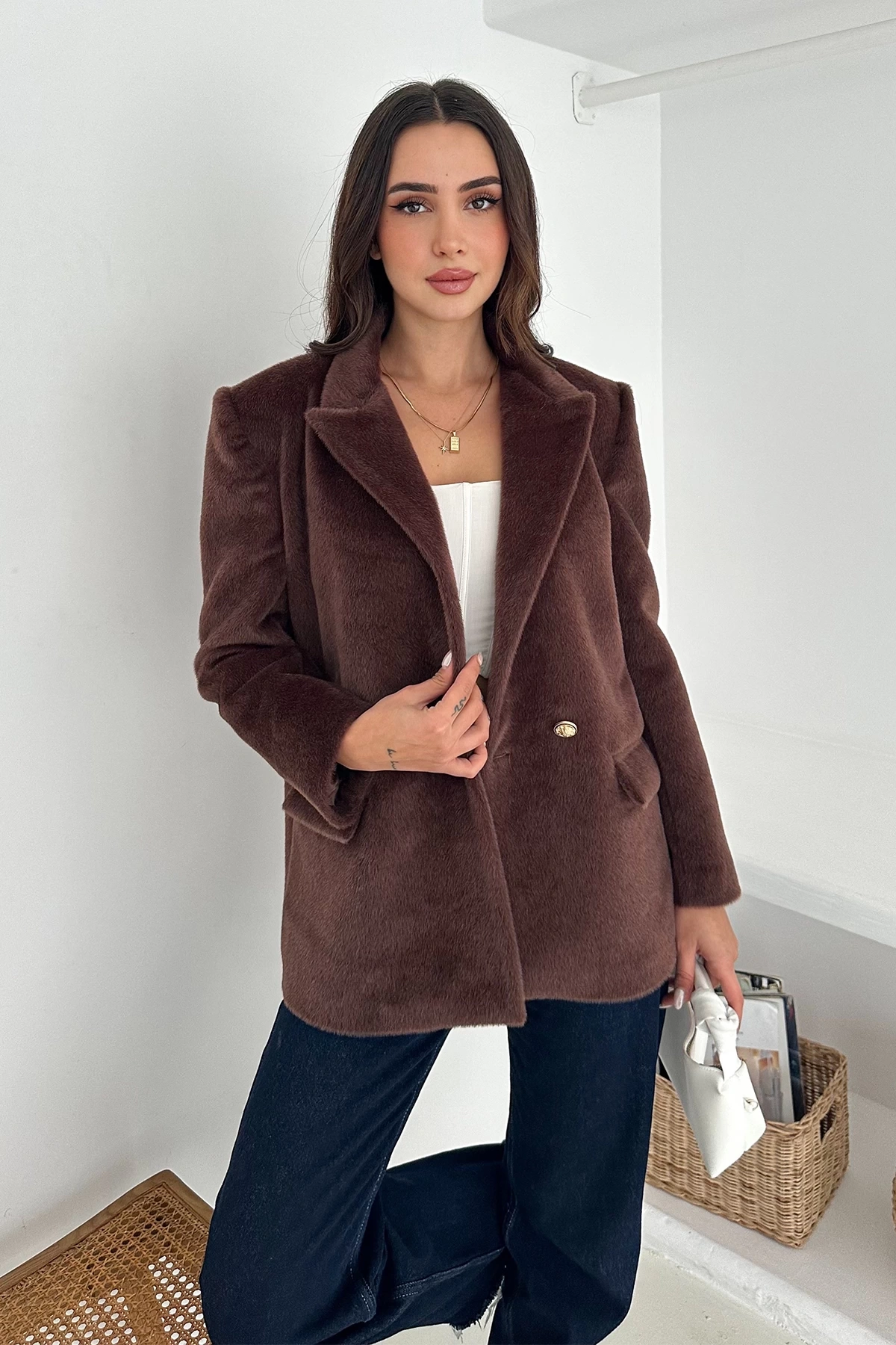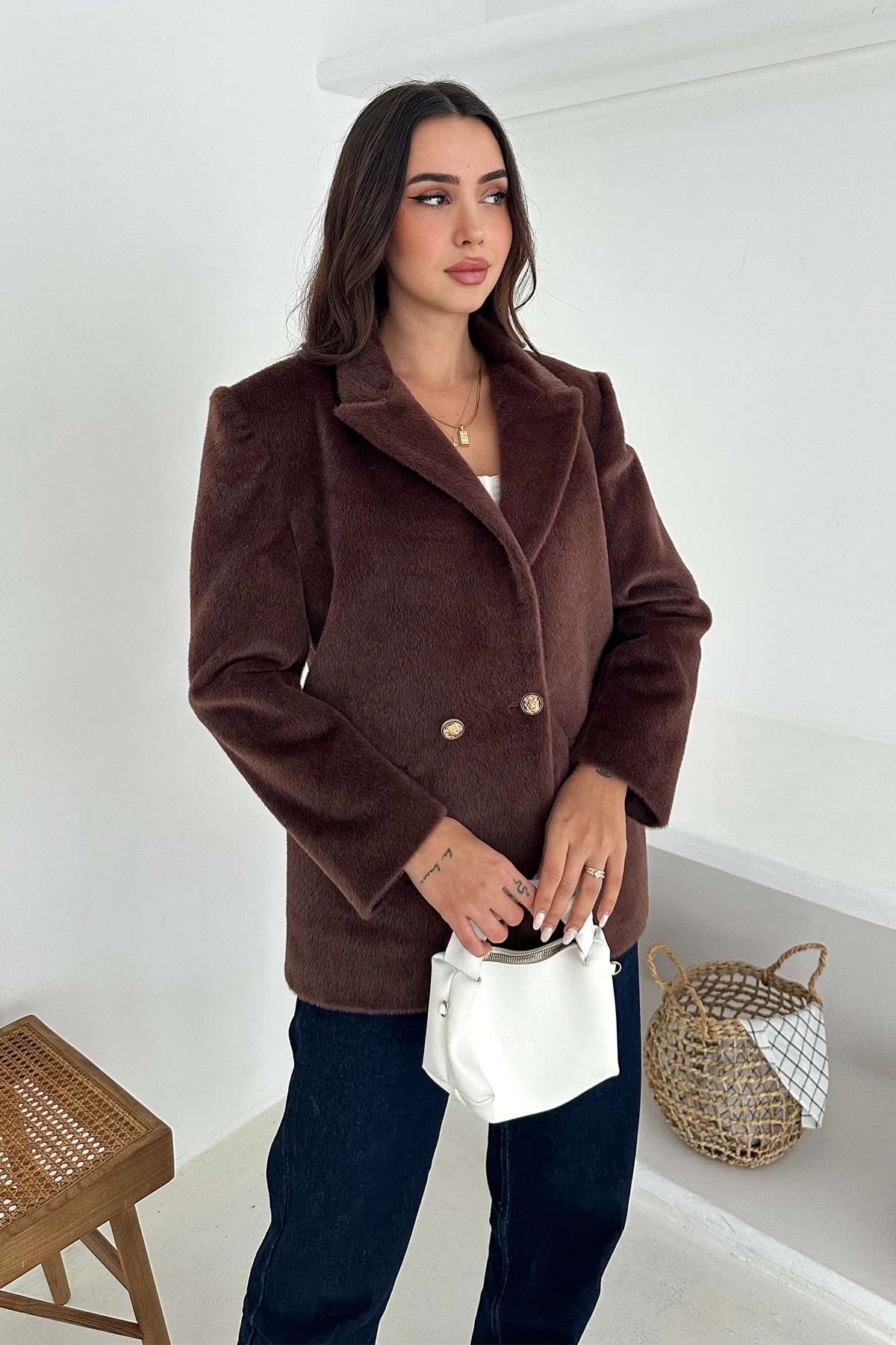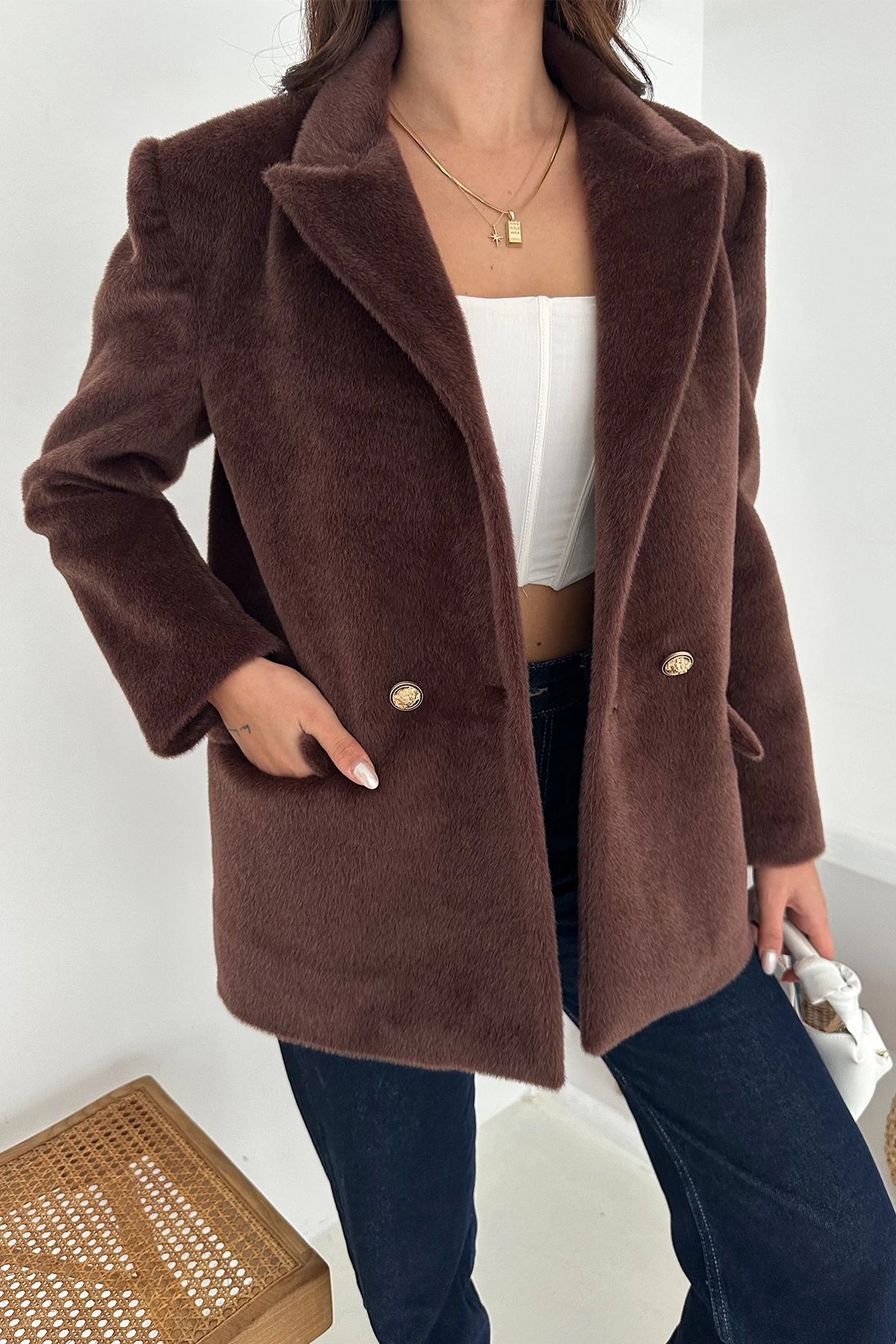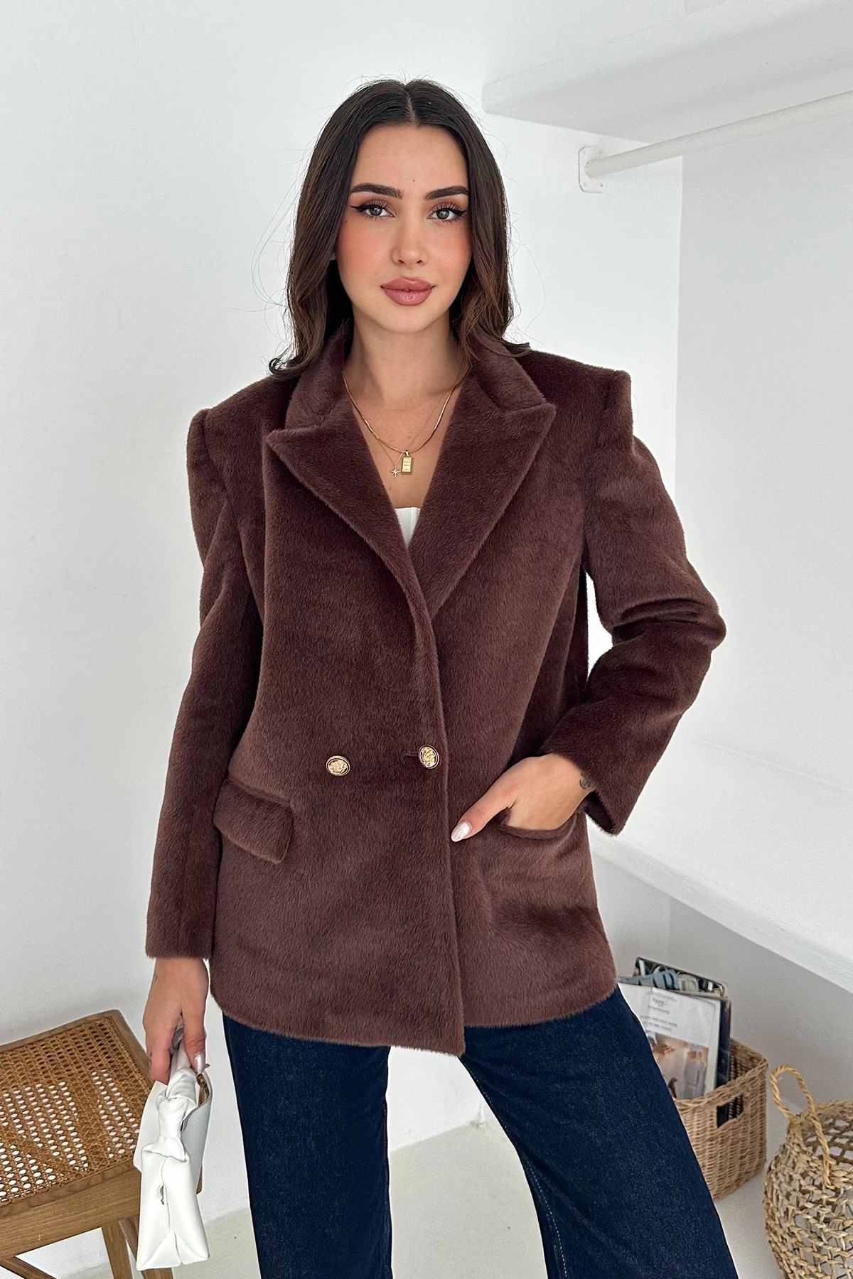 Kuşgözü Detaylı Kaşe Ceket Kahverengi