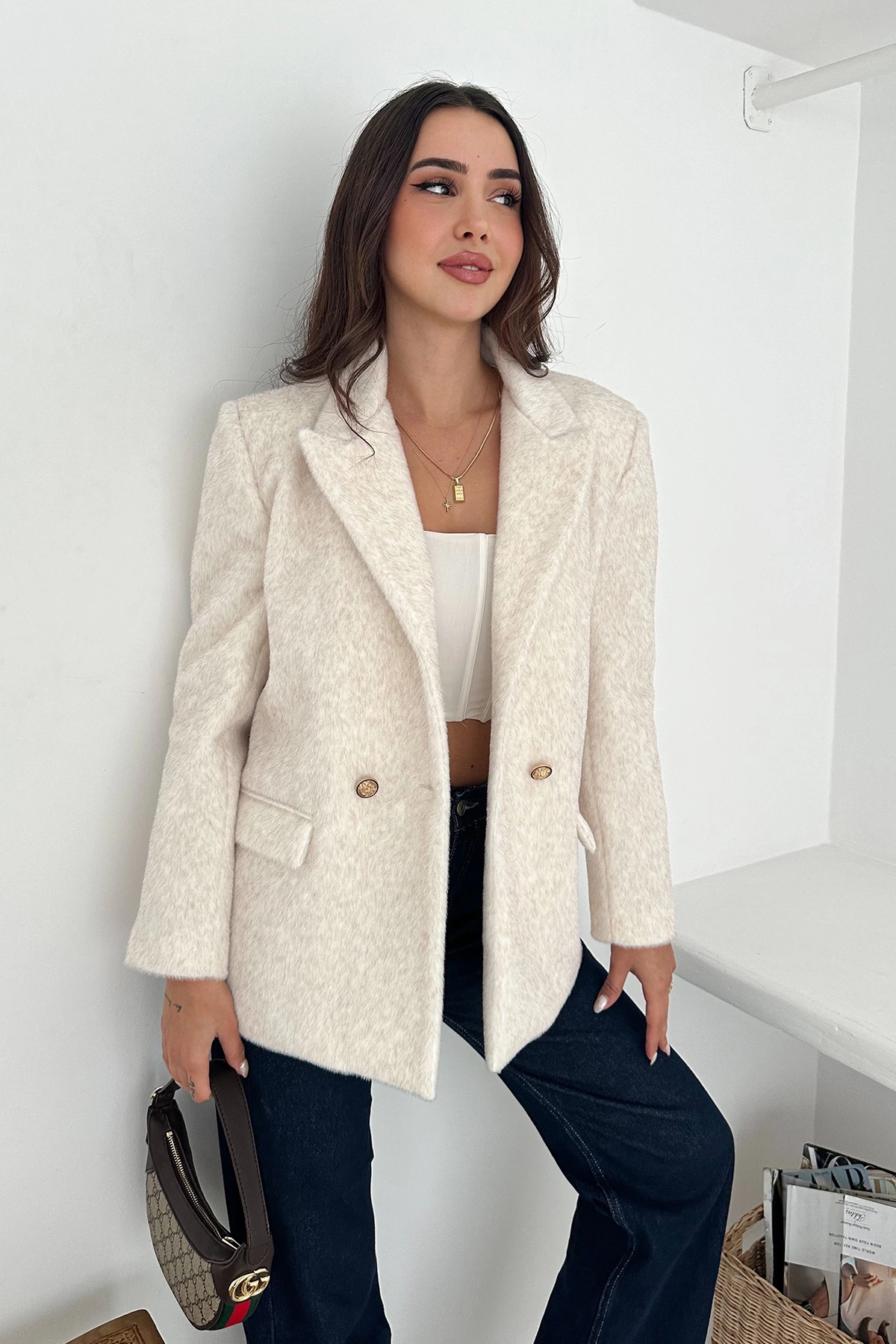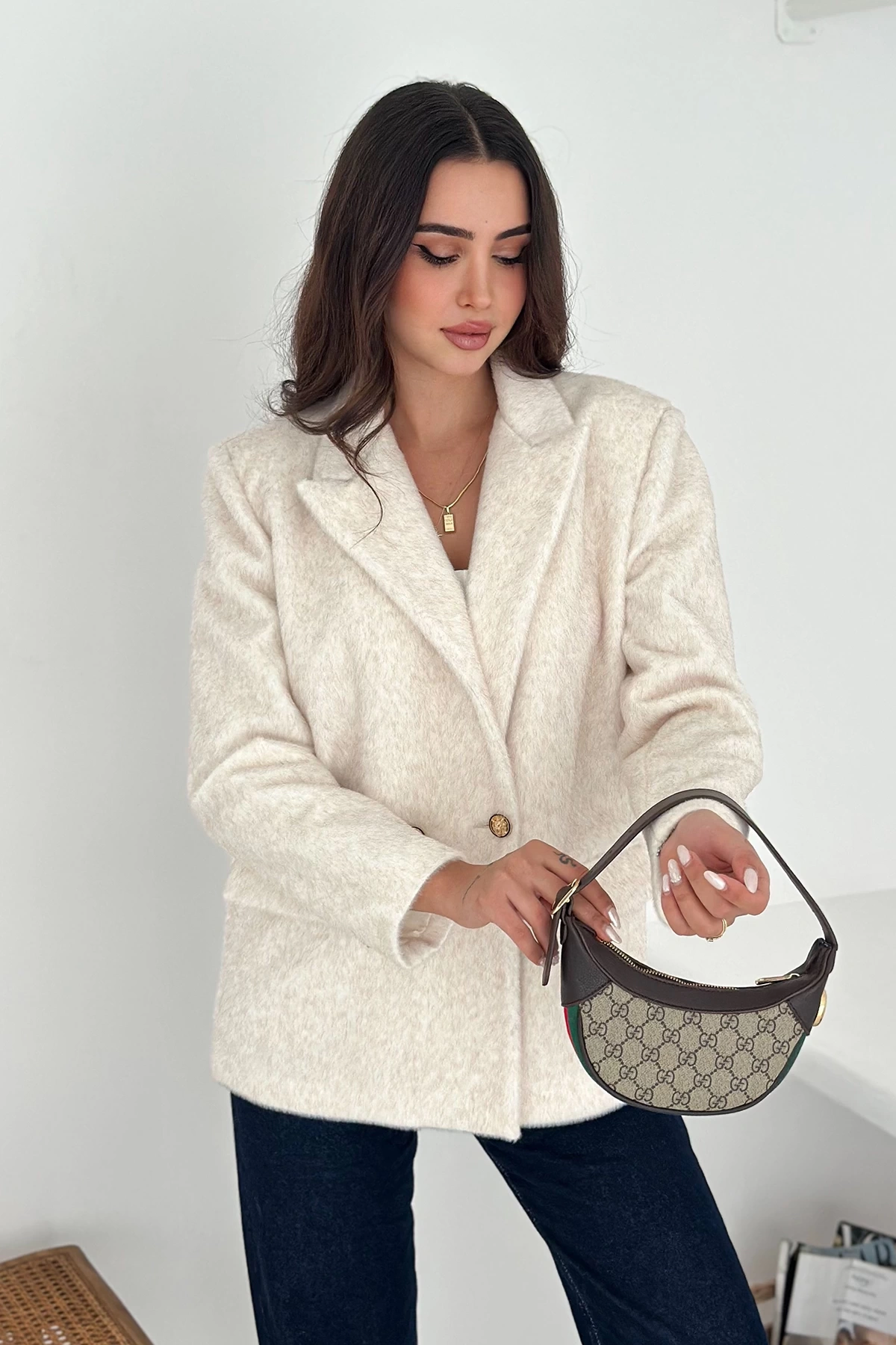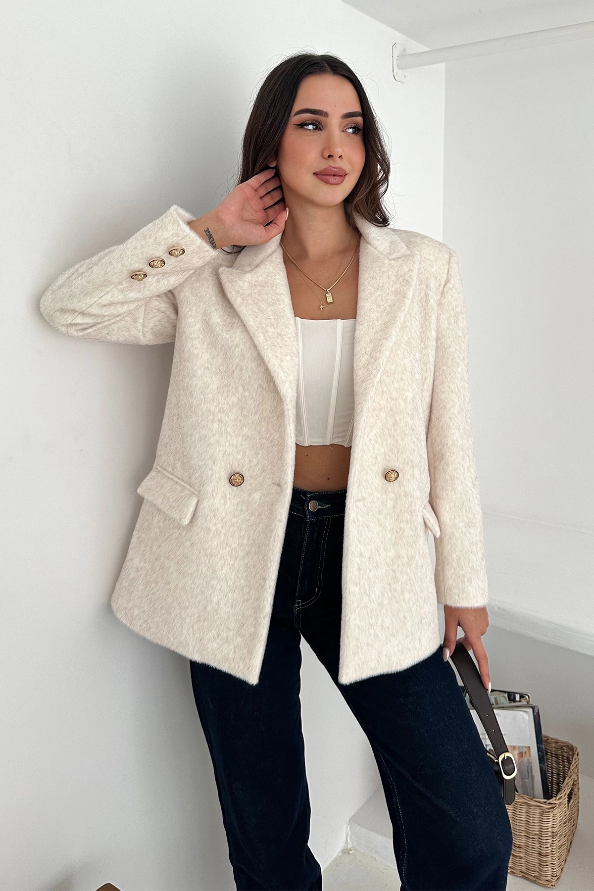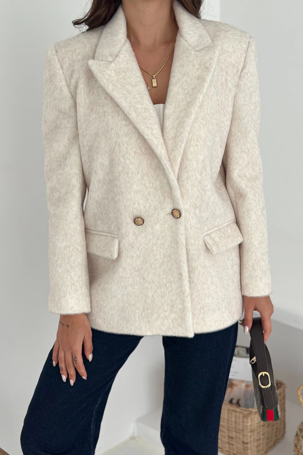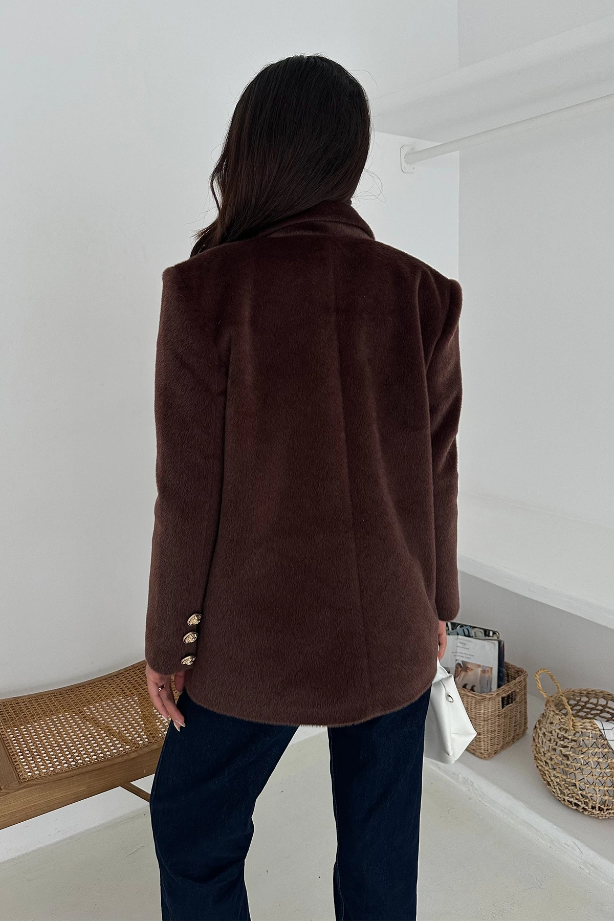 Kuşgözü Detaylı Kaşe Ceket Kahverengi