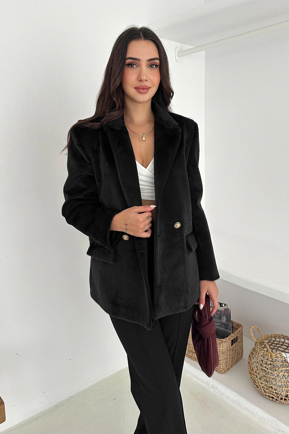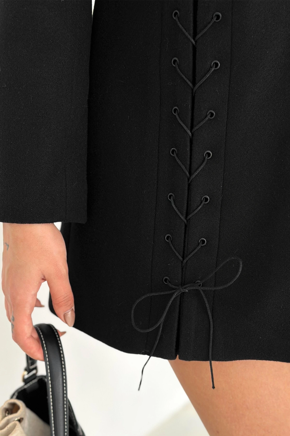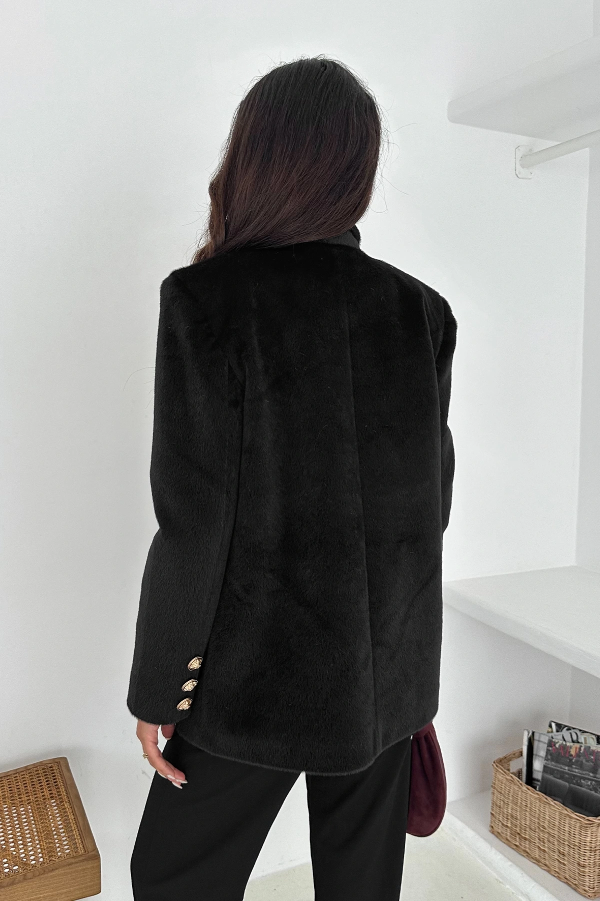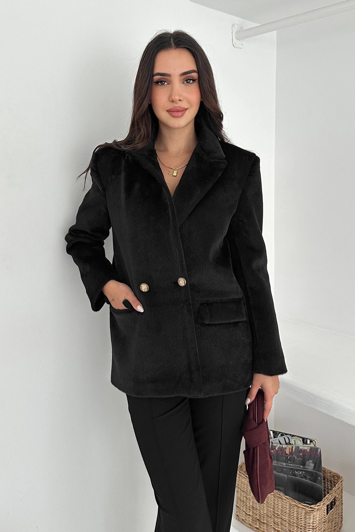 Kuşgözü Detaylı Kaşe Ceket Siyah