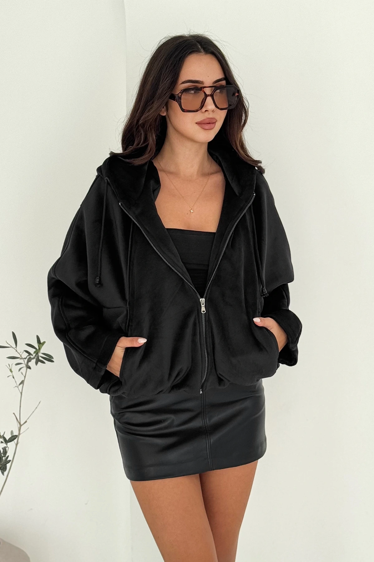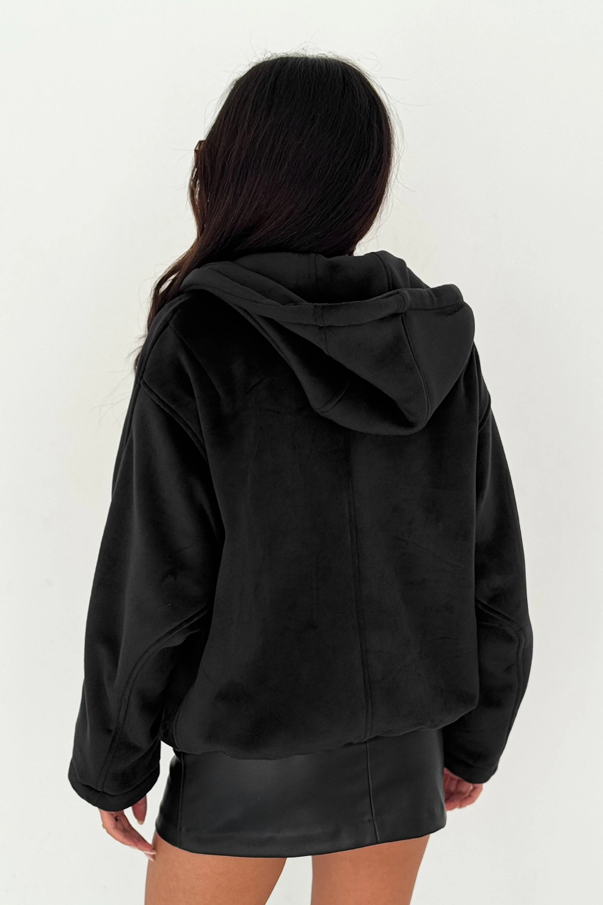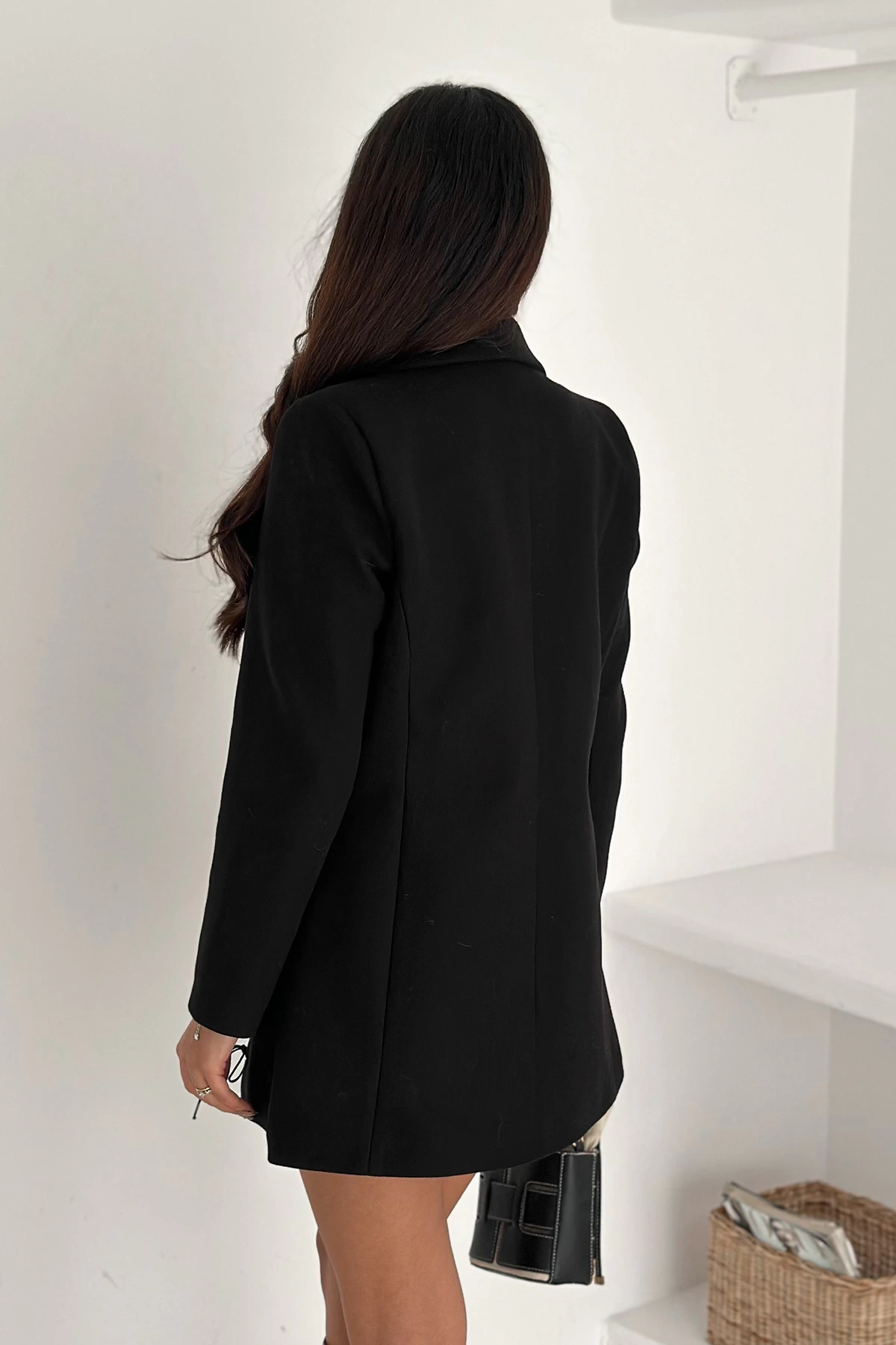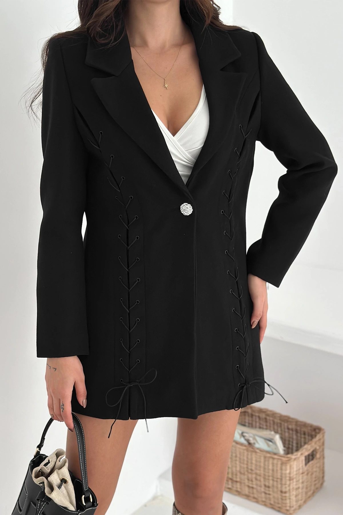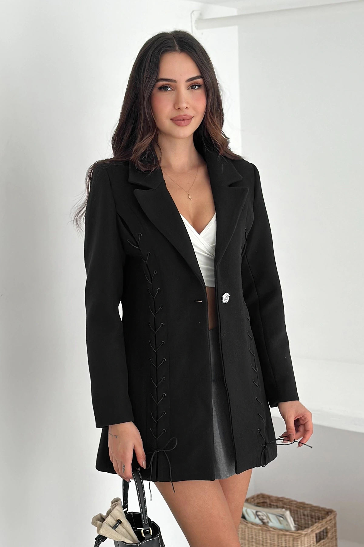 Kuşgözü Detaylı Kaşe Ceket Siyah
