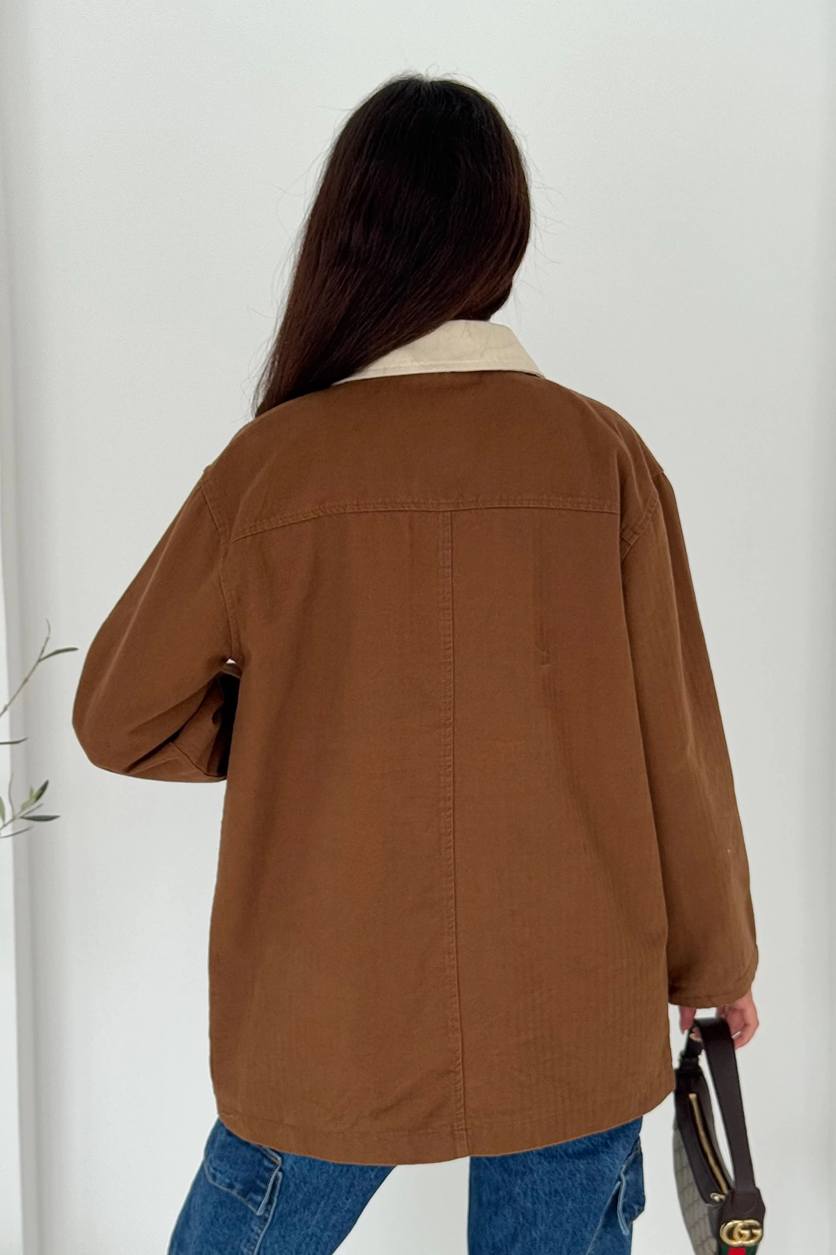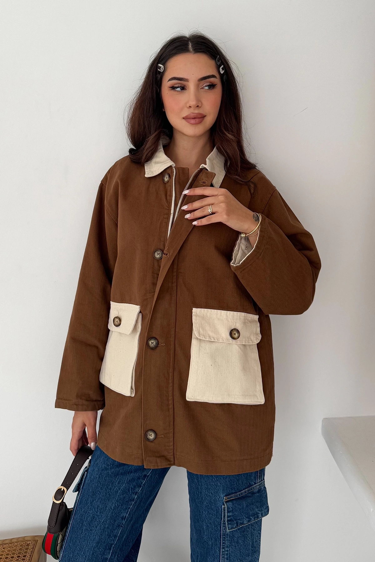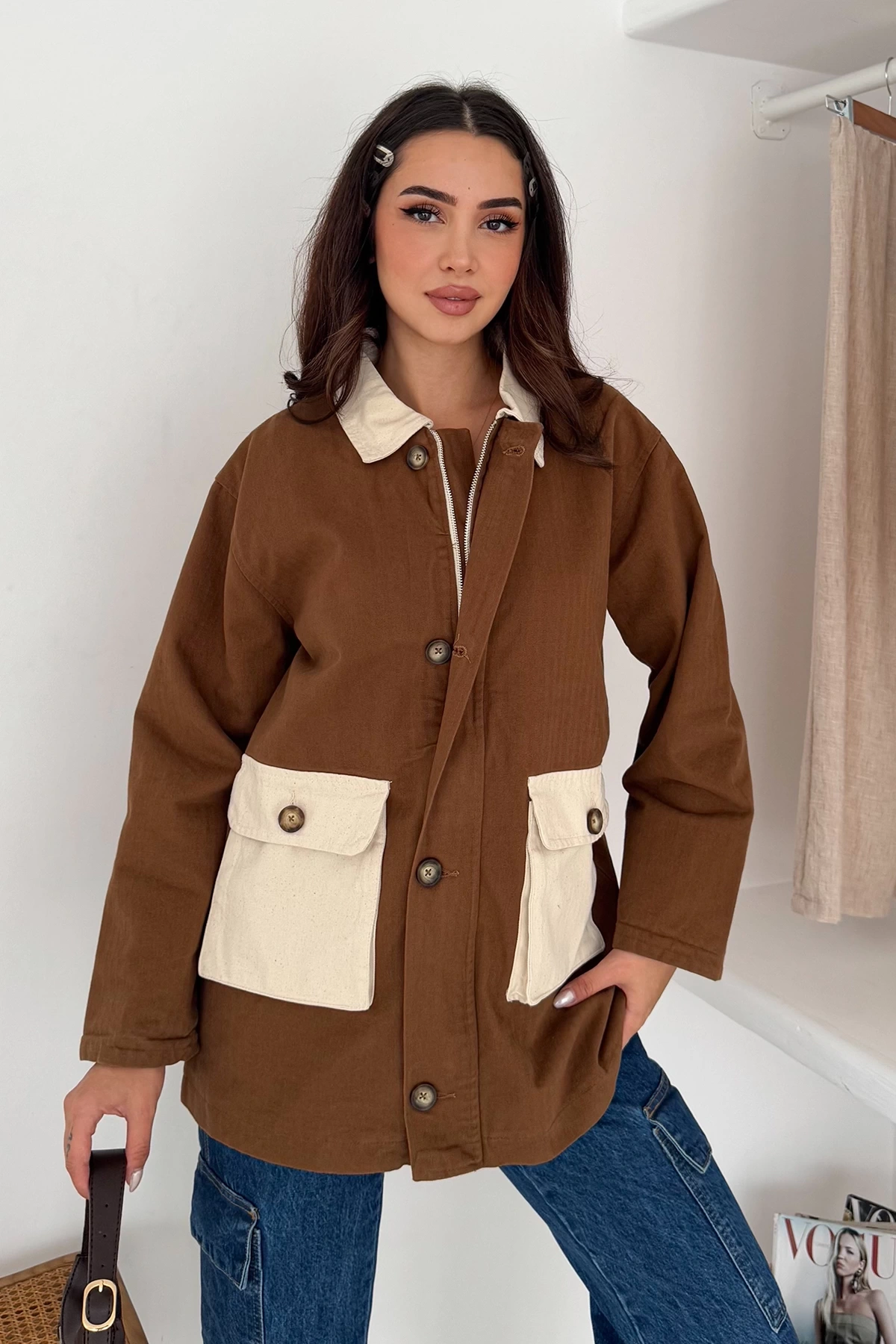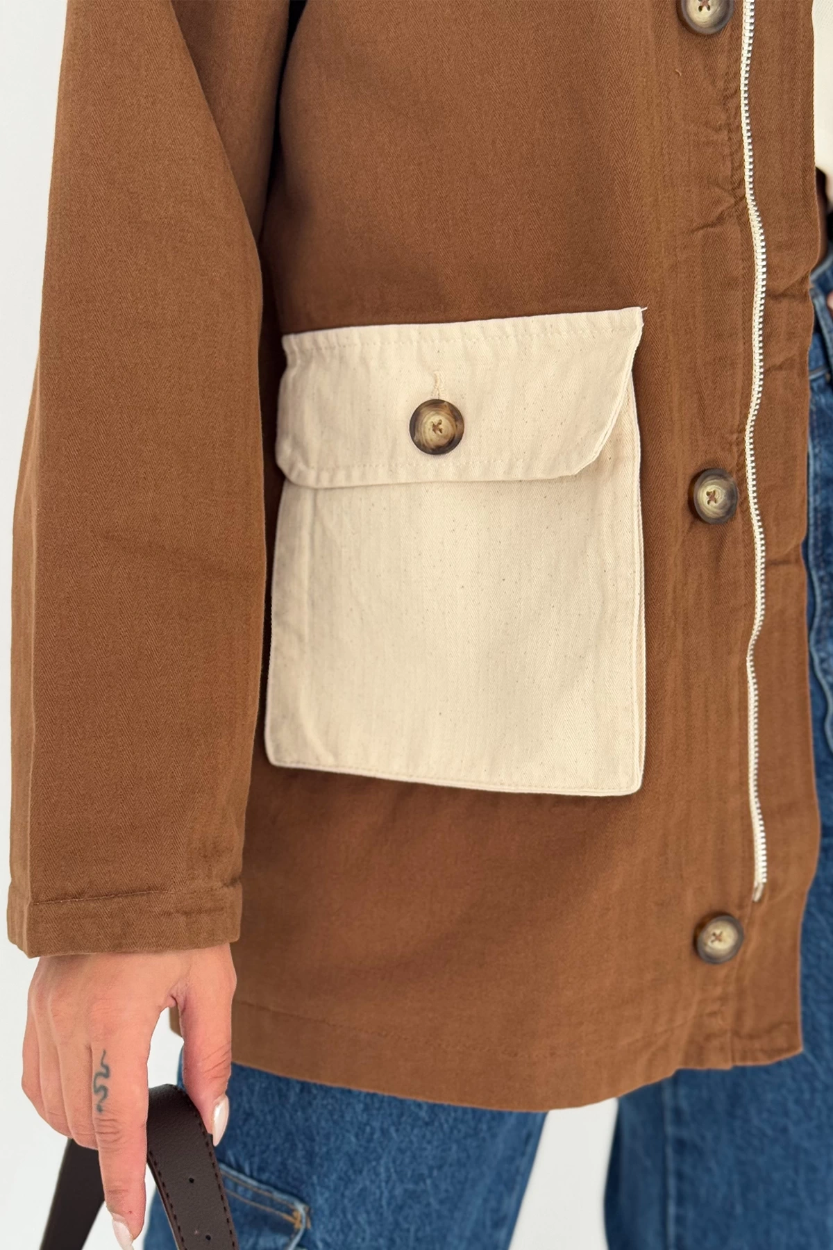 Körüklü Cep Detaylı Yağmur Gabardin Ceket Kahverengi