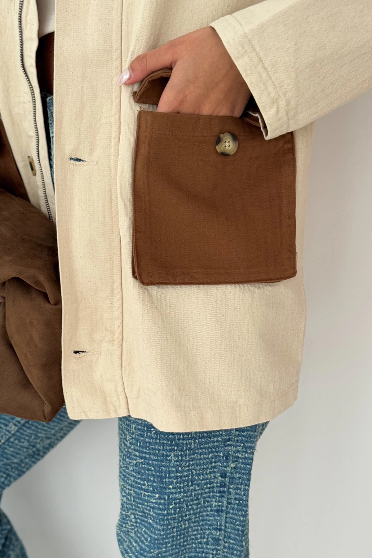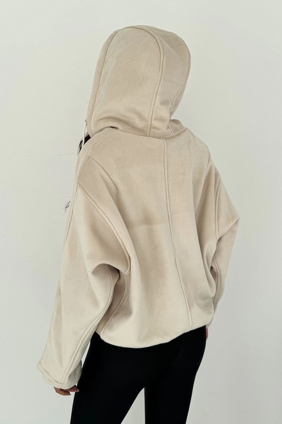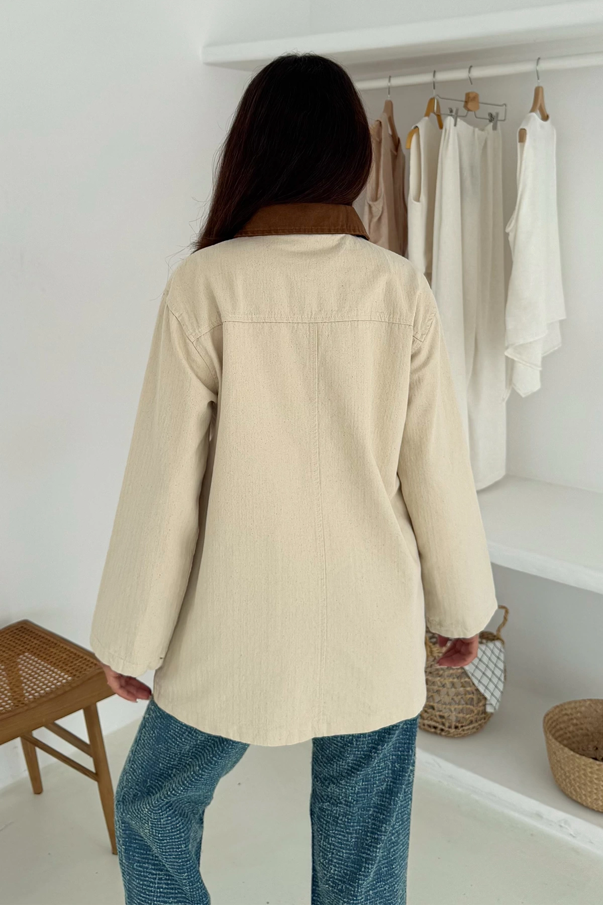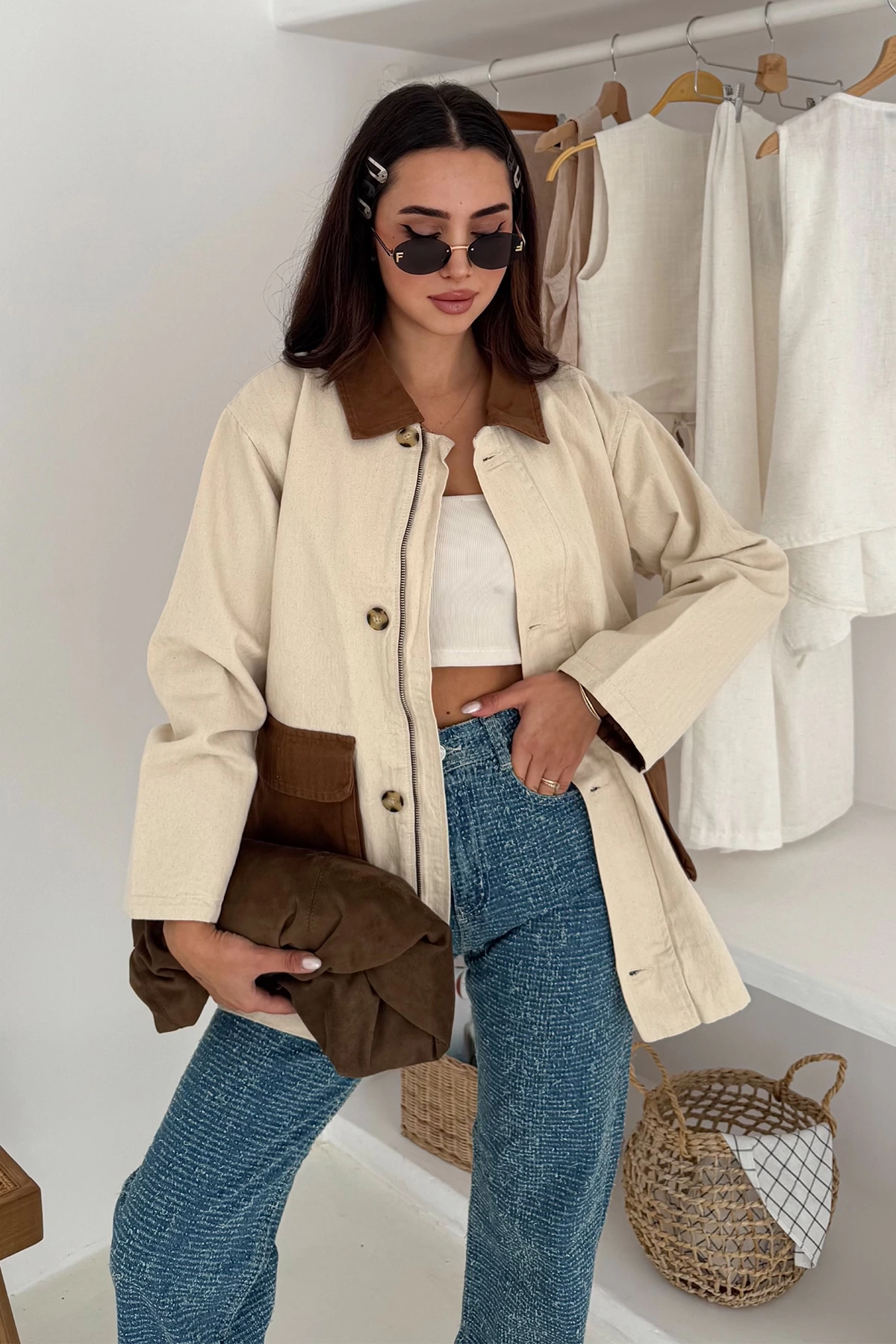 Körüklü Cep Detaylı Yağmur Gabardin Ceket Krem