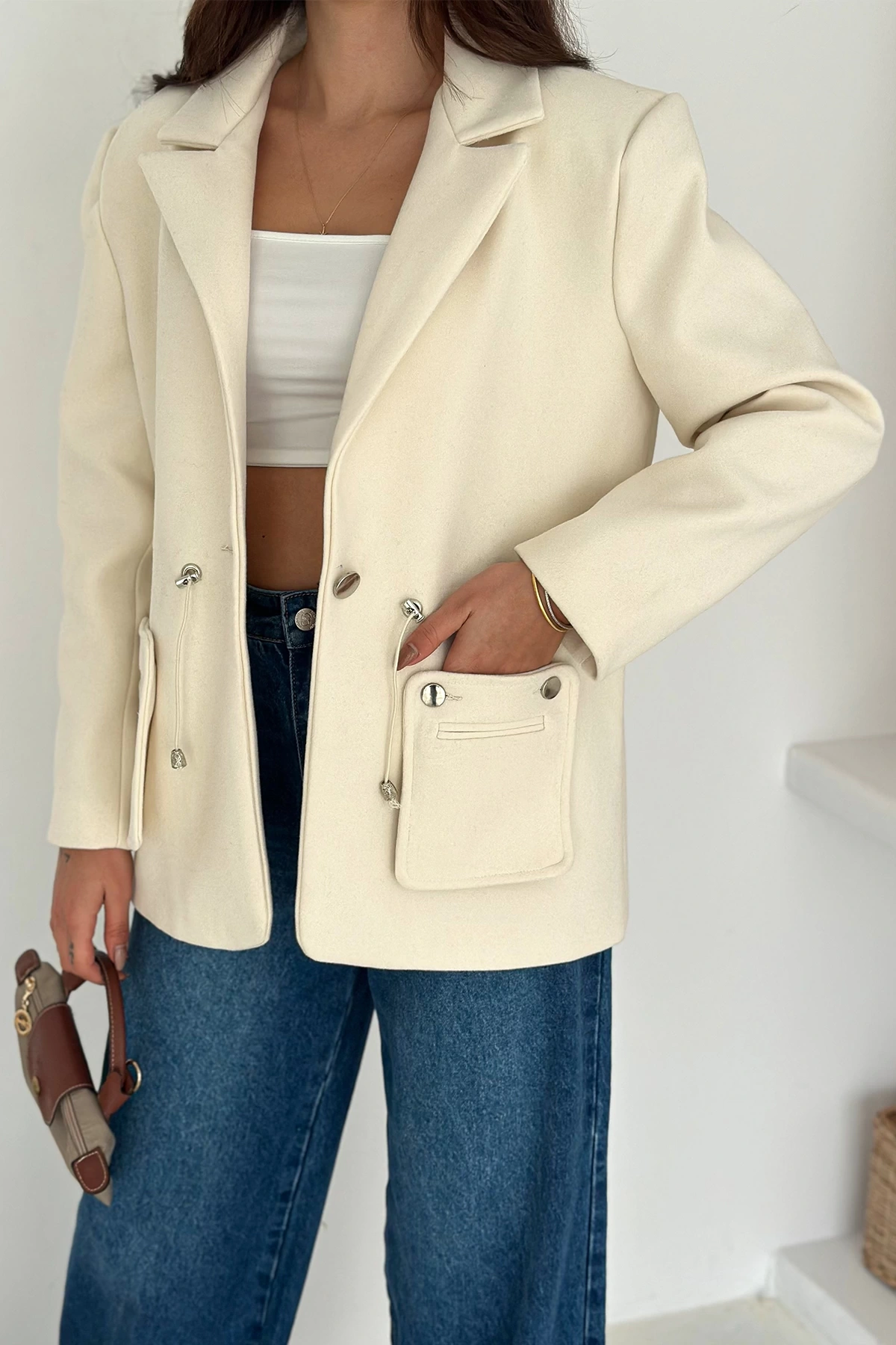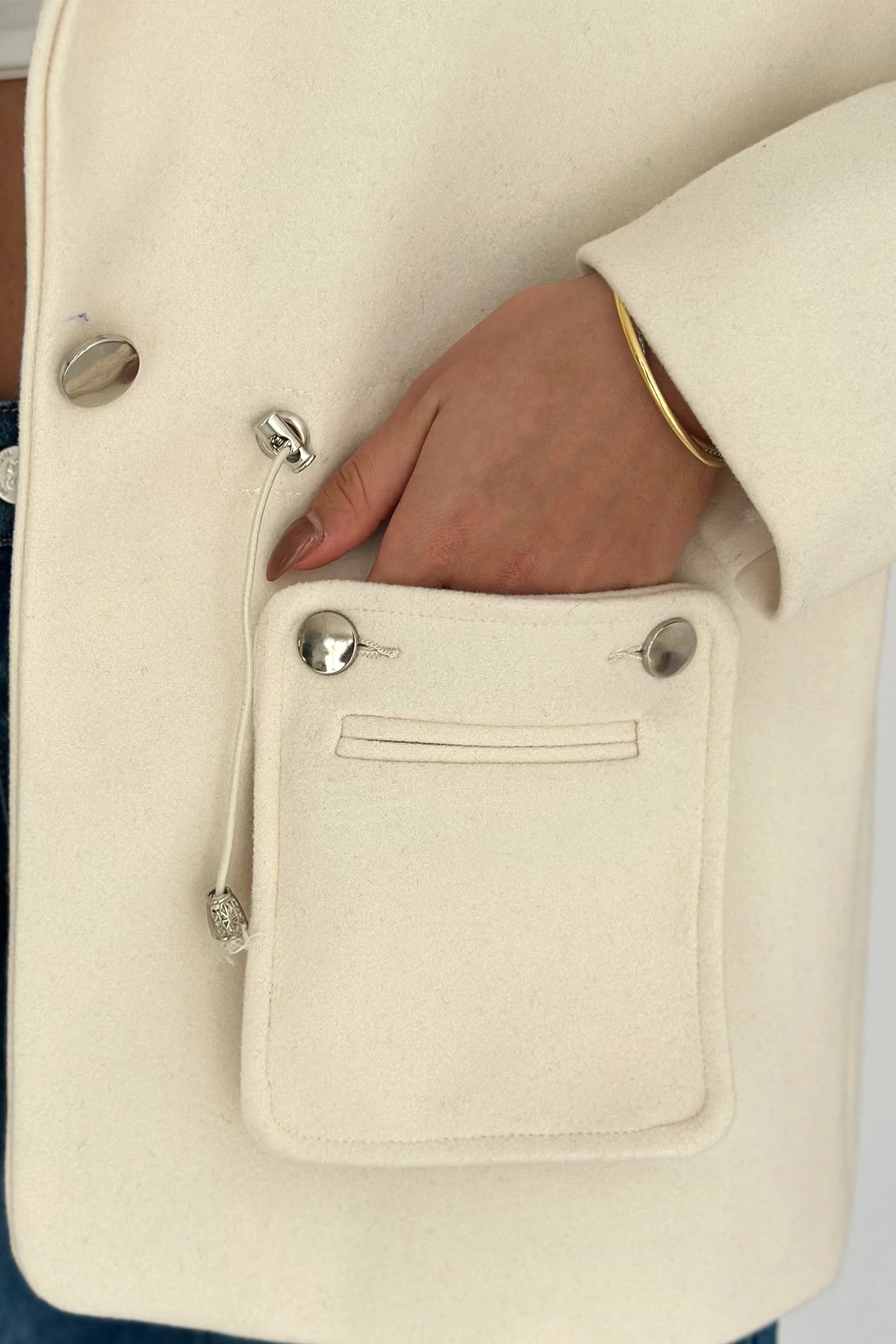 Körüklü Cep Detaylı Yağmur Gabardin Ceket Krem