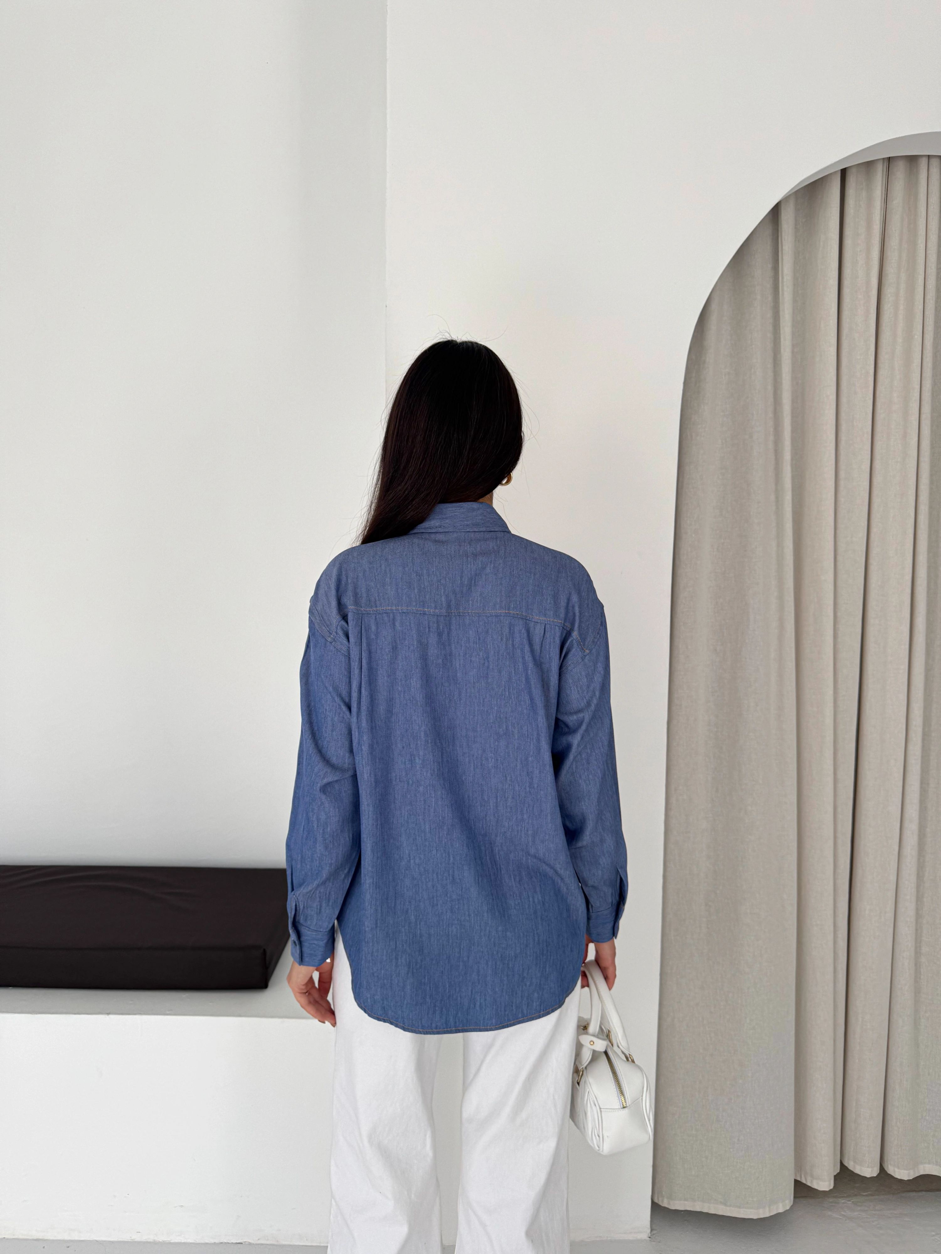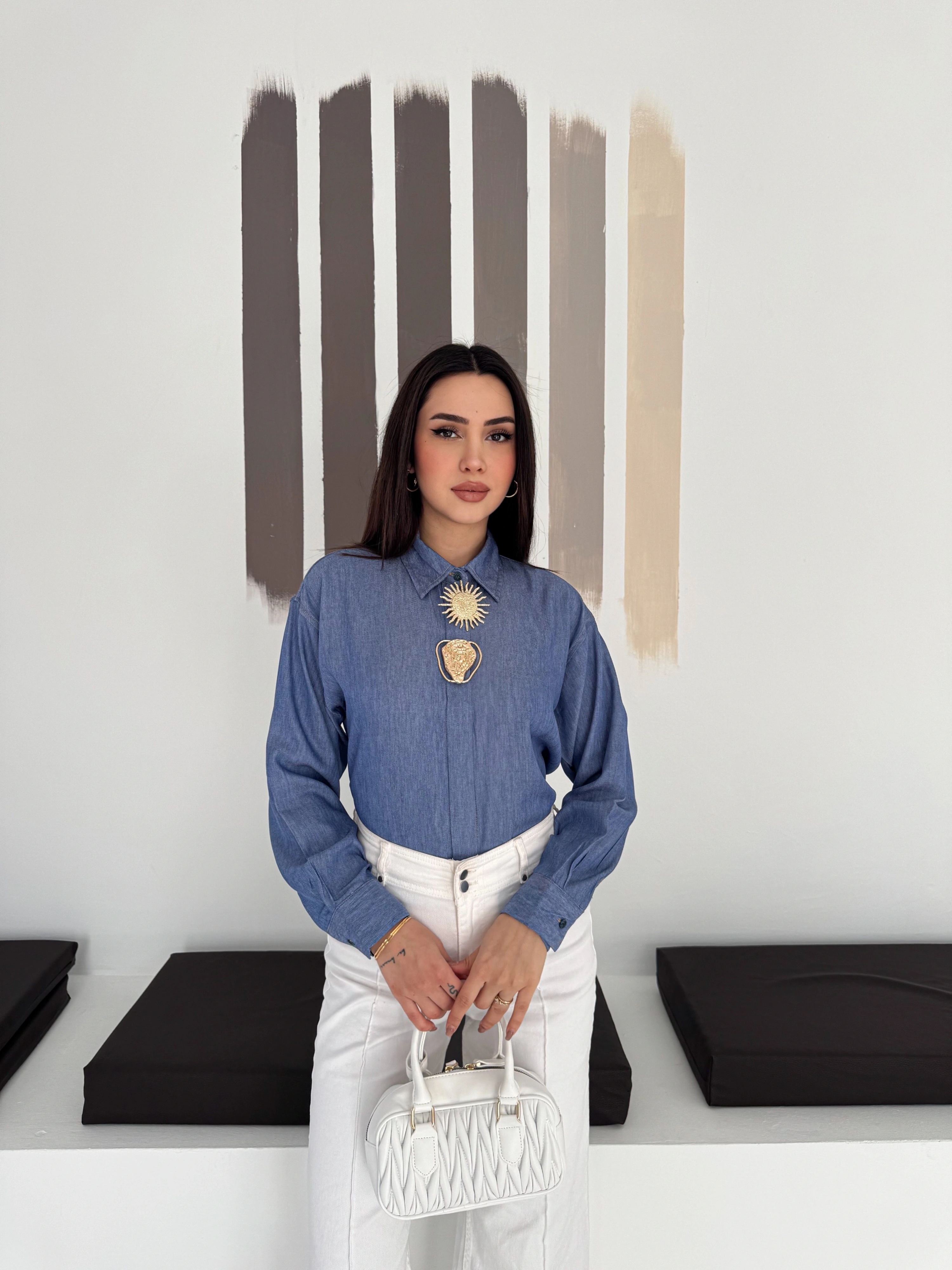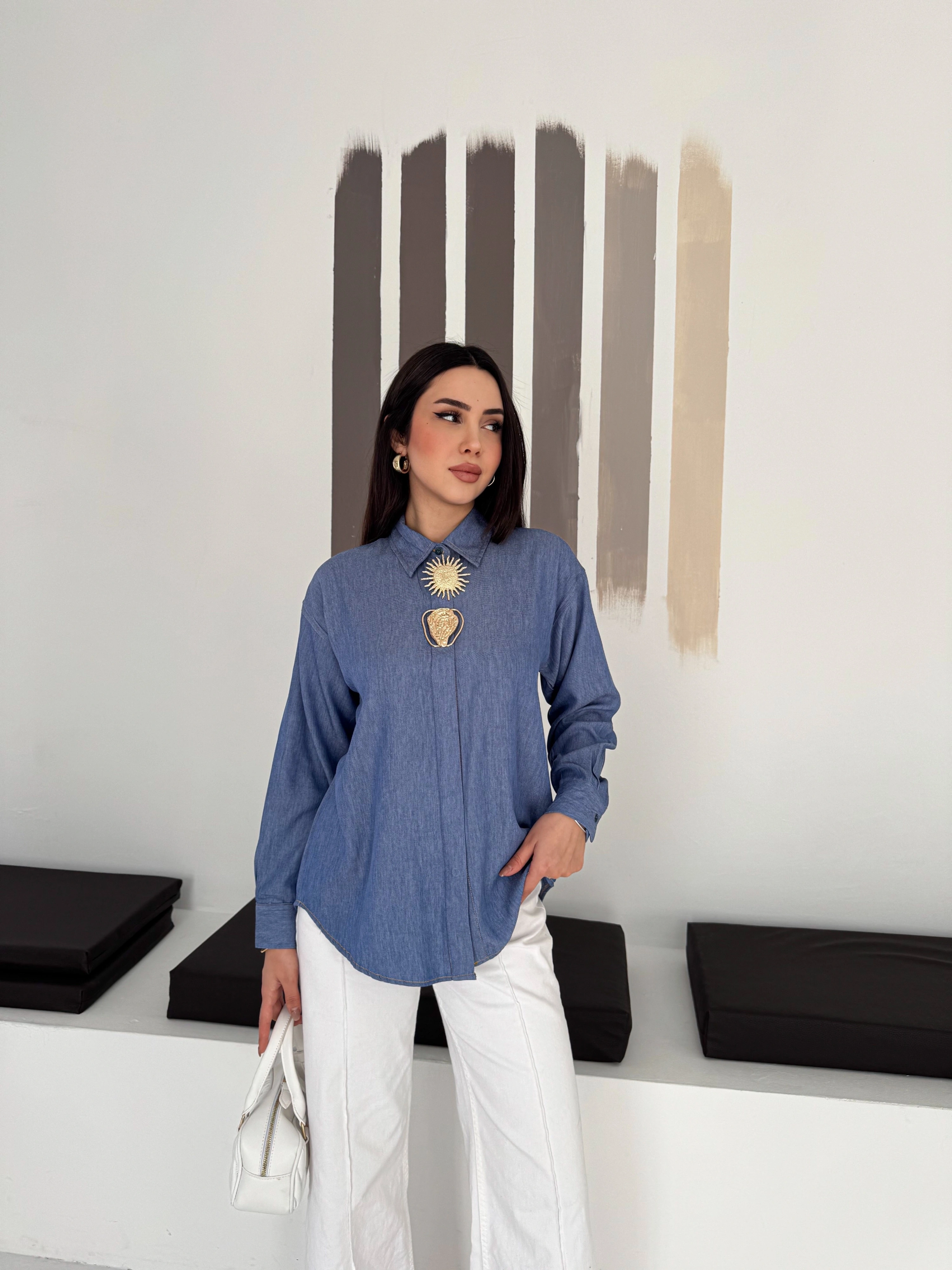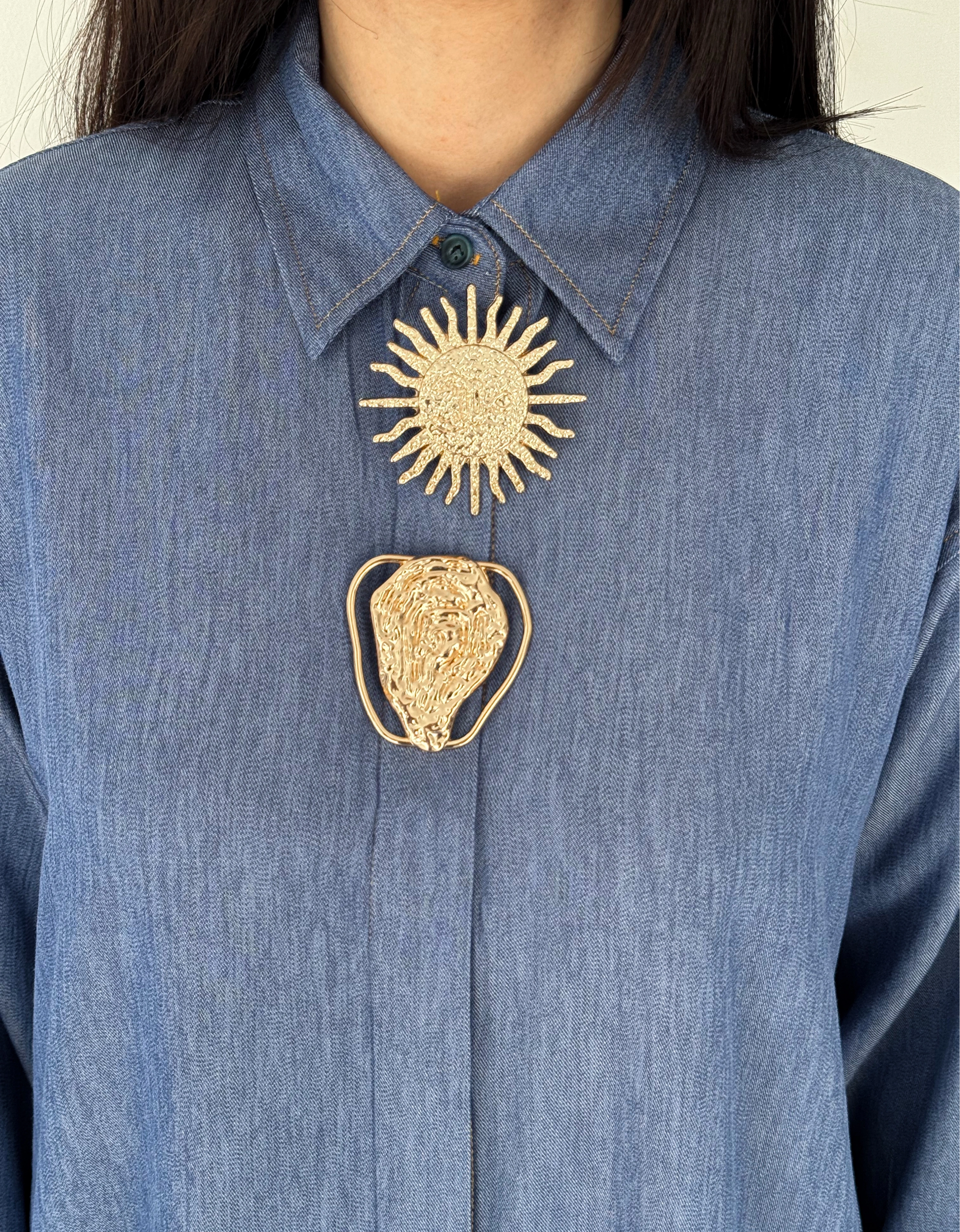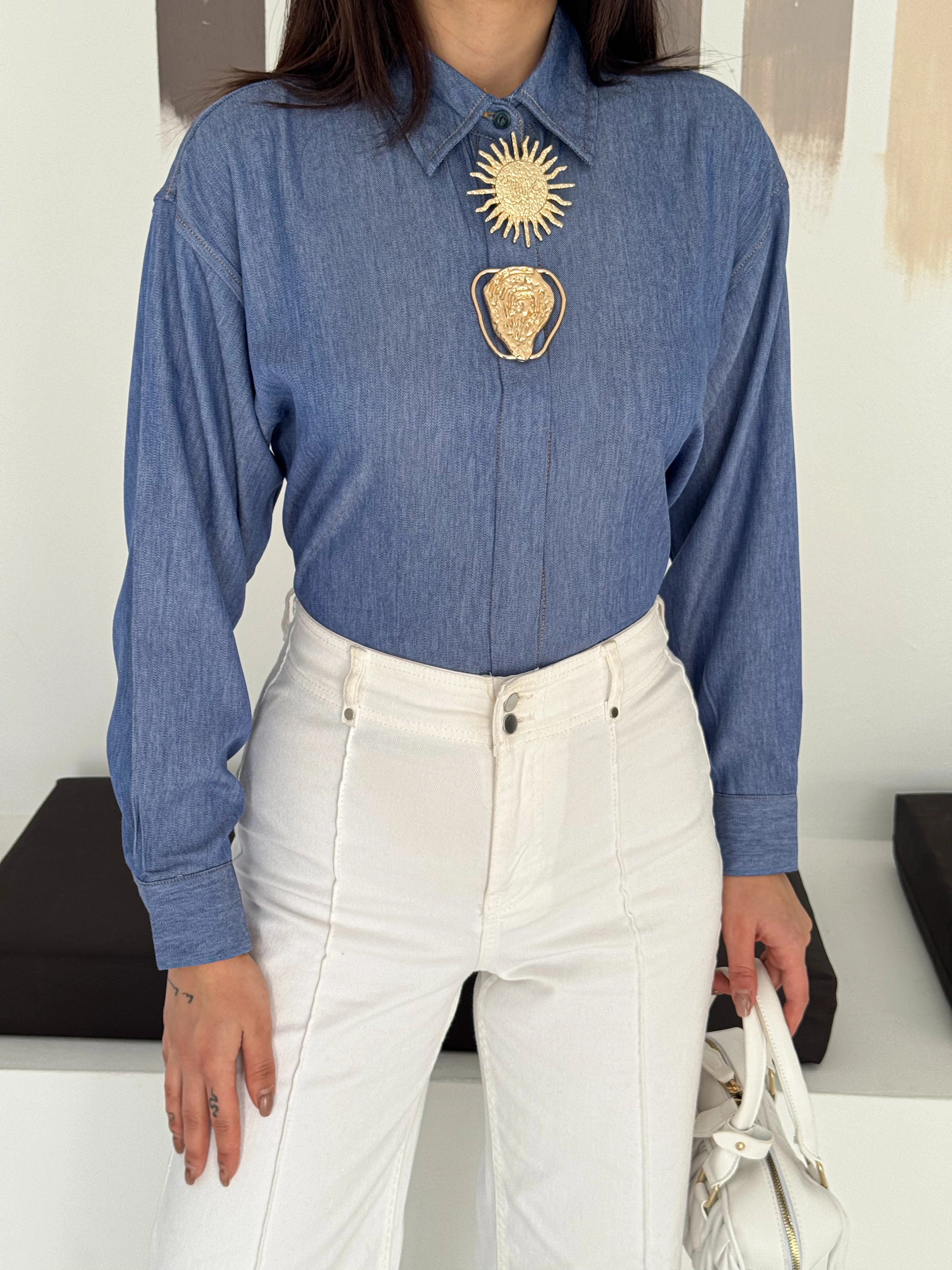 Büyük İğne Tokalı Denim Gömlek
