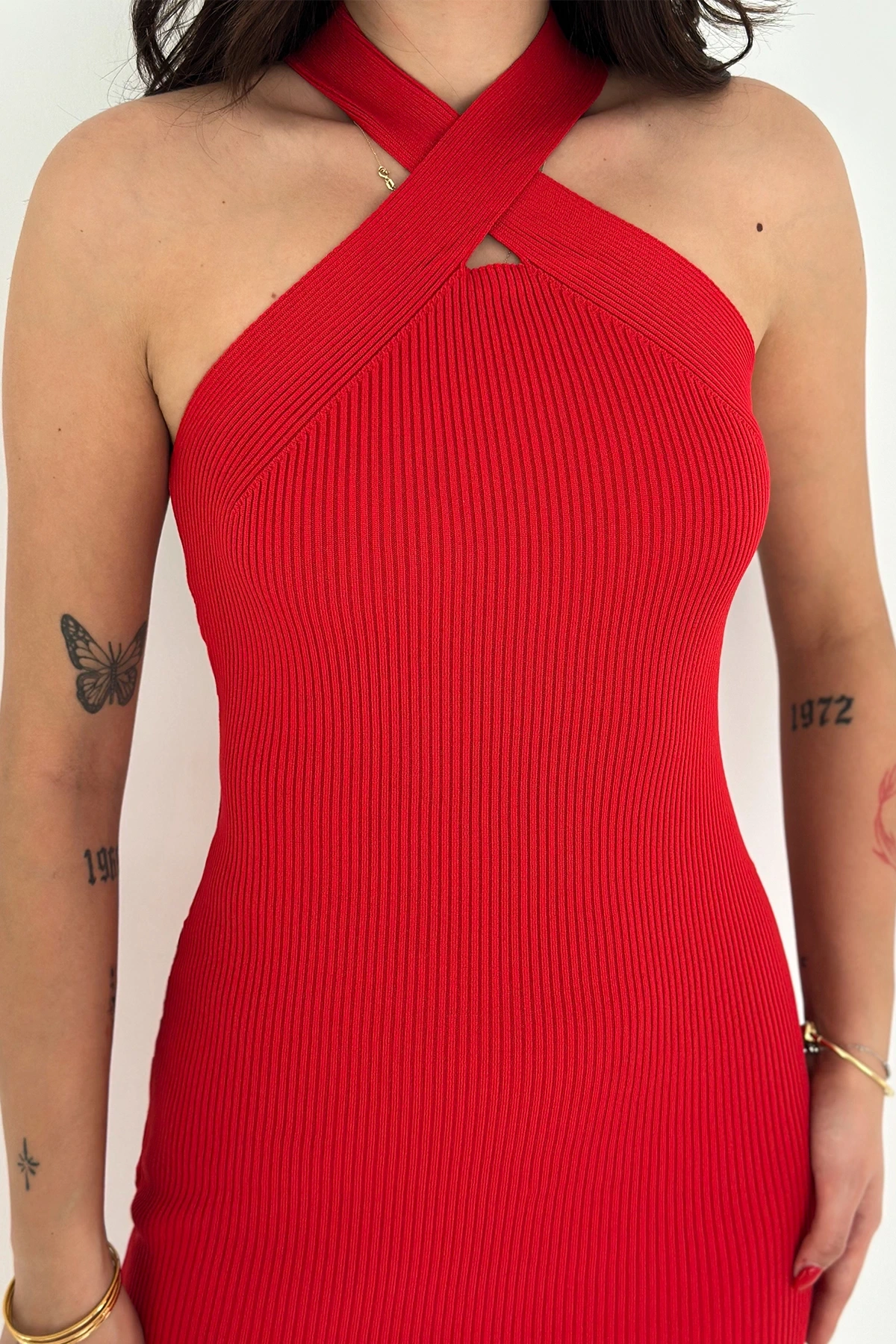Yanları Büzgülü Sırt Dekolteli Kare Yaka Elbise Mavi