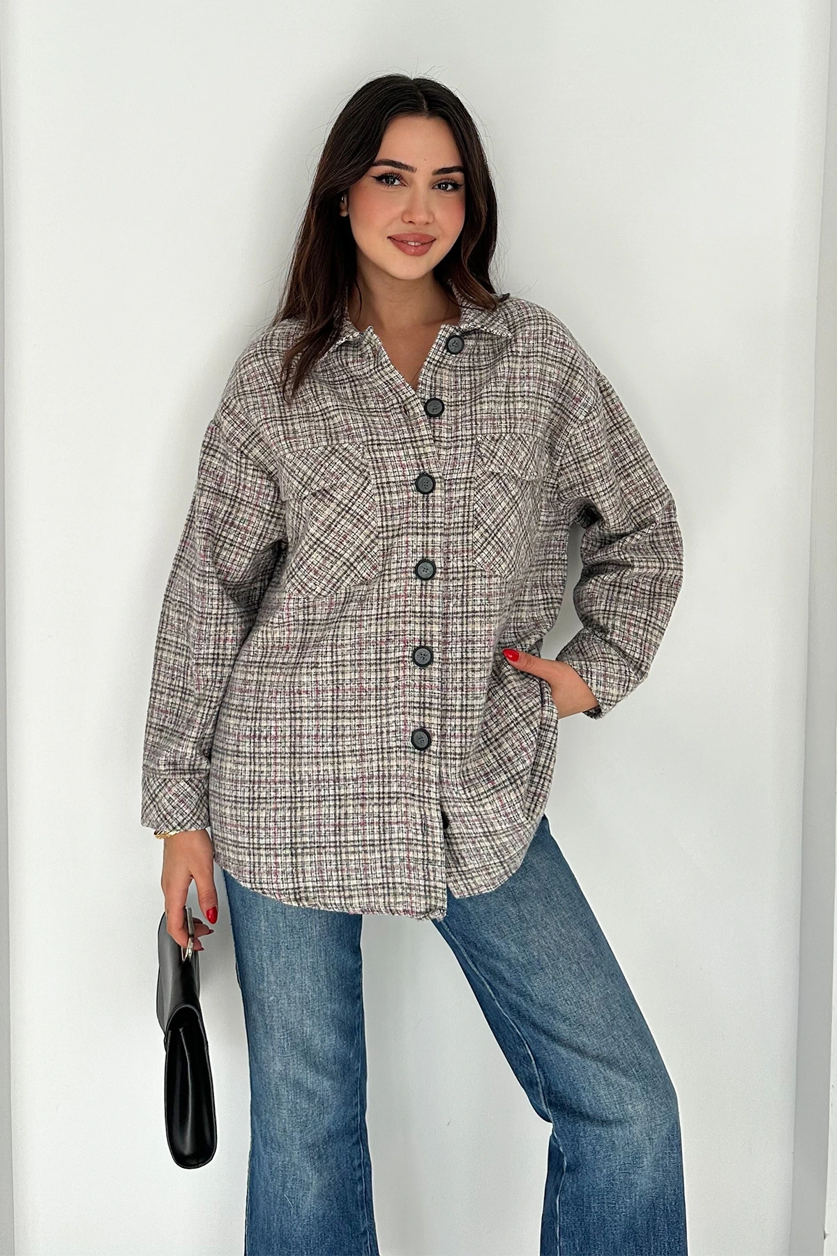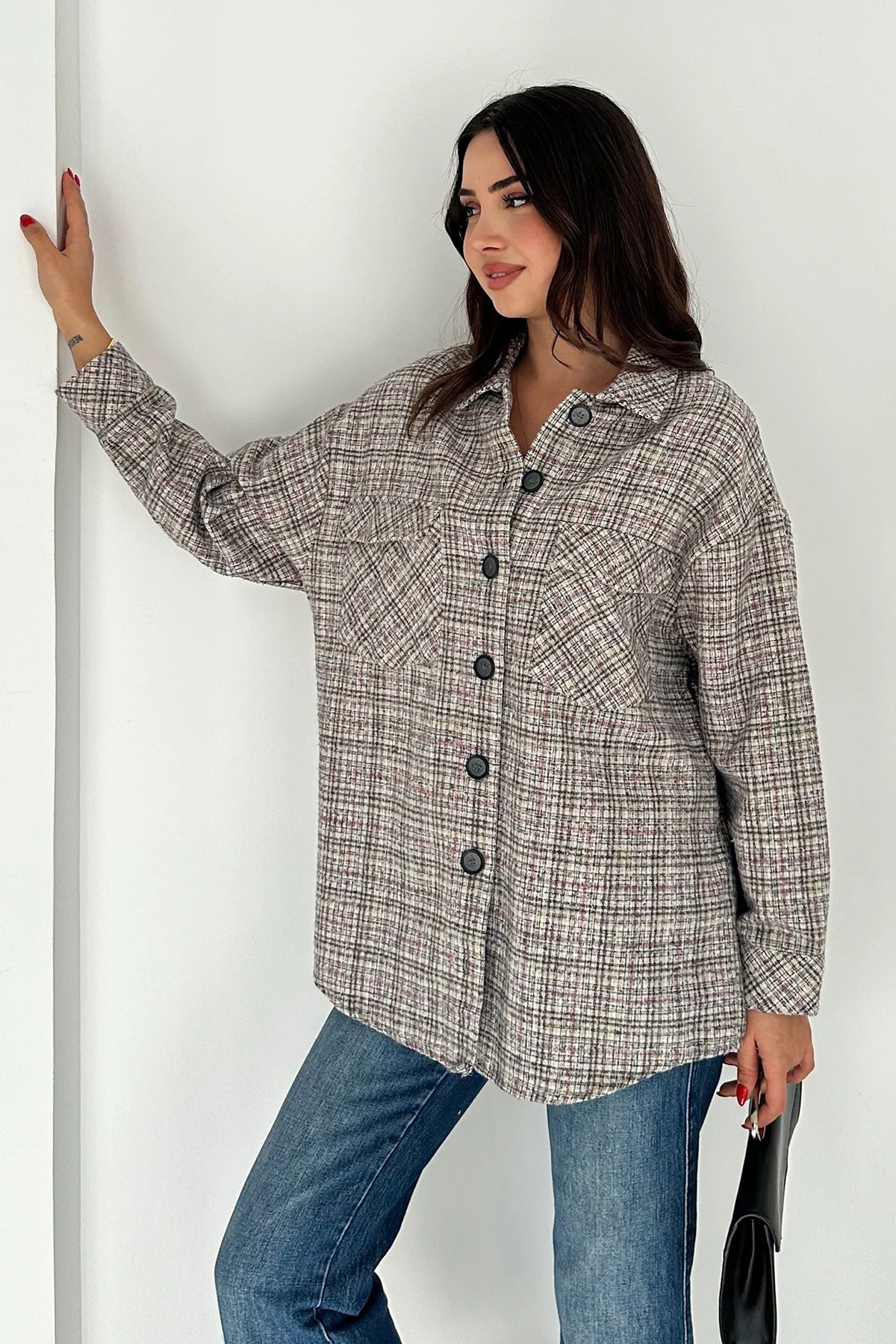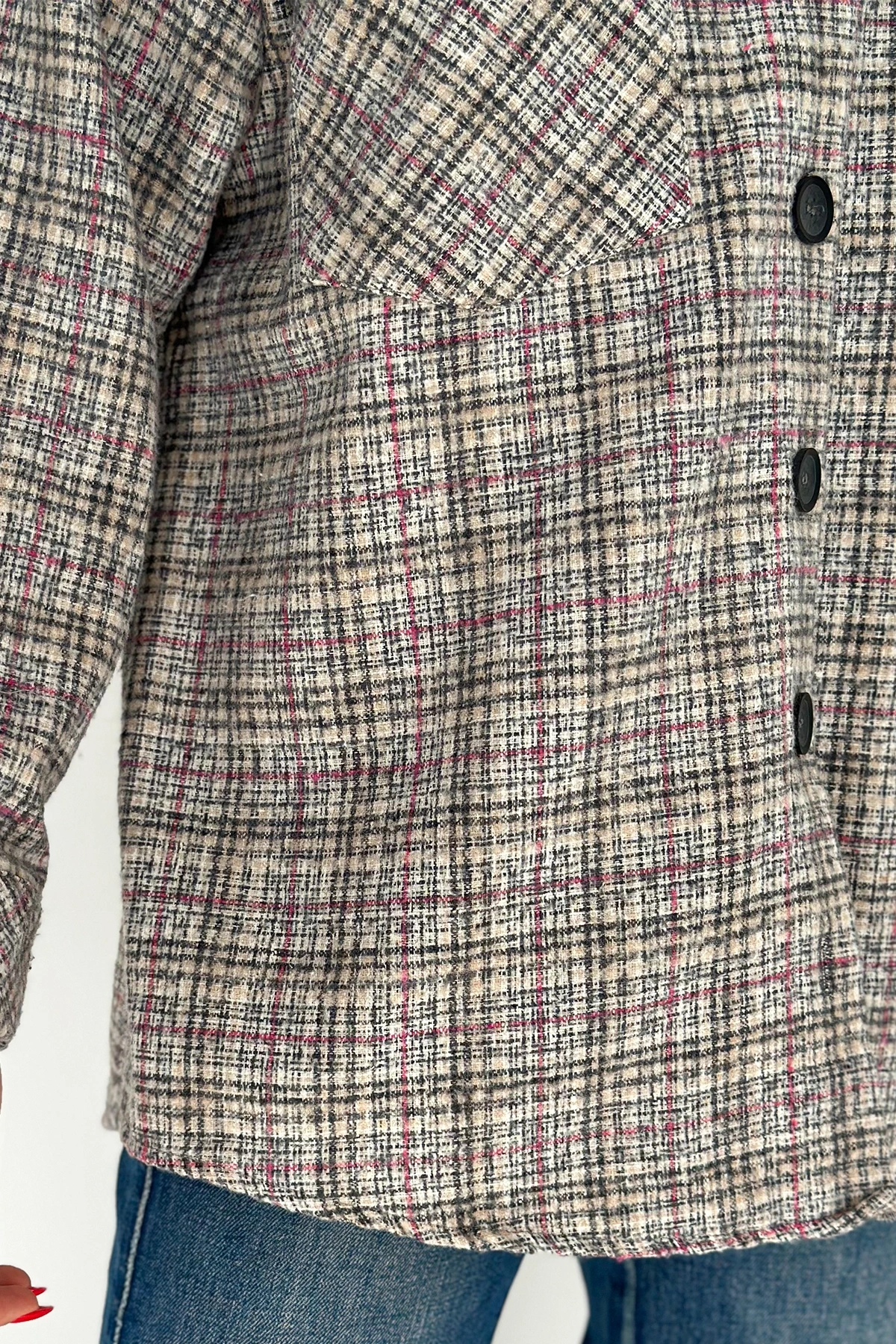 Çift Cep Ekose Gömlek Krem