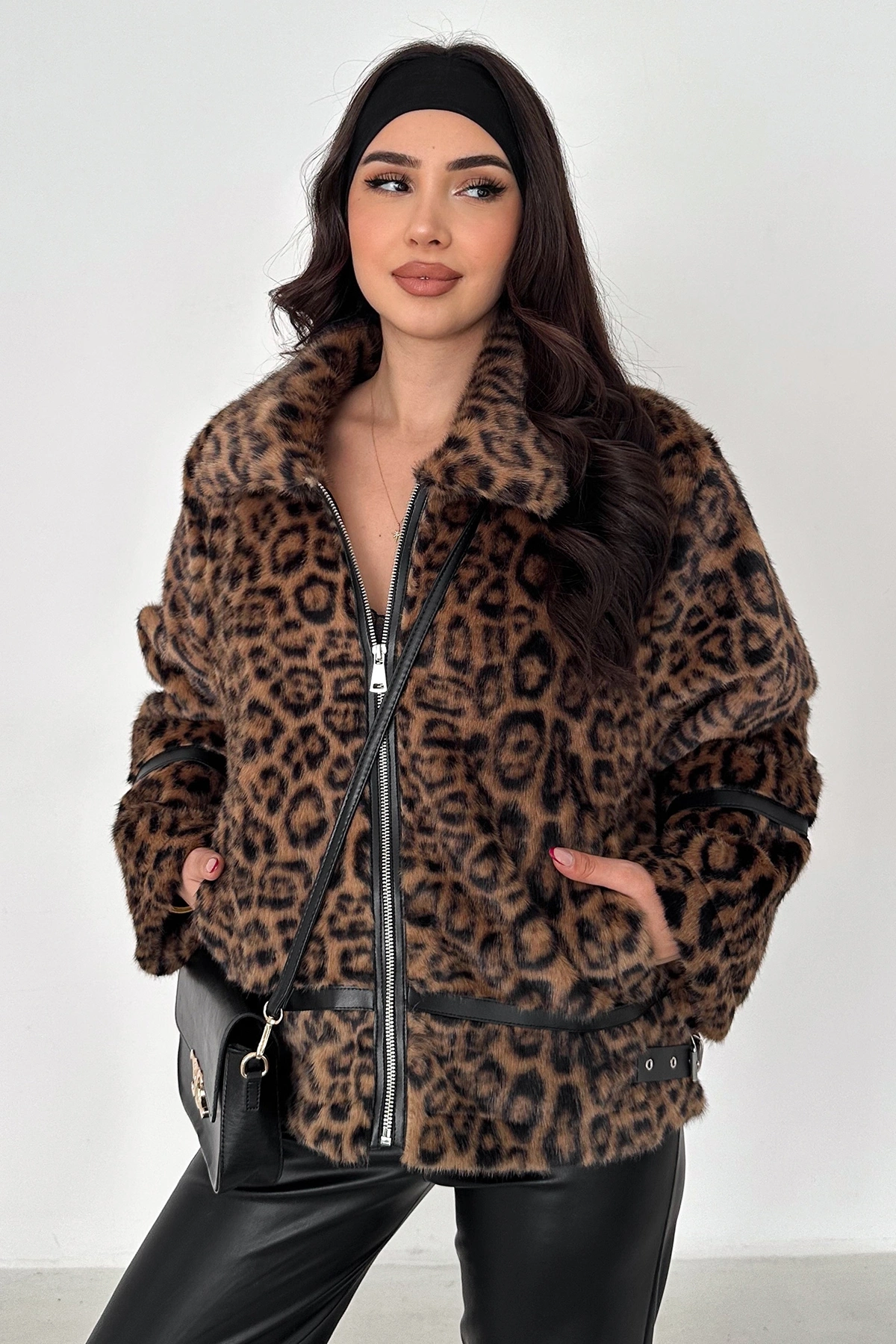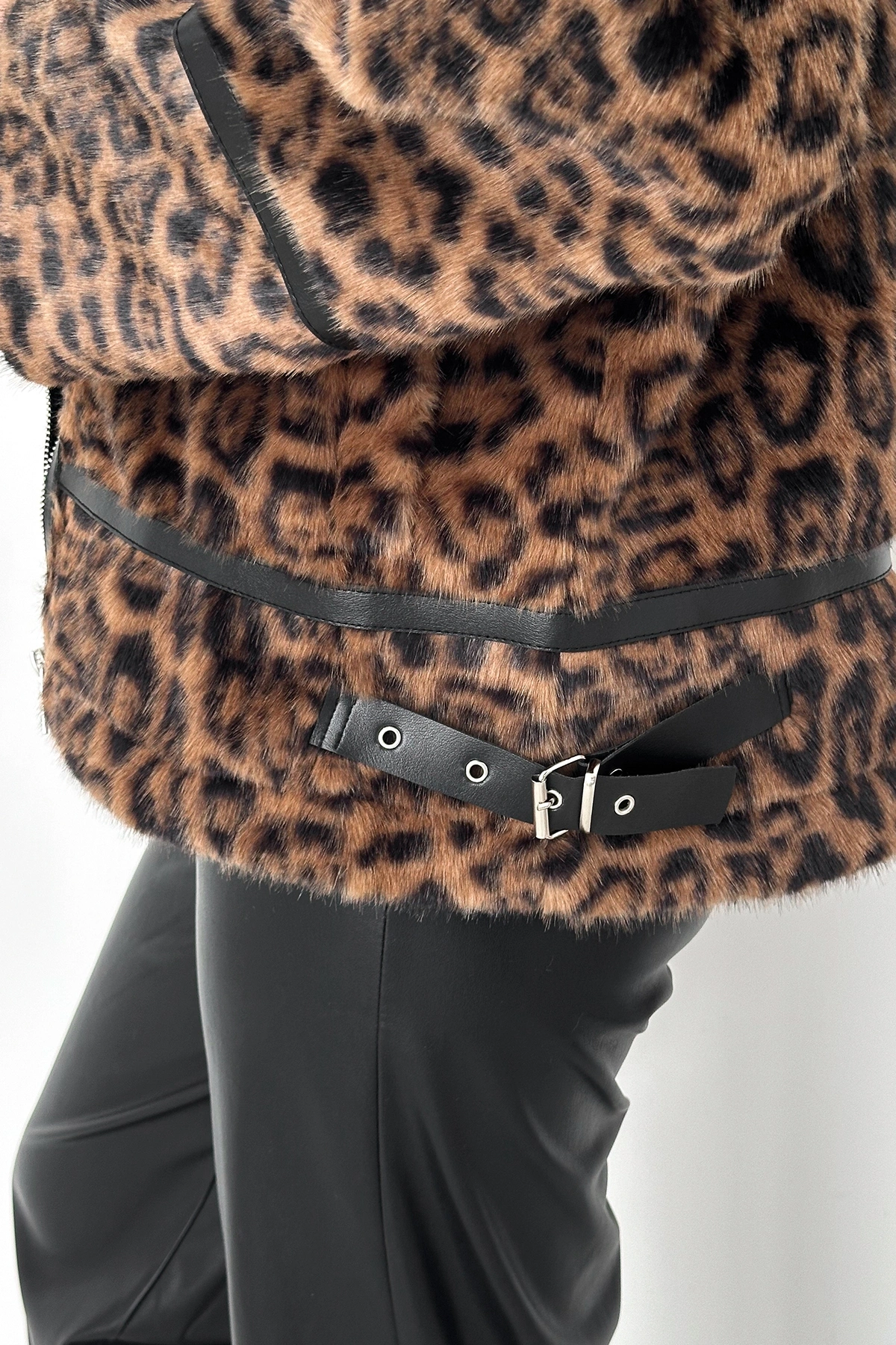 Deri Biyeli Leopar Kürk