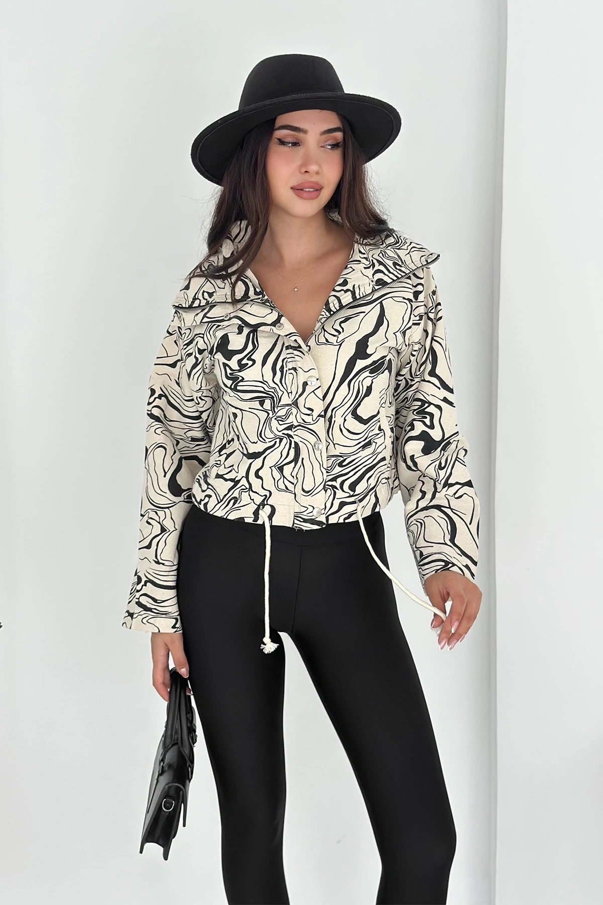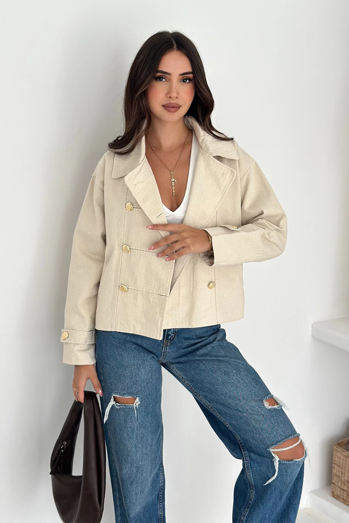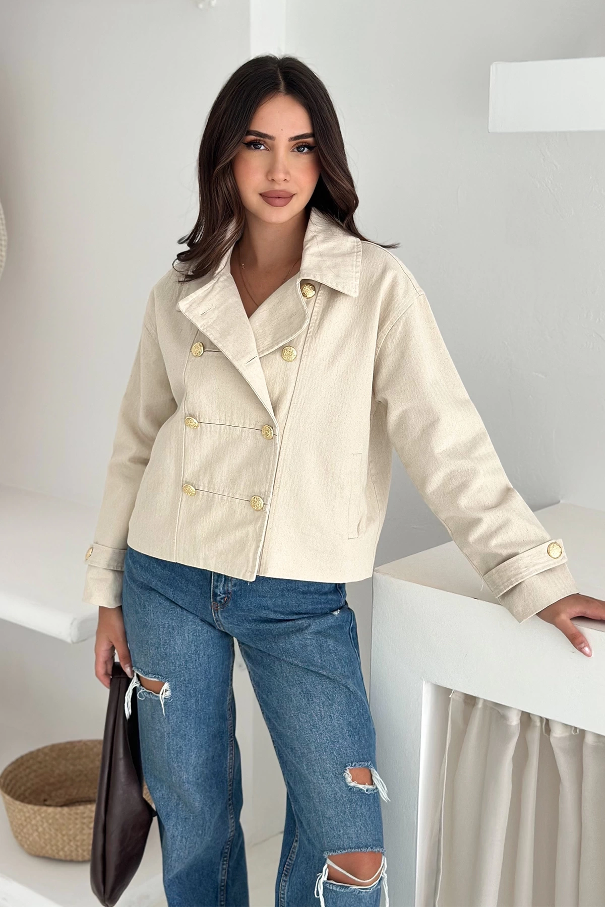 Düğme Detaylı Yağmur Gabardin Ceket Ekru