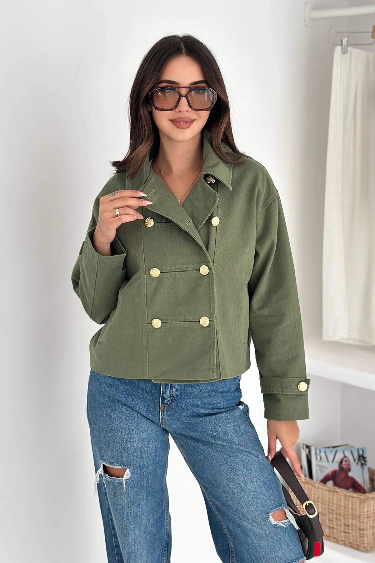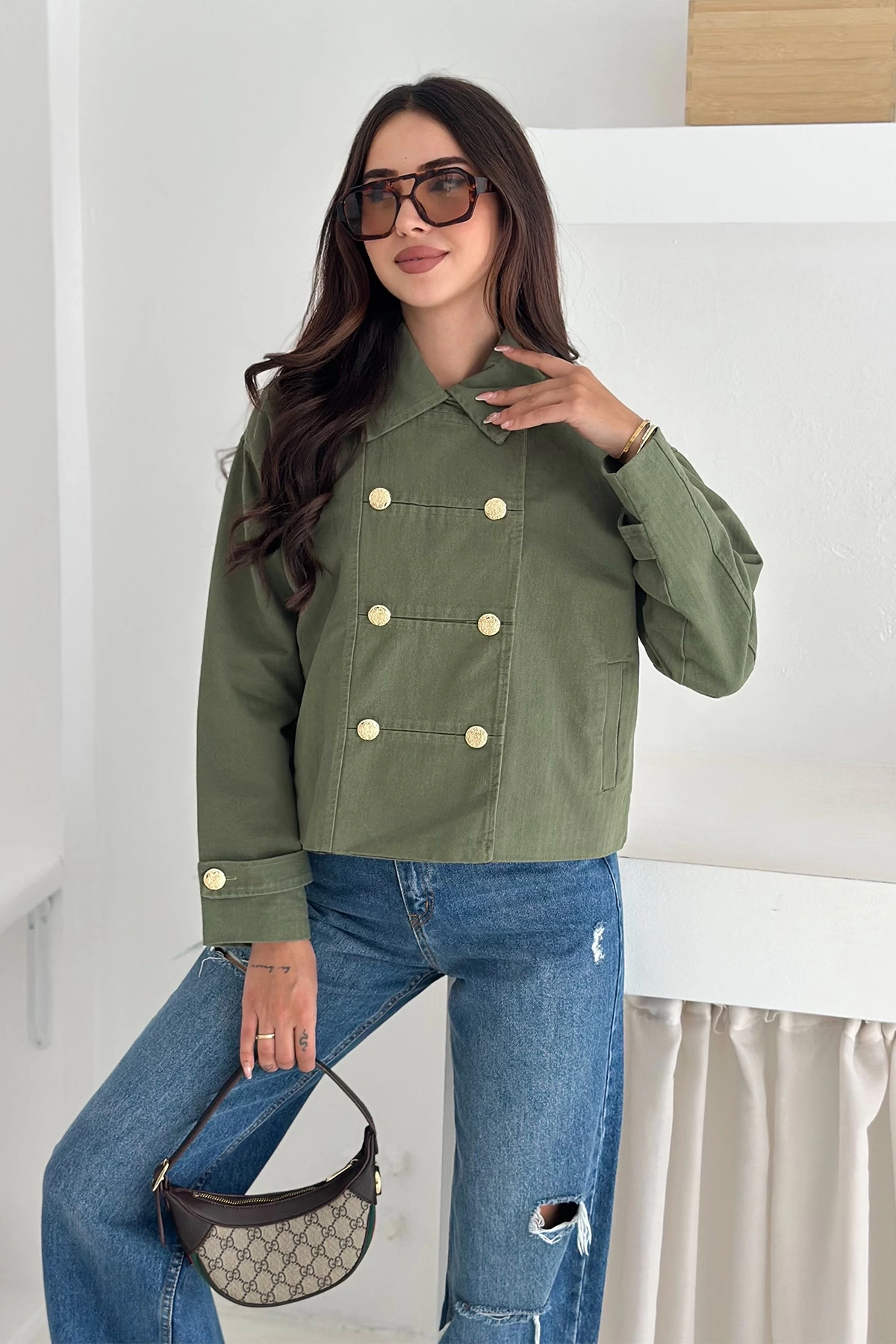 Düğme Detaylı Yağmur Gabardin Ceket Haki