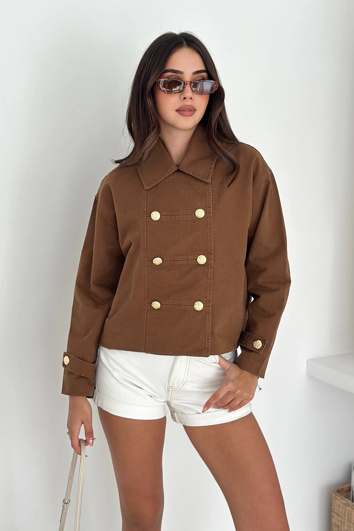 Düğme Detaylı Yağmur Gabardin Ceket Kahverengi