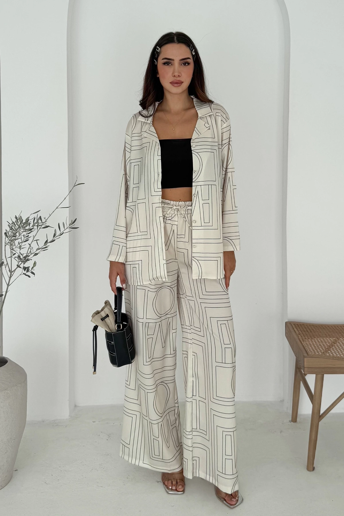 Geometrik desenleri ile sade ama iddialı bir stil oluştururken, beyaz tonun zarafetiyle sofistike bir görünüm elde edebilirsiniz.