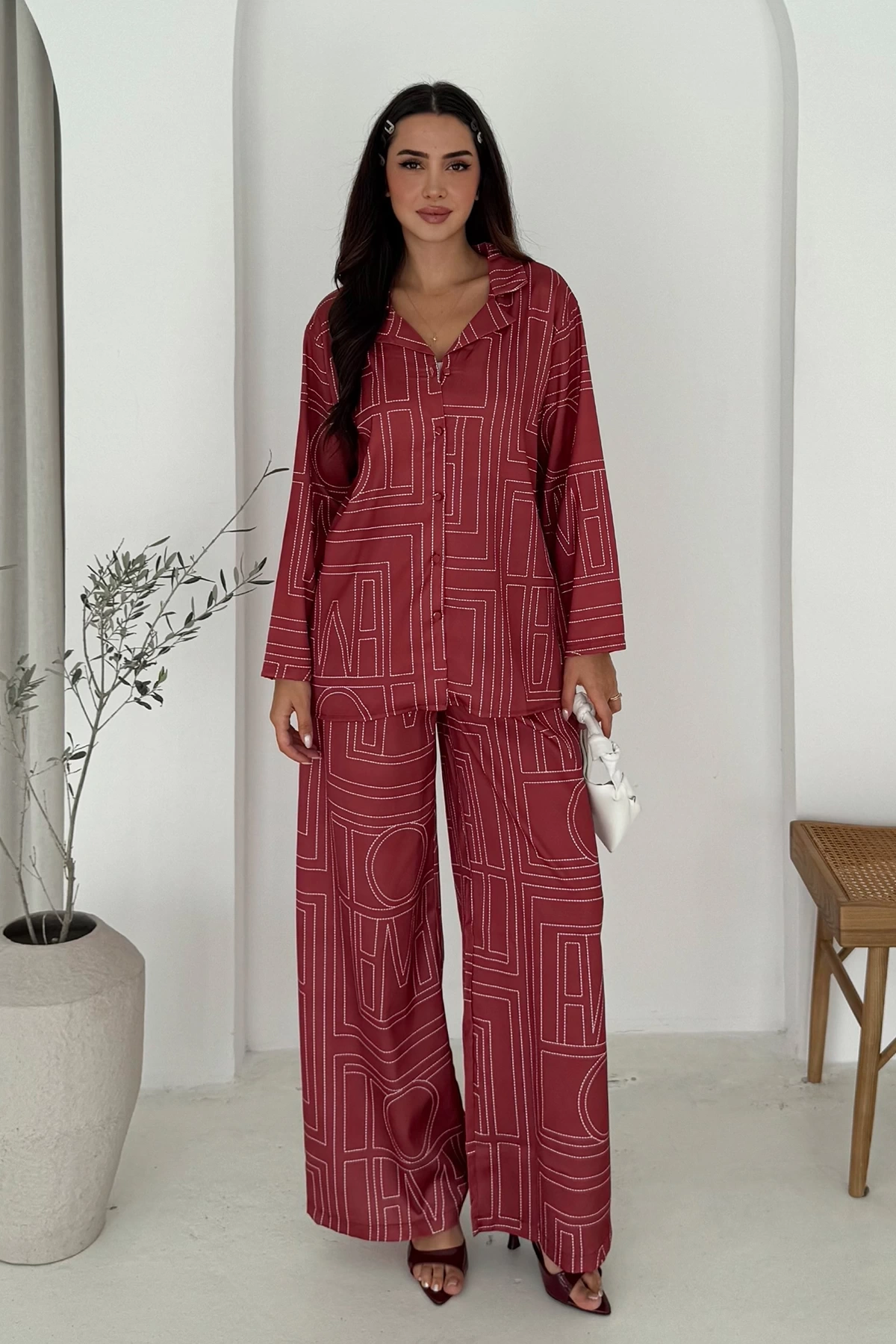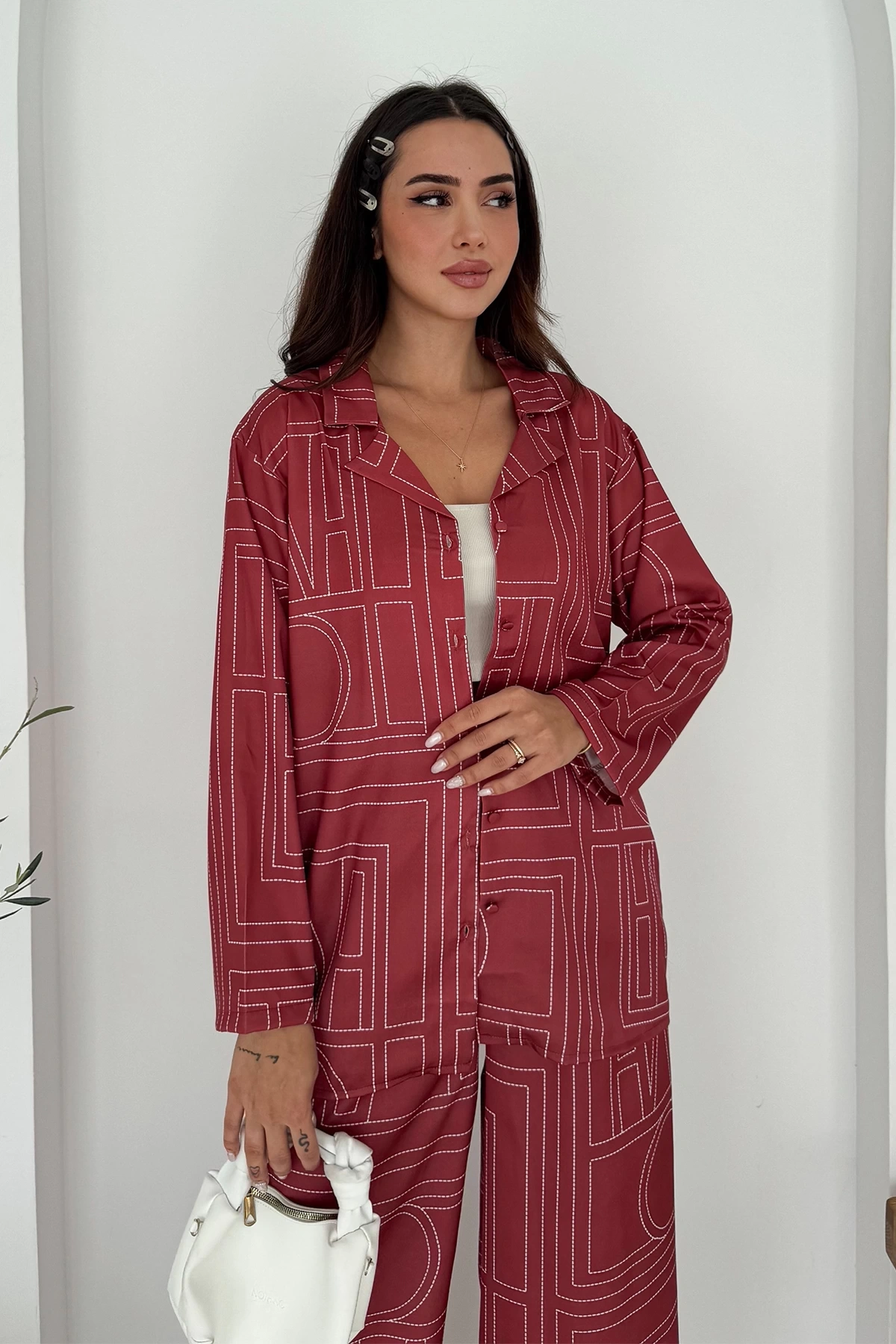 Geometrik desenleri ile sade ama iddialı bir stil oluştururken, kırmızı tonun zarafetiyle sofistike bir görünüm elde edebilirsiniz.