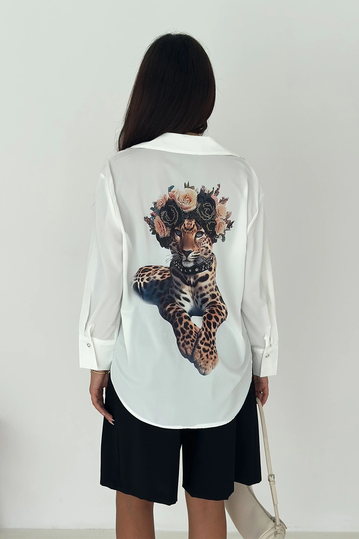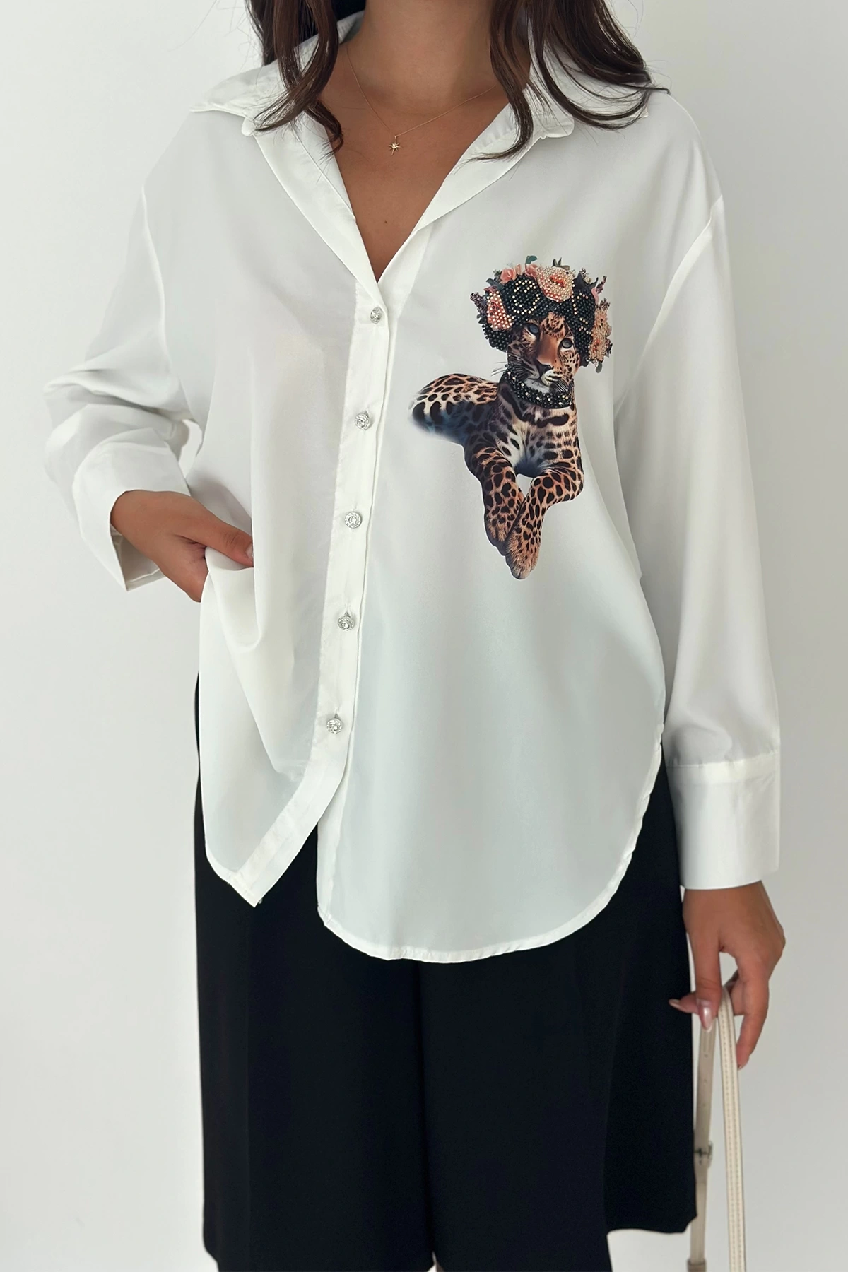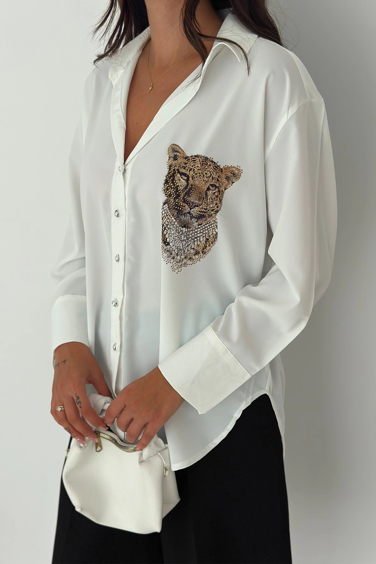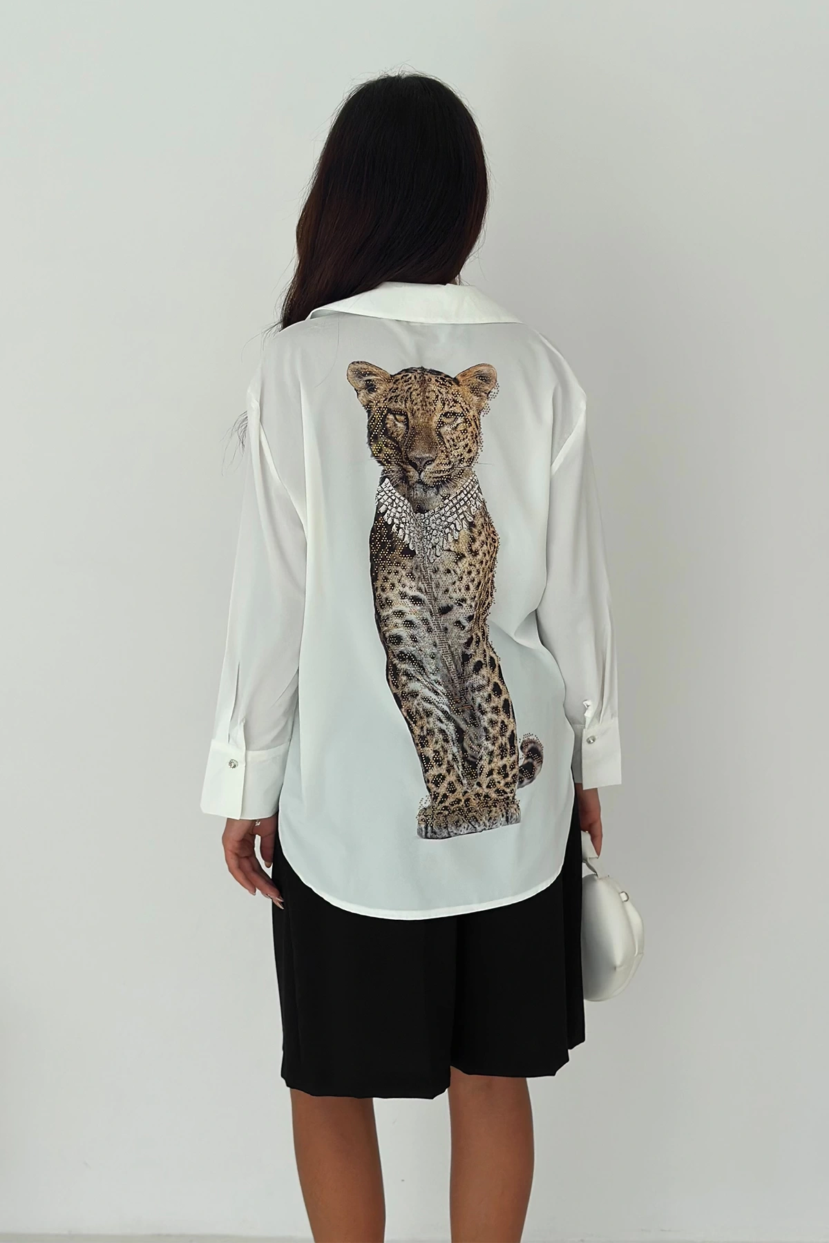 Kaplan Desen Taç Baskılı Taşlı Gömlek