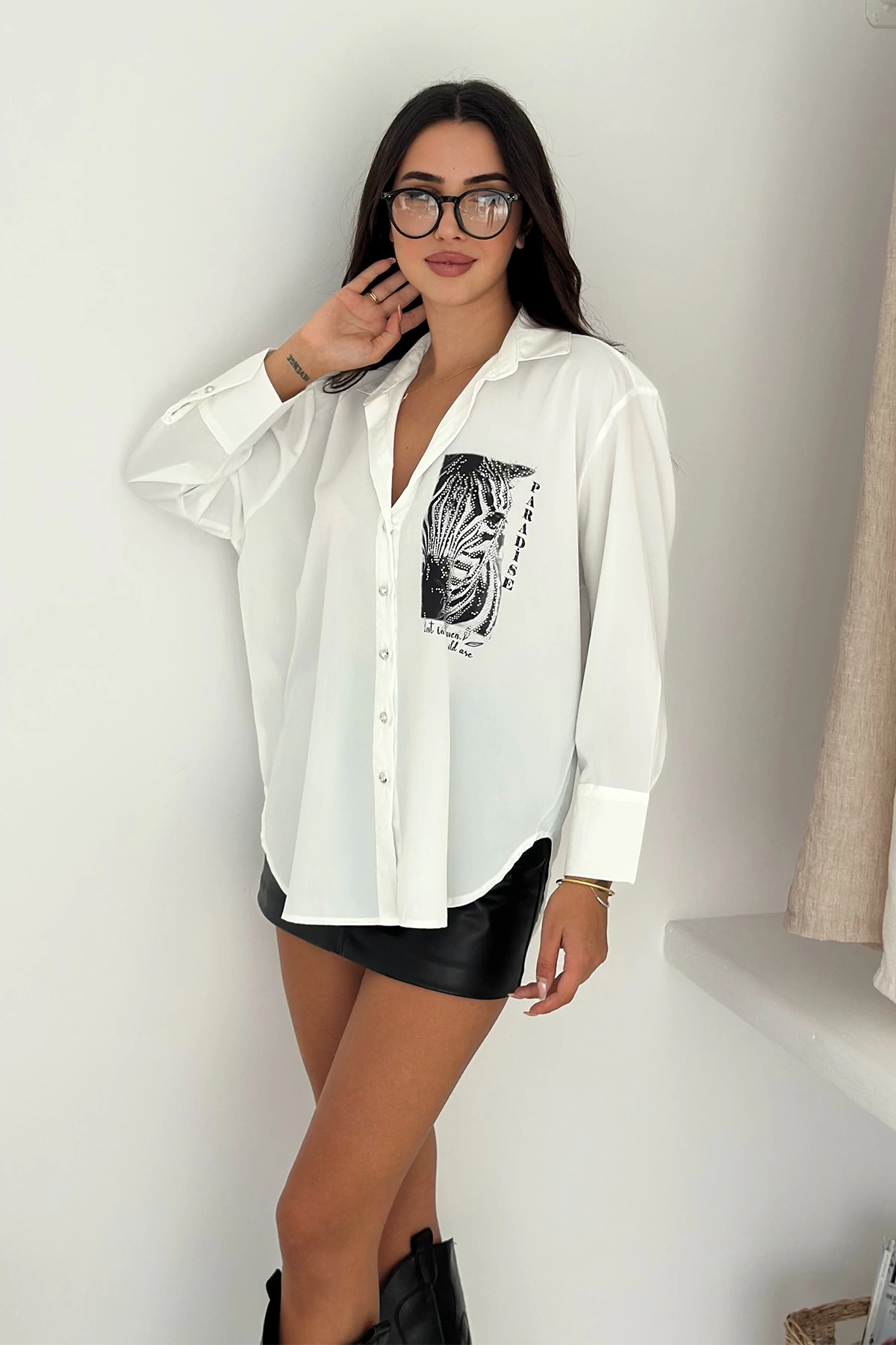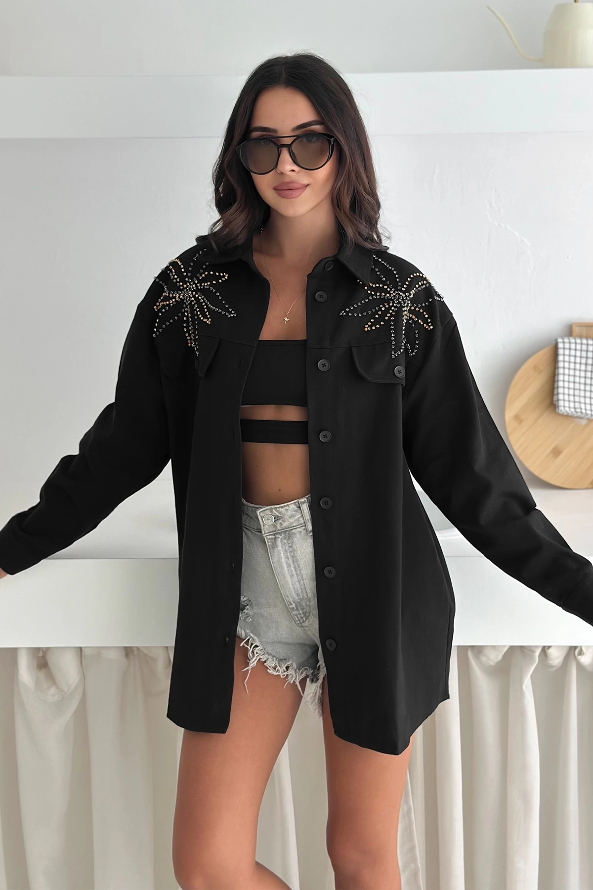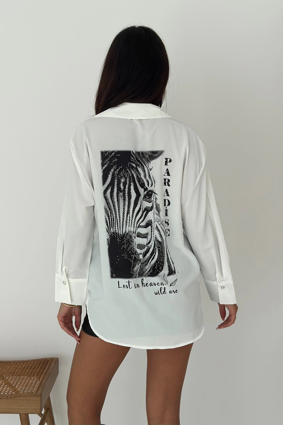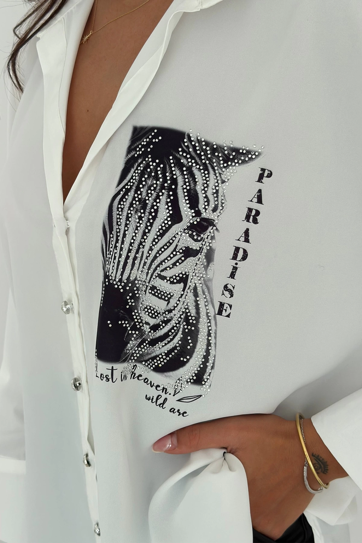 Kaplan Desen Taç Baskılı Taşlı Gömlek