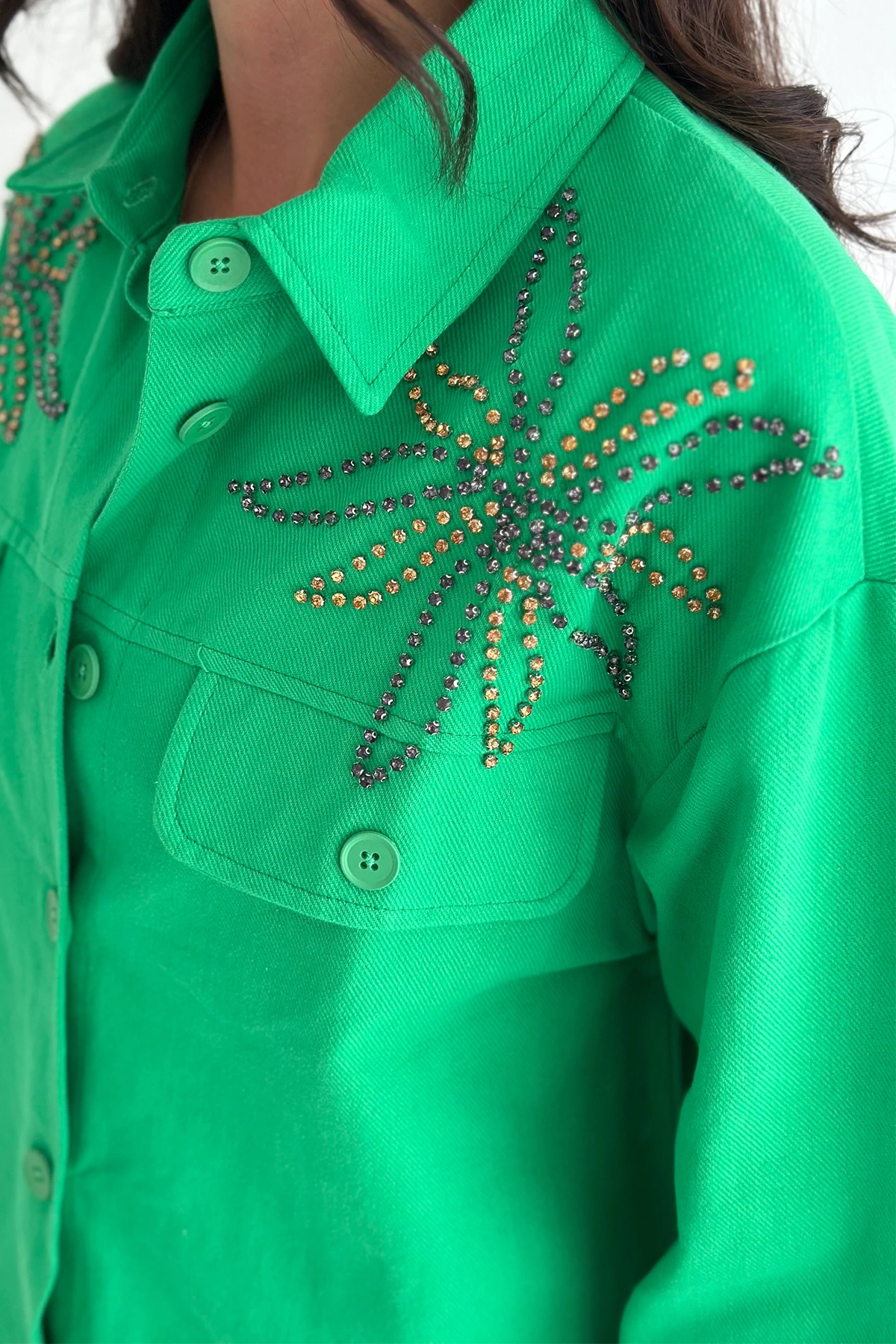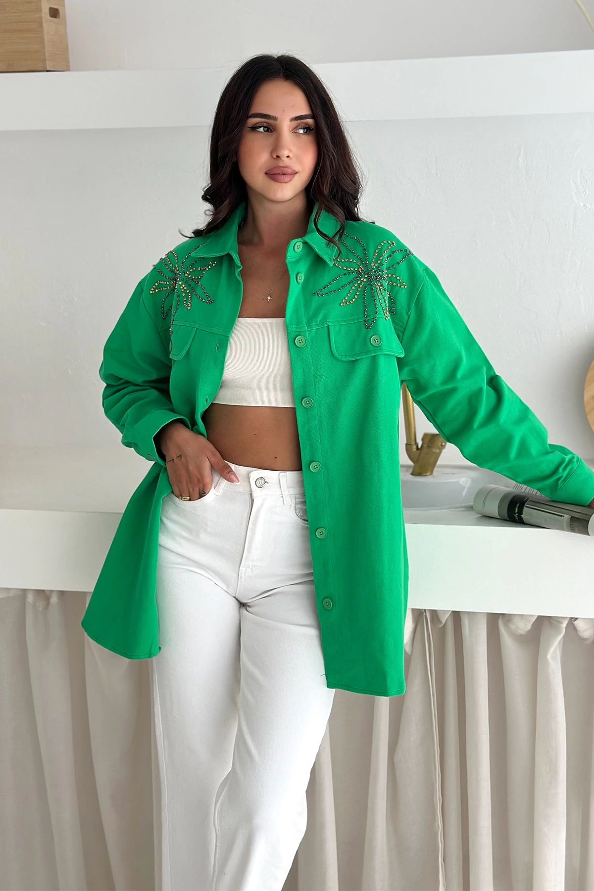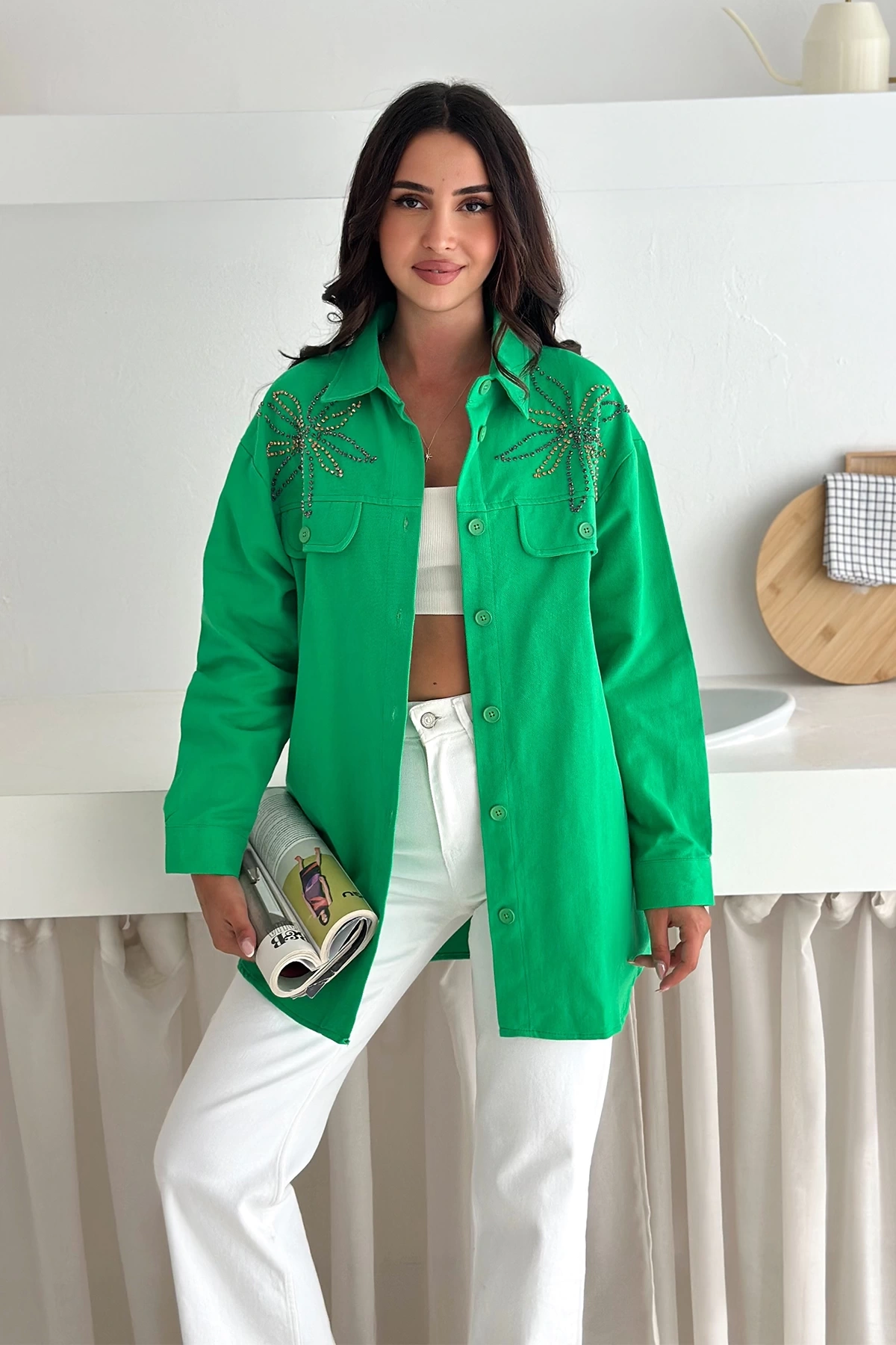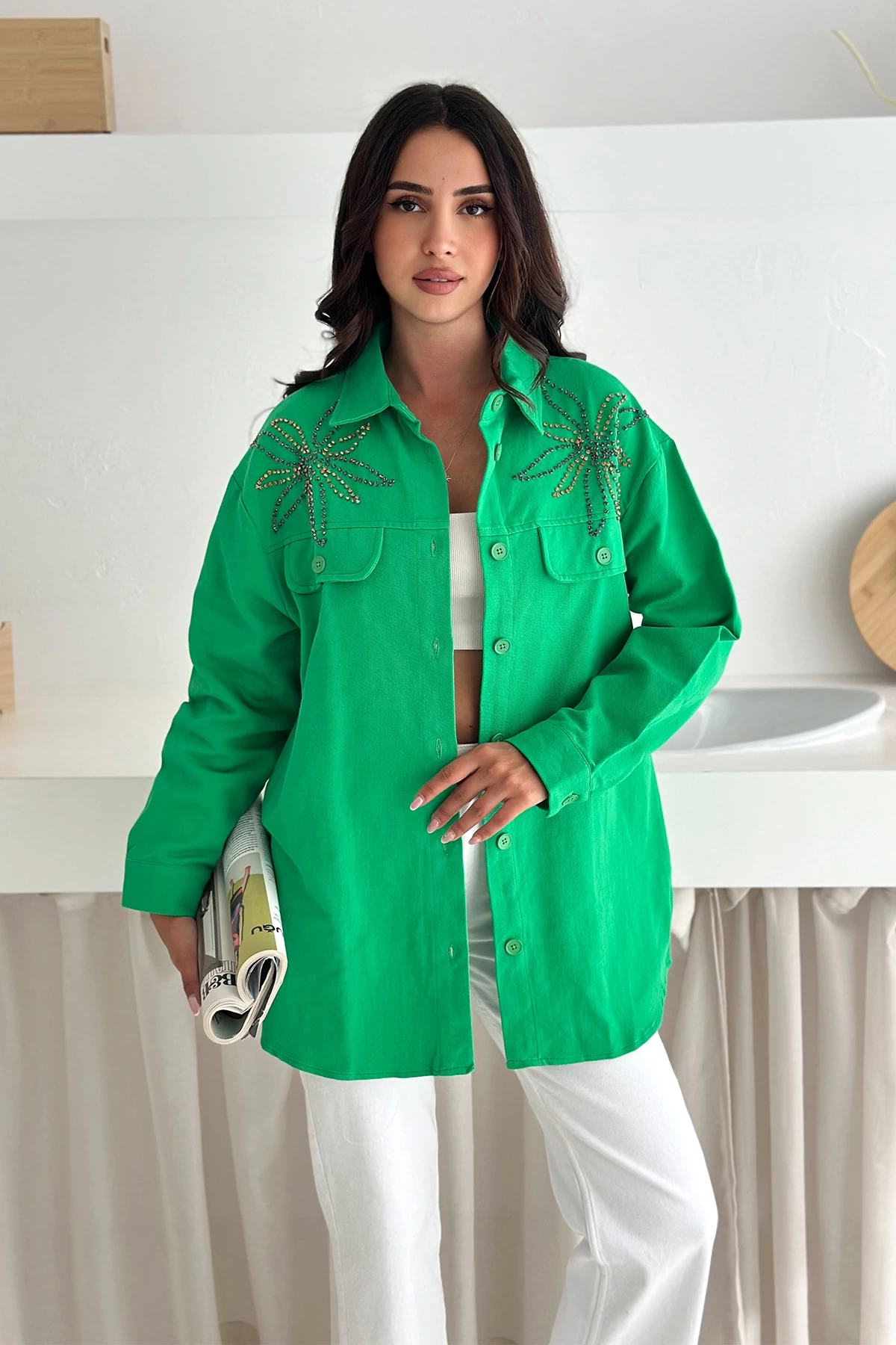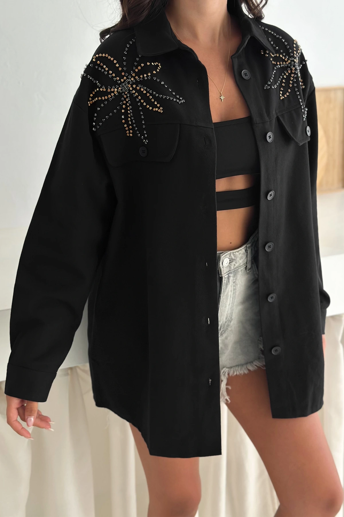 Kral Aslan Desen Baskılı Taşlı Gömlek