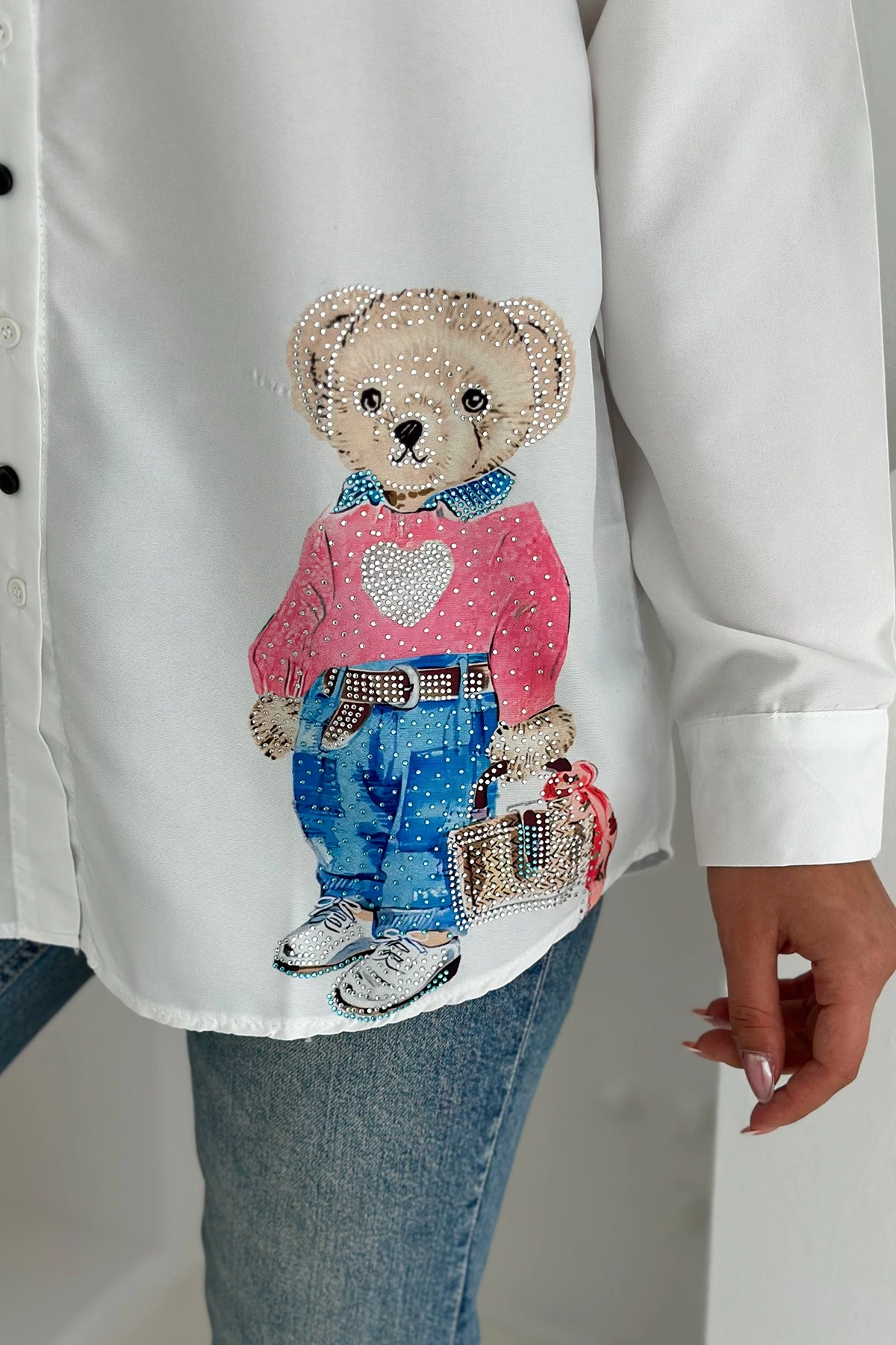 Bebe Yaka Bağlamalı Gömlek Beyaz