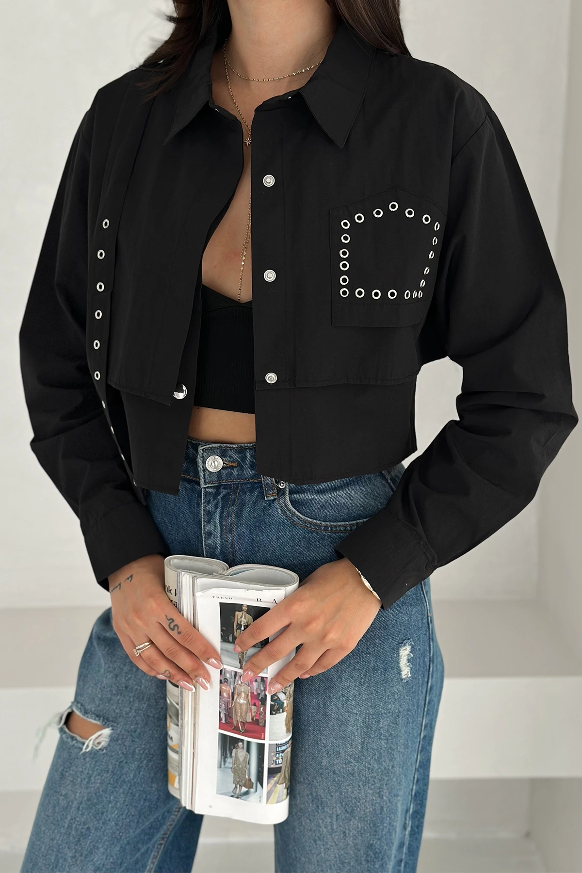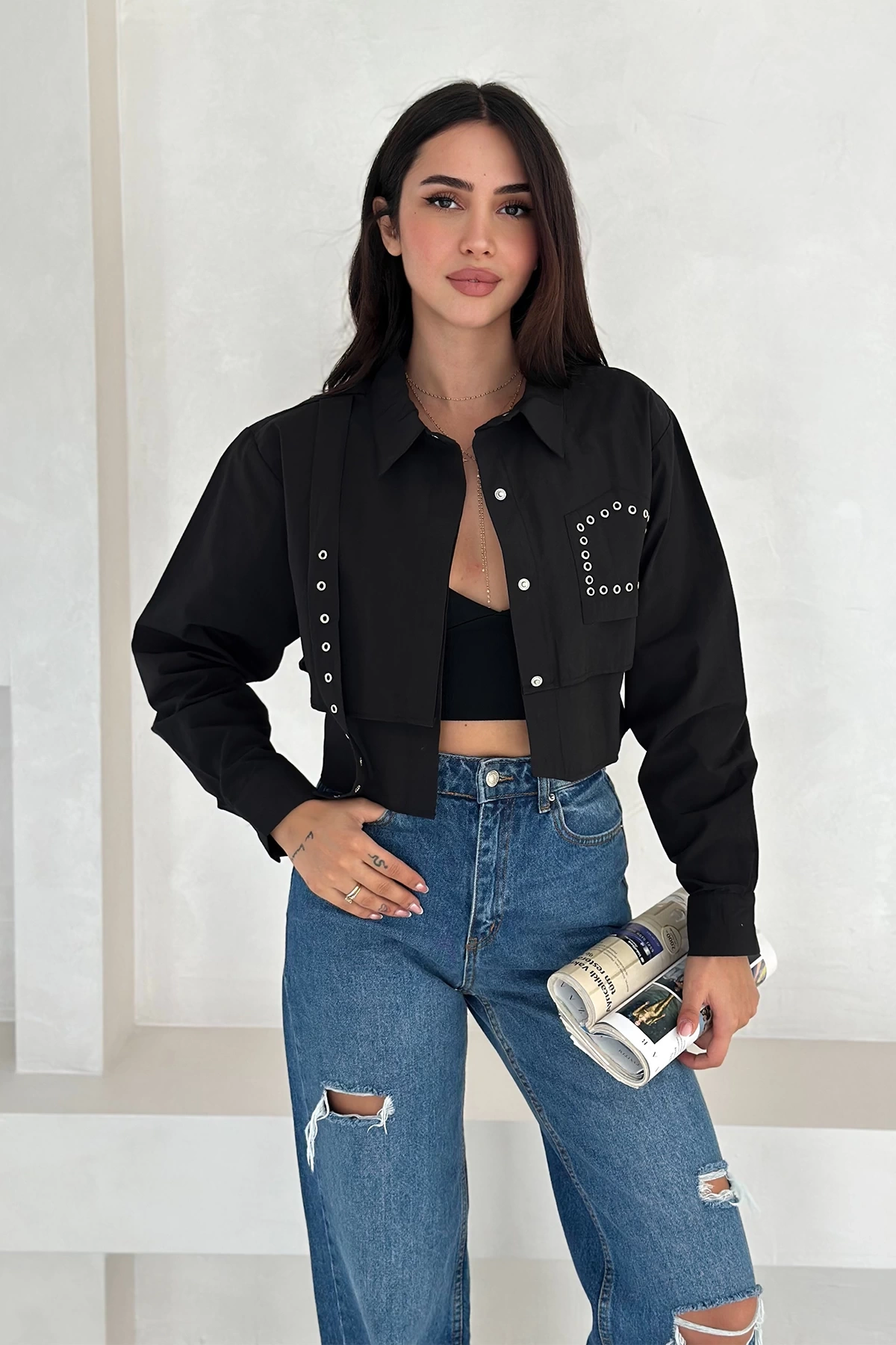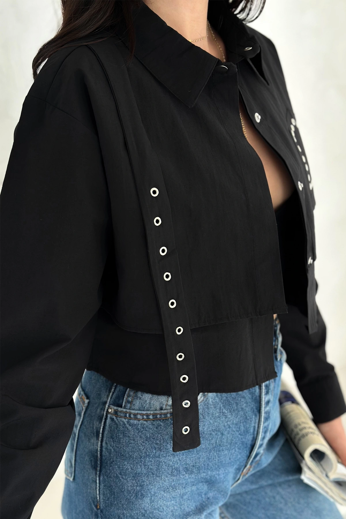 Kuş Gözlü Paraşüt Gömlek Siyah