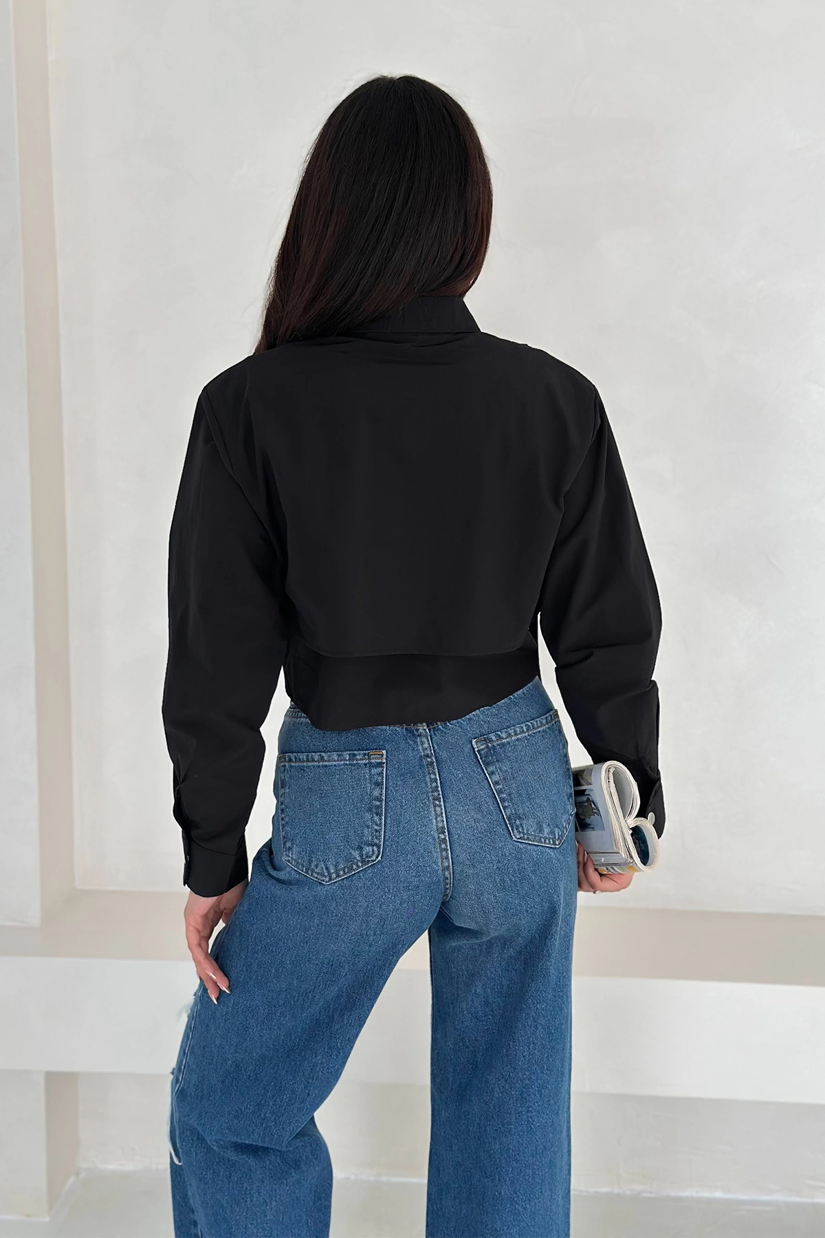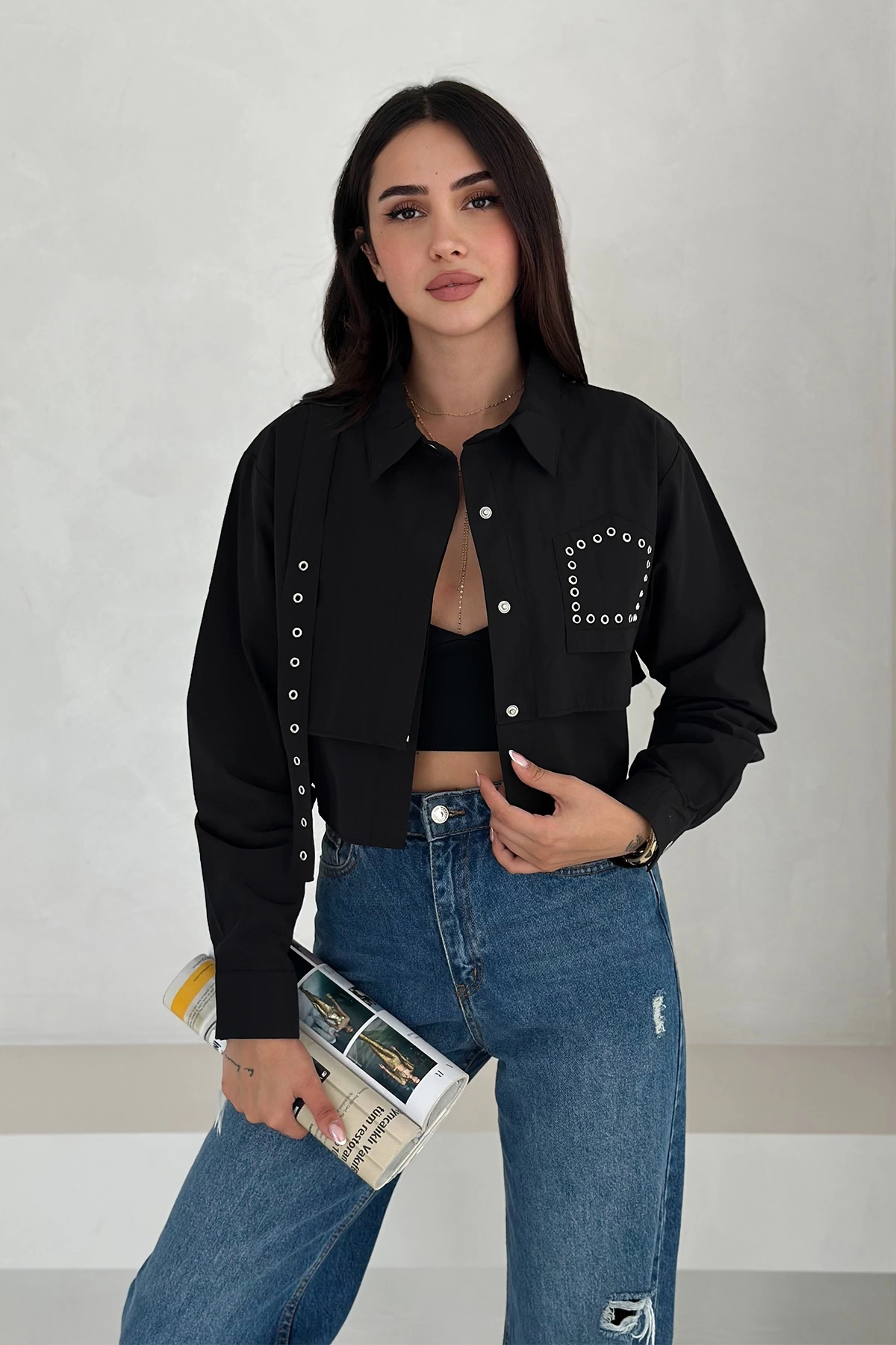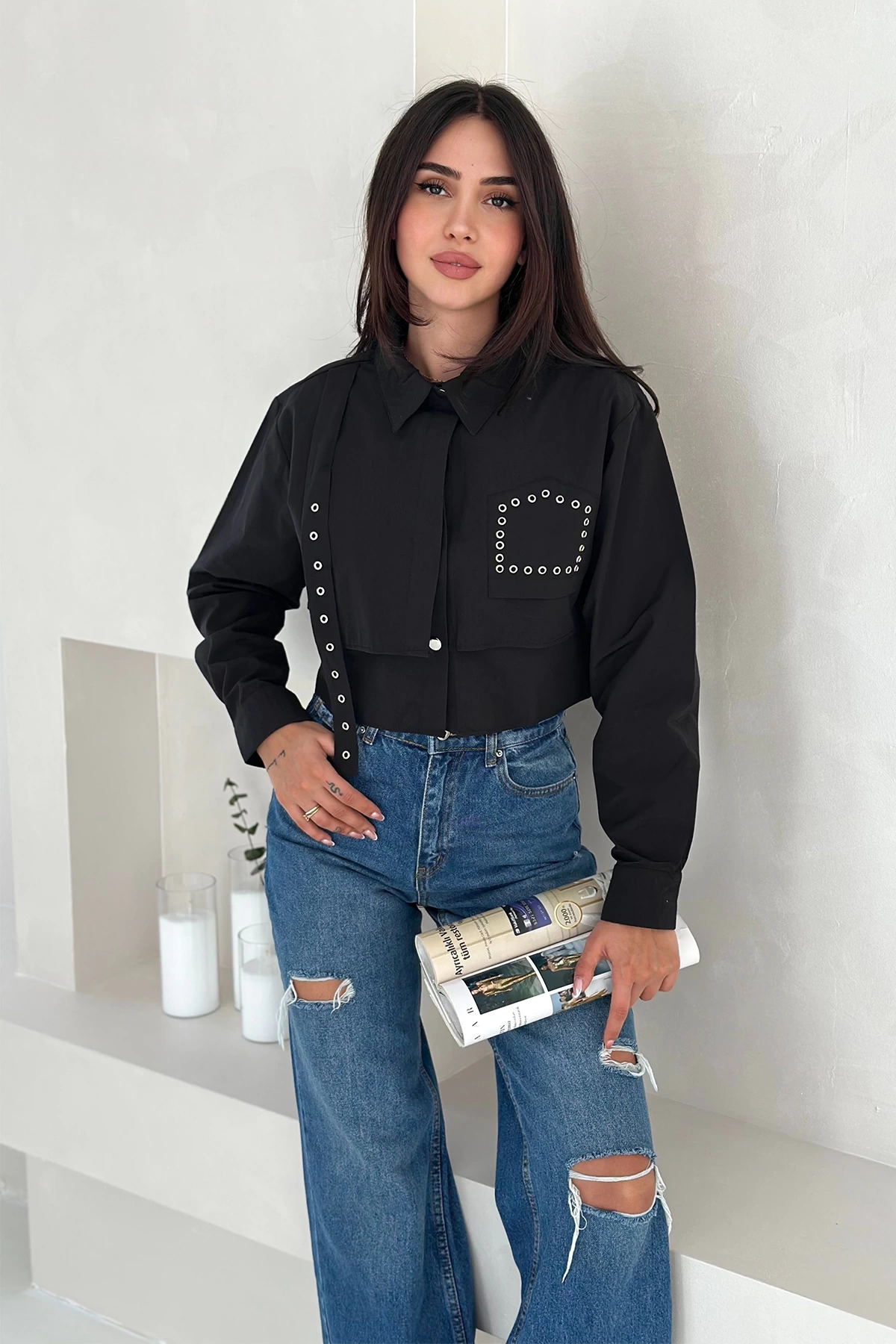 Kuş Gözlü Paraşüt Gömlek Siyah