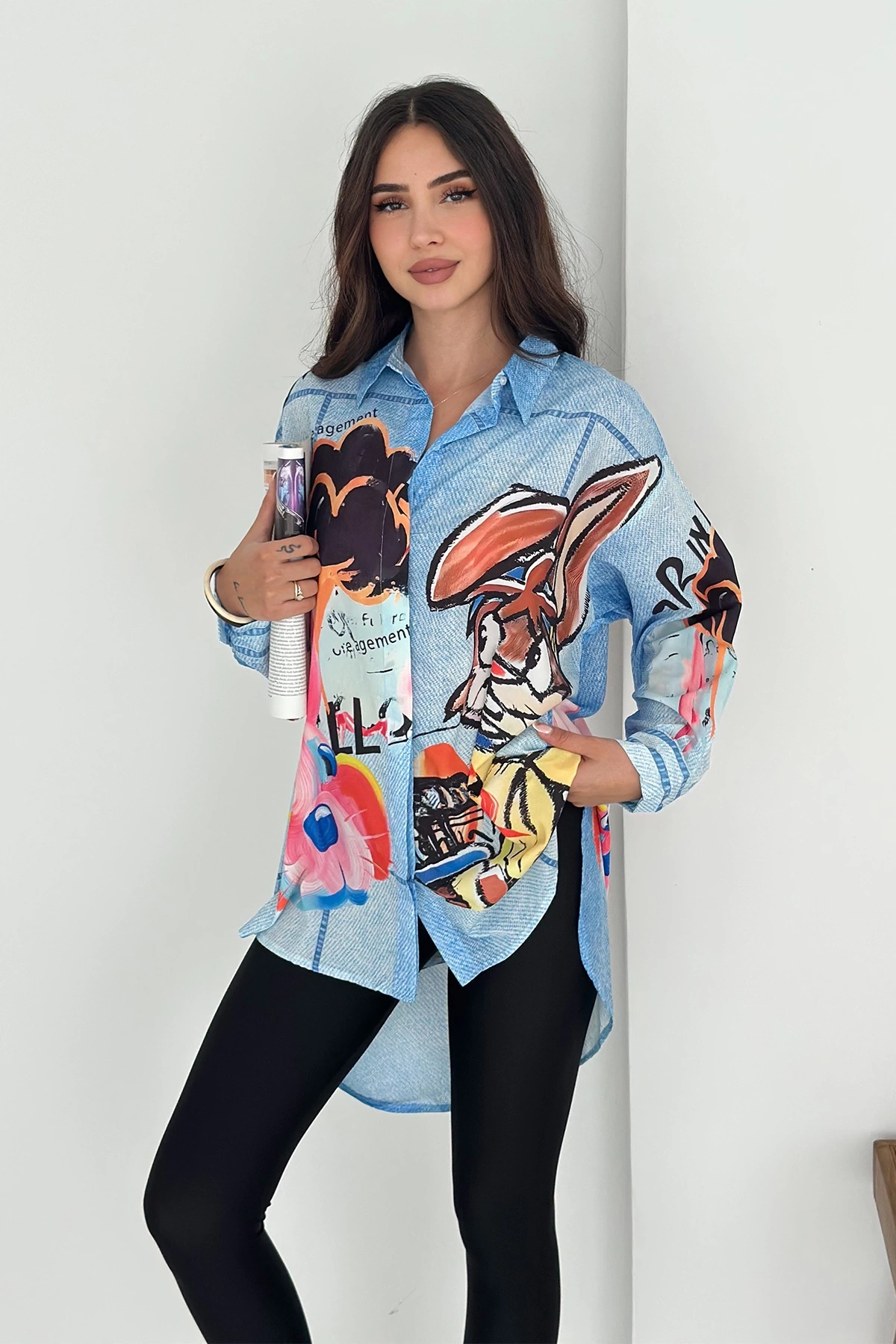 Pamuk Viscon Dijital Baskı Sonsuz Çizgi Gömlek