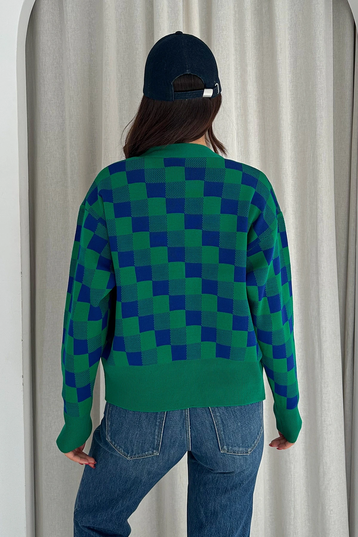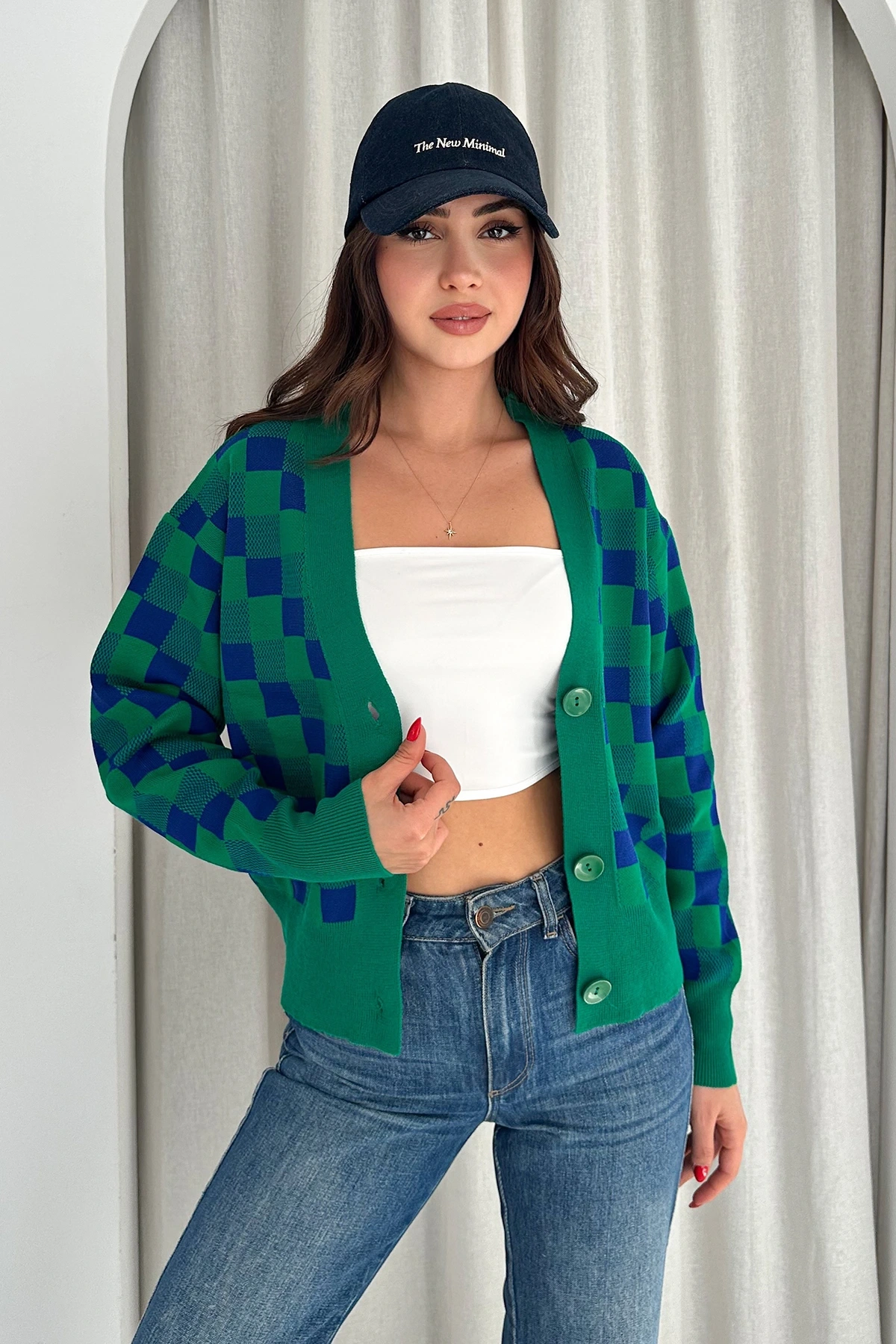 Uzun Kollu Çiçek Desenli Triko Hırka Yeşil