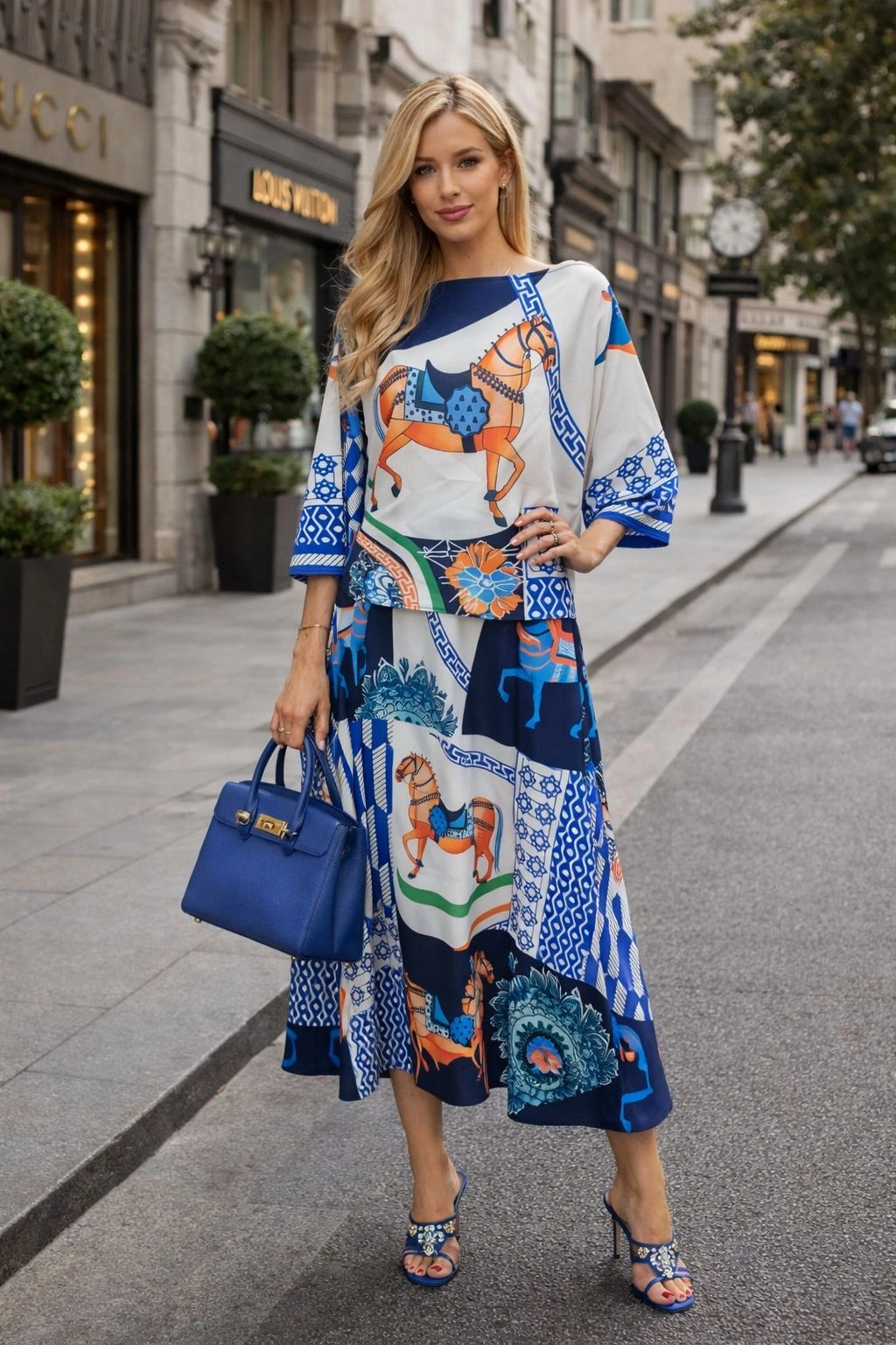 Kayık Yaka Yarasa Kol Bluz Etek Takım