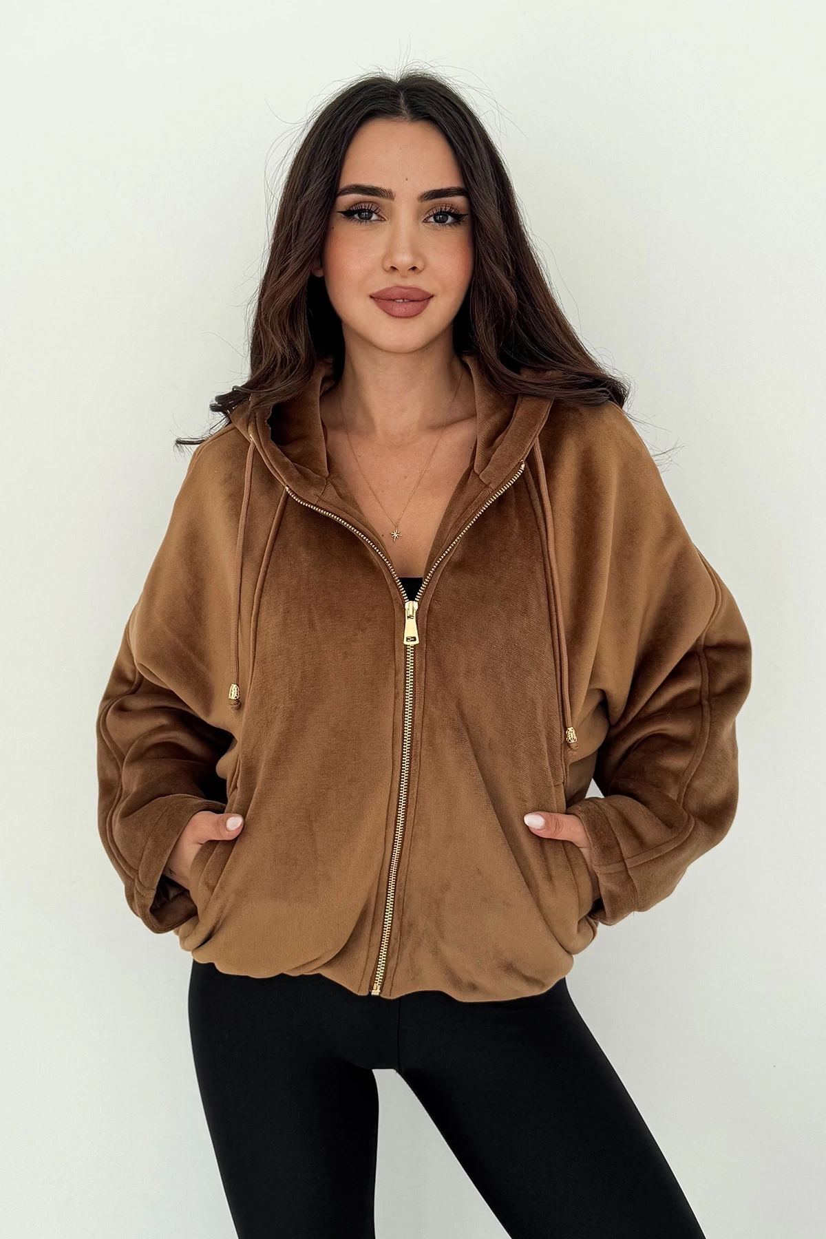 Kış aylarında sıcaklık ve şıklığı bir arada sunan bu mont, yumuşak kürk kumaşı ve modern kapüşonlu tasarımı ile stilinizi tamamlar. Soğuk havalarda maksimum konfor sağlayan iç yapısı sayesinde sizi gün boyu sıcak tutarken, kahverenginin doğal tonları ile zarif bir görünüm kazandırır.
