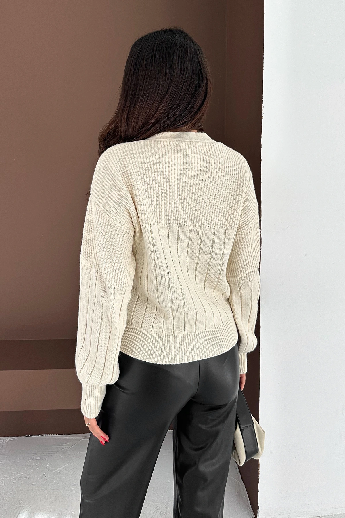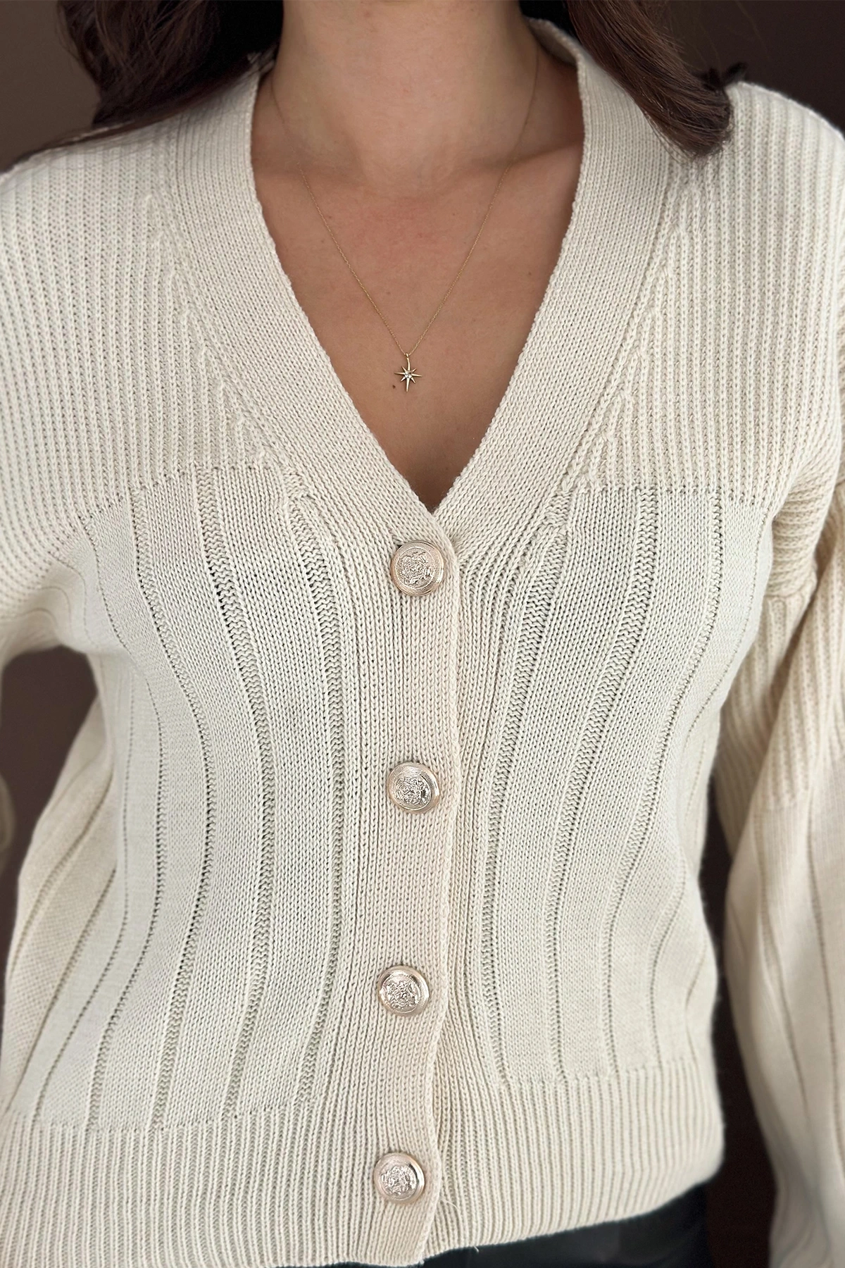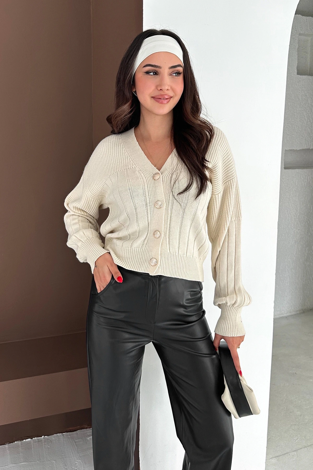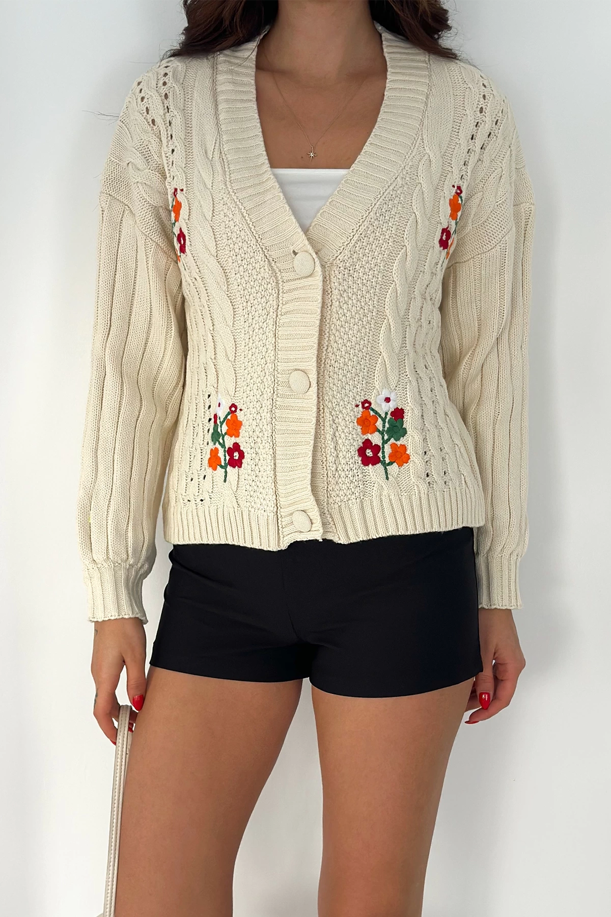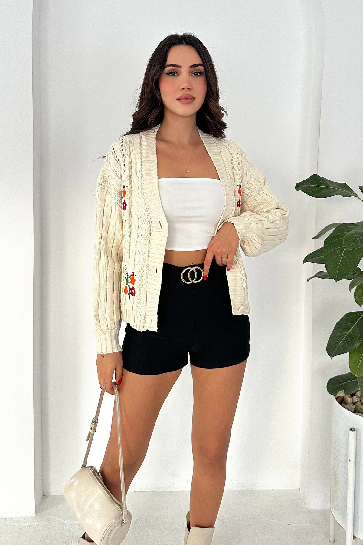 Örgü Detaylı Uzun Triko Hırka Beyaz