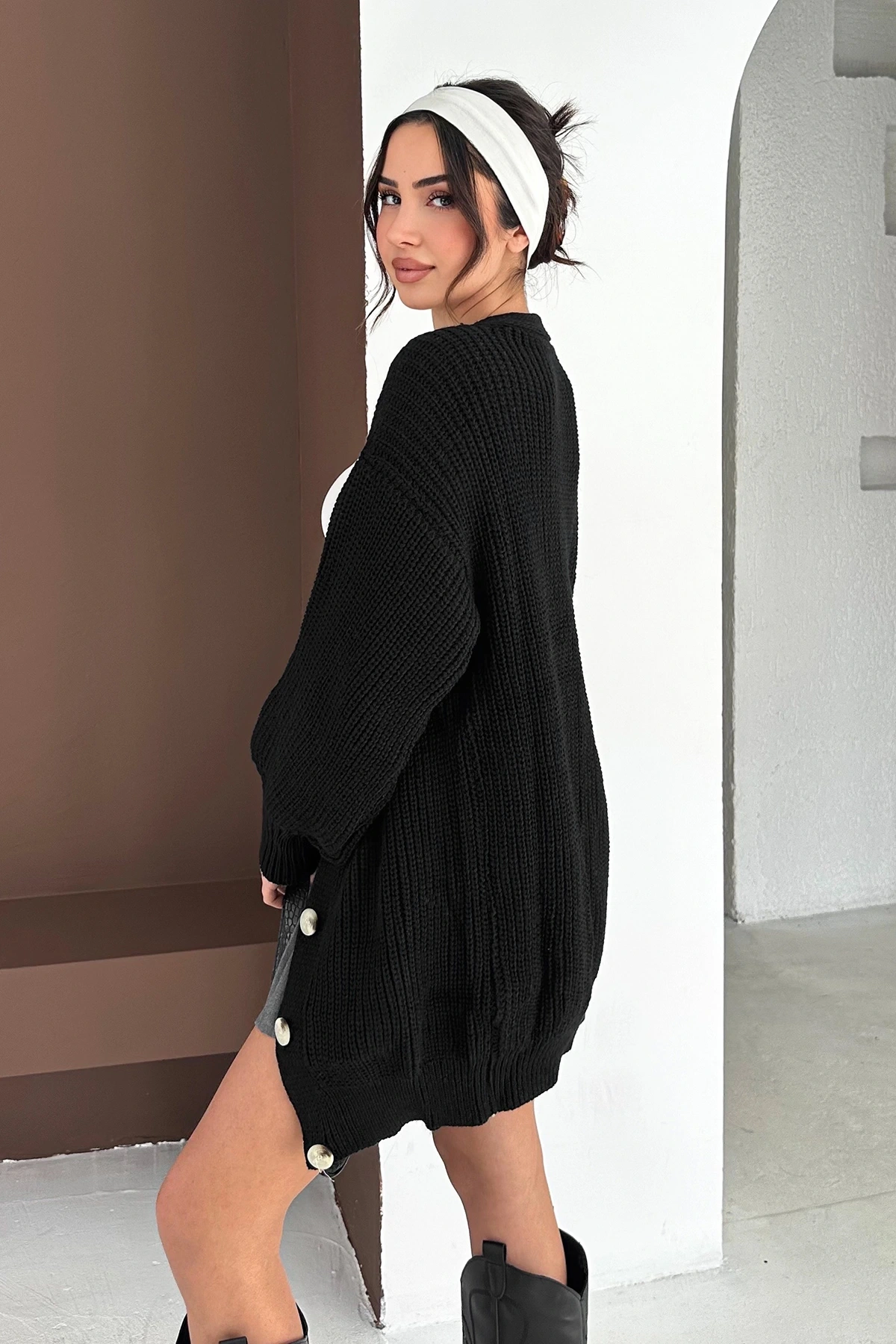 Uzun Triko Hırka Siyah