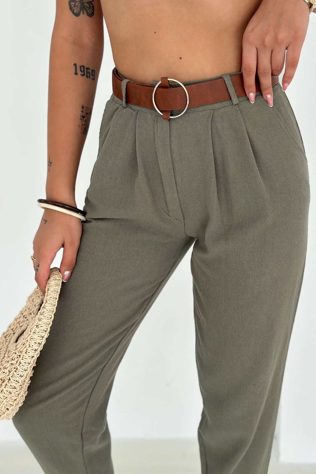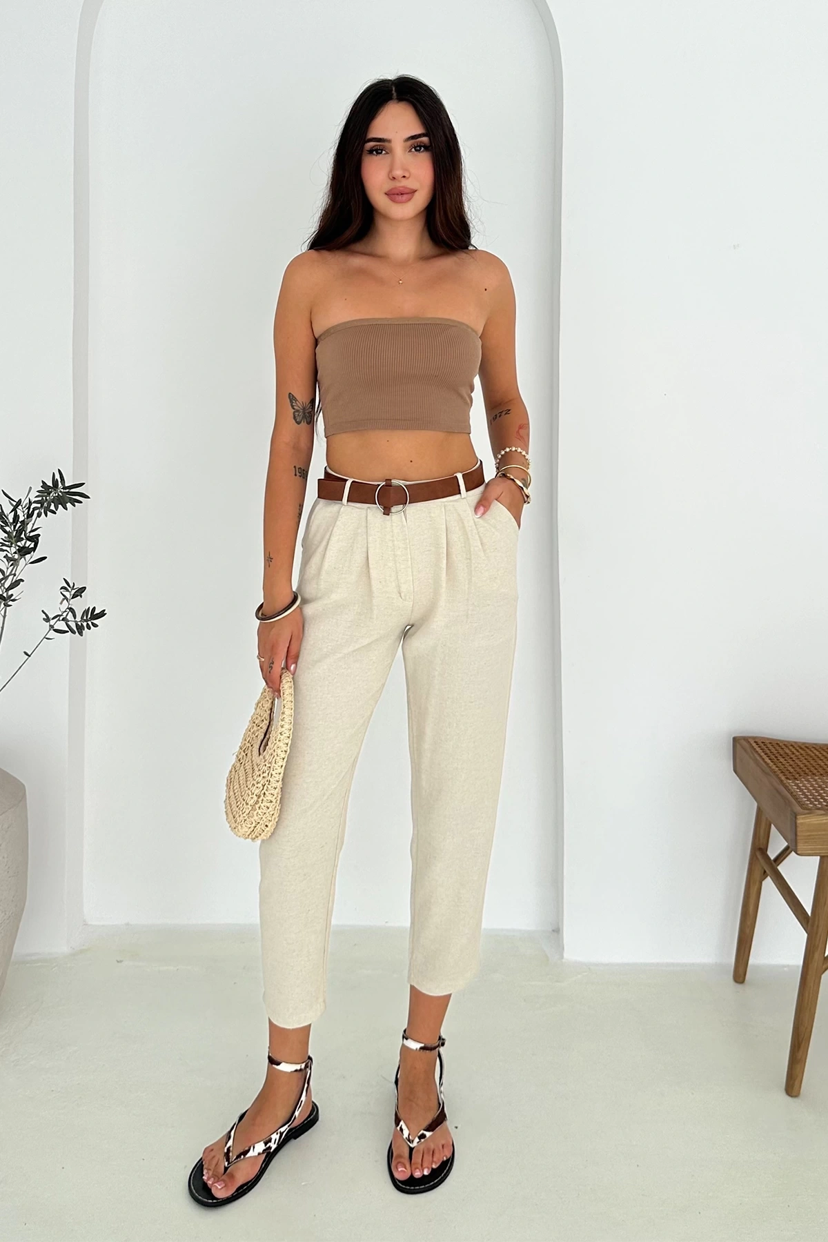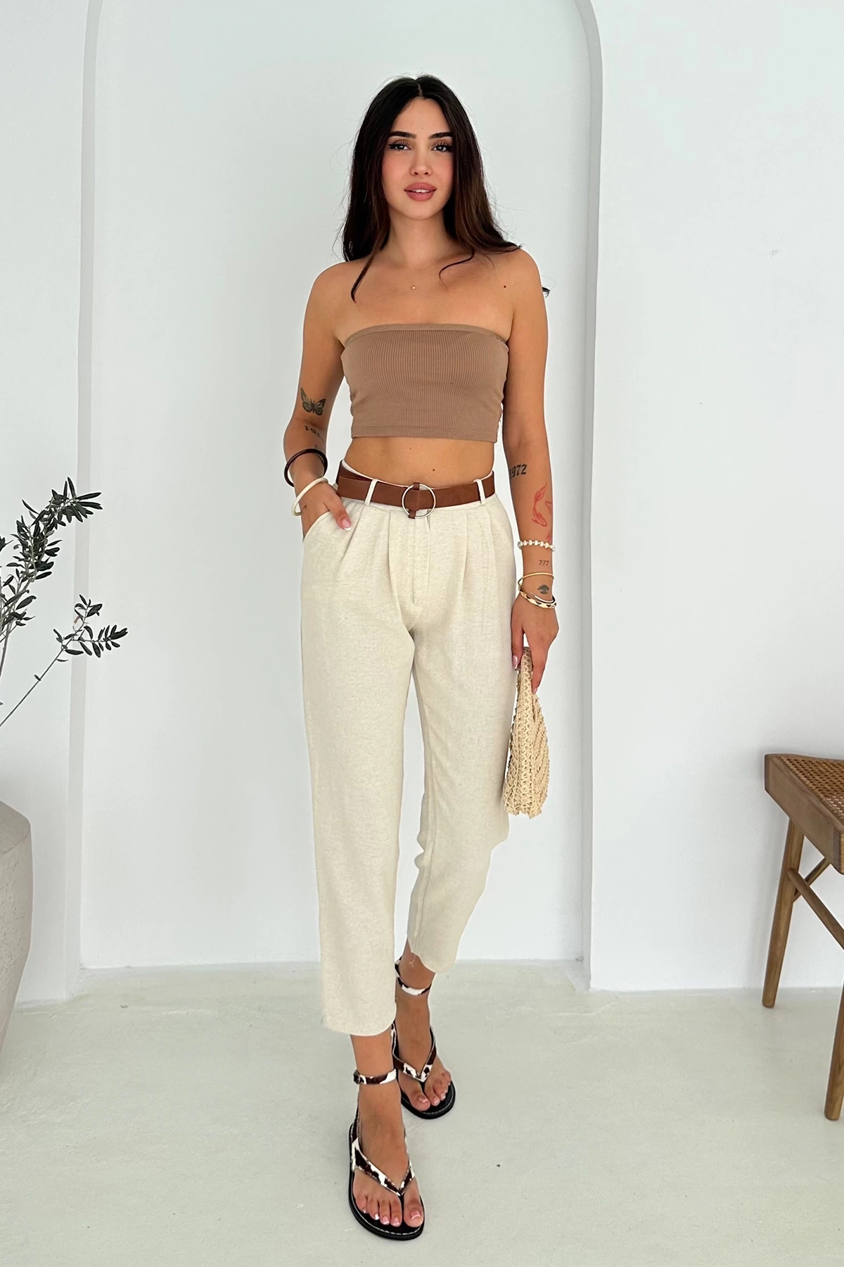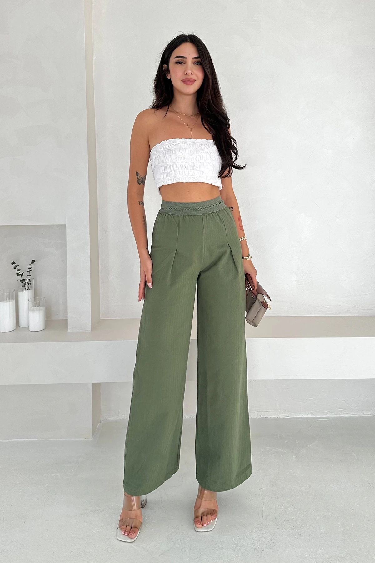 Zamansız şıklığı ve konforu bir arada sunan bu pantolon, günlük stilinize doğal bir zarafet katar. Yüksek bel formu ile vücudu kusursuz şekilde sarar, modern ve feminen bir görünüm oluşturur.