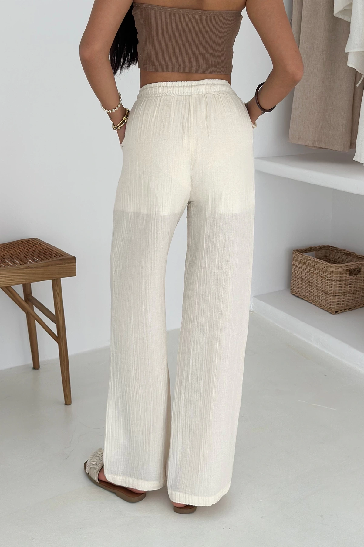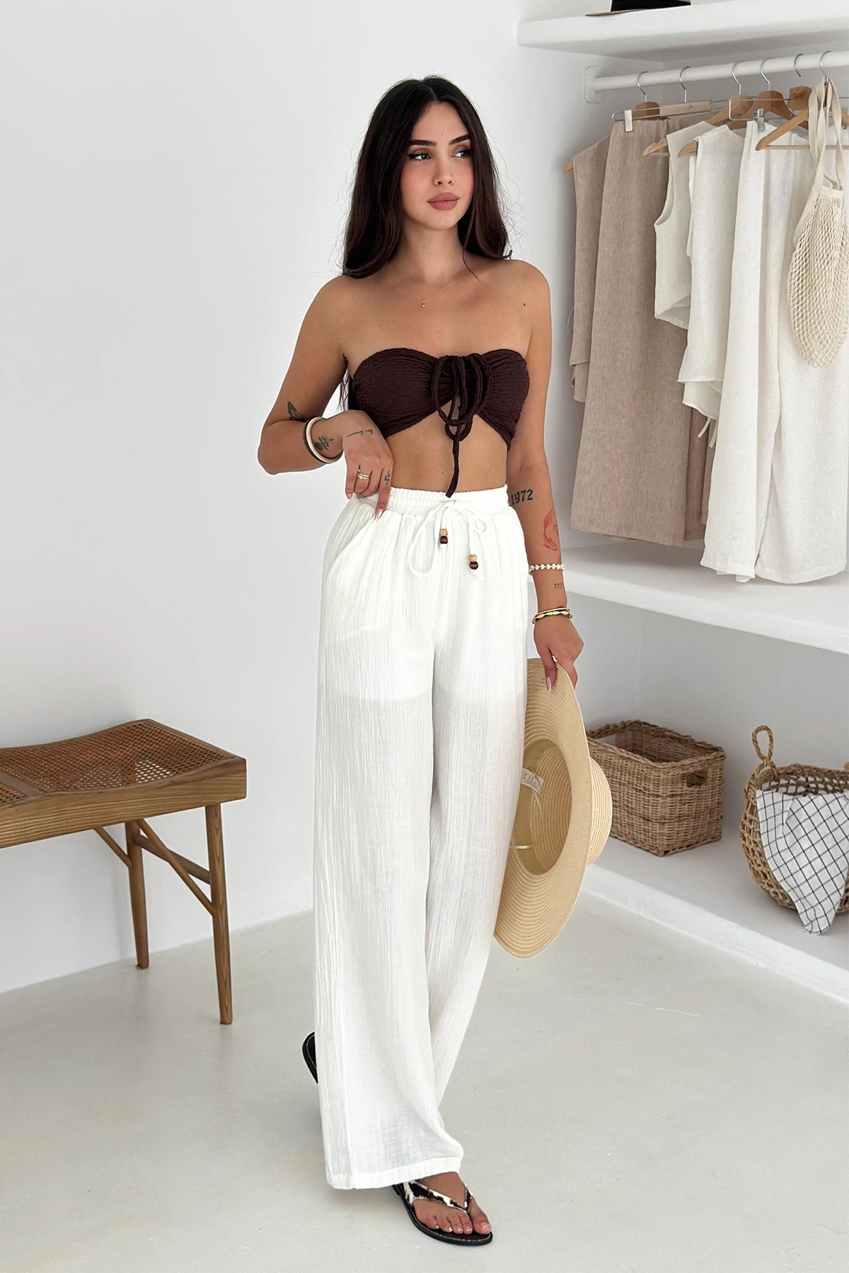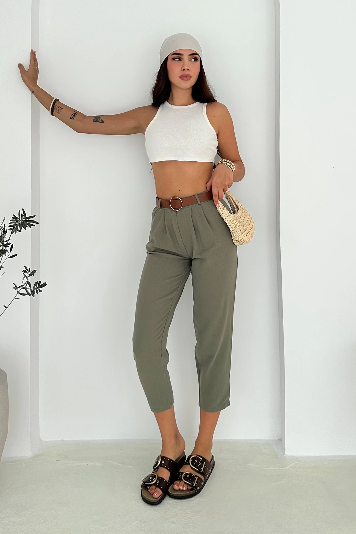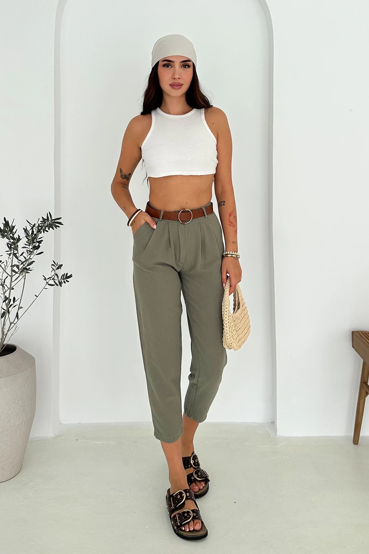 Zamansız şıklığı ve konforu bir arada sunan bu pantolon, günlük stilinize doğal bir zarafet katar. Yüksek bel formu ile vücudu kusursuz şekilde sarar, modern ve feminen bir görünüm oluşturur.